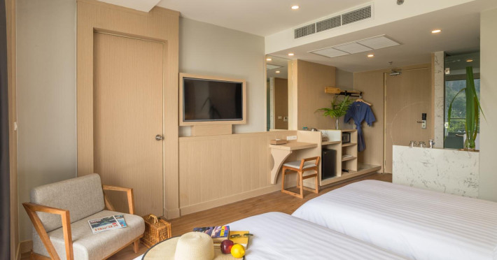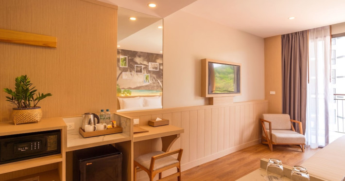 Sea Seeker Krabi Resort in Ao Nang Beach offers 233 air-conditioned rooms with refrigerators, flat-screen TVs, private balconies, and bathrooms featuring rainfall showerheads and complimentary toiletries. Located a short distance from Ao Nang Beach, the resort is 3.4 km from Ao Nang Krabi Boxing Stadium and 24 km from Krabi International Airport. Amenities include an outdoor swimming pool, a 24-hour fitness center, a garden, a restaurant (The Breeze Restaurant), a bar/lounge, a poolside bar, room service, free WiFi, a 24-hour front desk, concierge services, luggage storage, dry cleaning/laundry services, and a complimentary beach shuttle. A buffet breakfast is available daily for a fee. Additional amenities may include a kids' club, a banquet hall, and airport/bus station shuttle services (surcharge). Nearby attractions include Ao Nang Mosque, McDonald's Aonang, Shell Cemetery, Ko Poda, Tup Island, Ao Phai Plong Beach, Pai Plong Bay, Khao Ao Nam Mao, Ao Nang Landmark Night Market, Nopparat Thara Beach, Wattanapat Hospital, Phra Nang Beach, and West Railay Beach. Onsite massages, body treatments, and facials are available. The Sea Seeker Krabi Resort is a hotel.