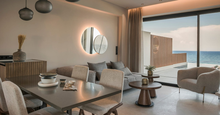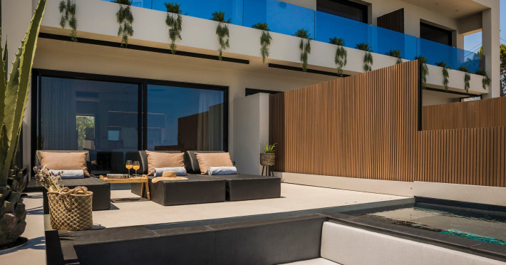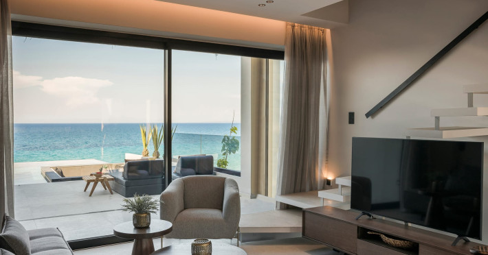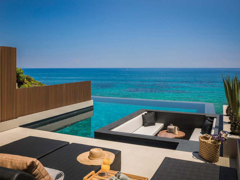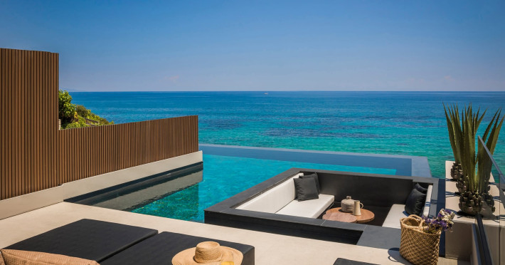 Overlooking the infinite azure waters of the Ionian, Sea Zante Luxury Beachfront Retreat provides the pinnacle of luxurious accommodation in Zakynthos. In perfect alignment with the wealth of natural surroundings, this 3-storey estate is comprised of three distinct levels with a panoramic view to a private beach of fine silky sand and absolute serenity. Immerse in the ultimate holiday experience at the scenic village of Tragaki, enjoying your stay in a modern, 100% sustainable property with infinity pool and exclusive Spa facilities for your eyes only.