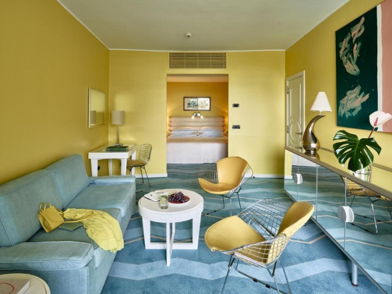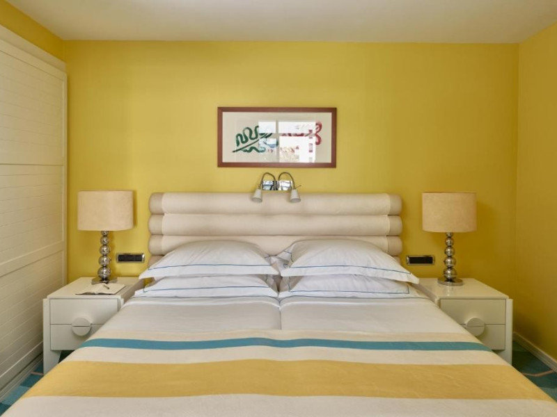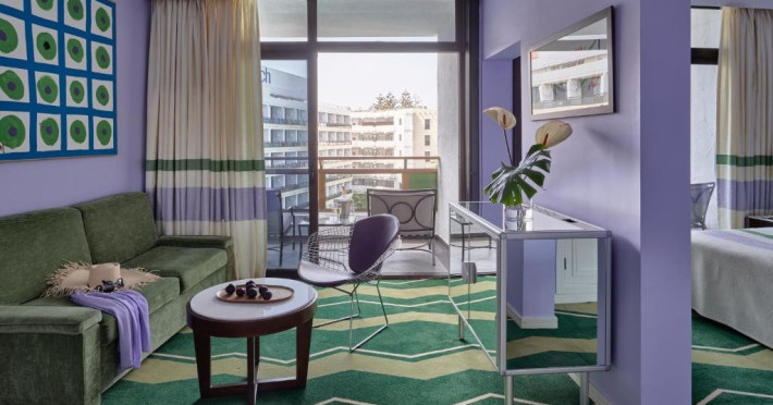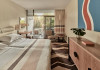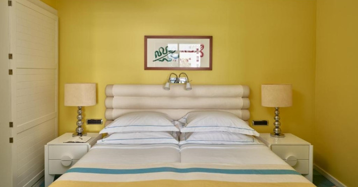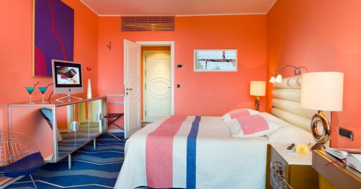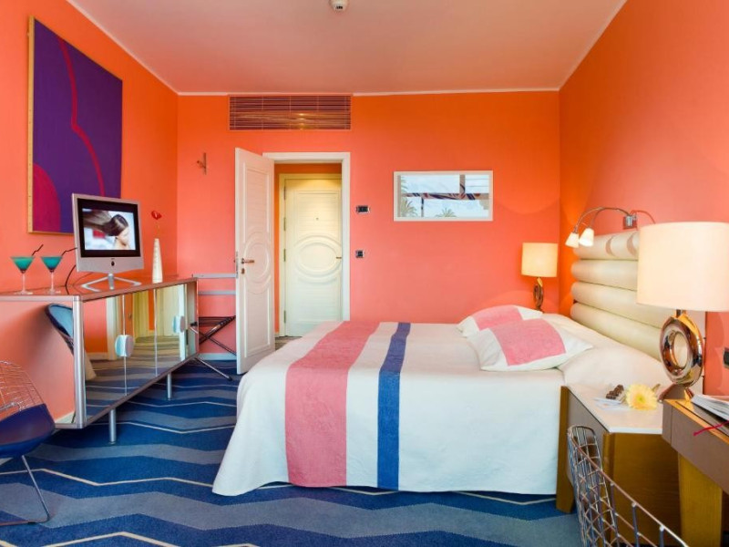 Camera dubla, Twin, Tip A: baie/WC (uscator de par, halat de baie), aer conditionat individual, minibar, telefon, TV/sat, seif, balcon, etajele 2-3, intrarea hotelului.