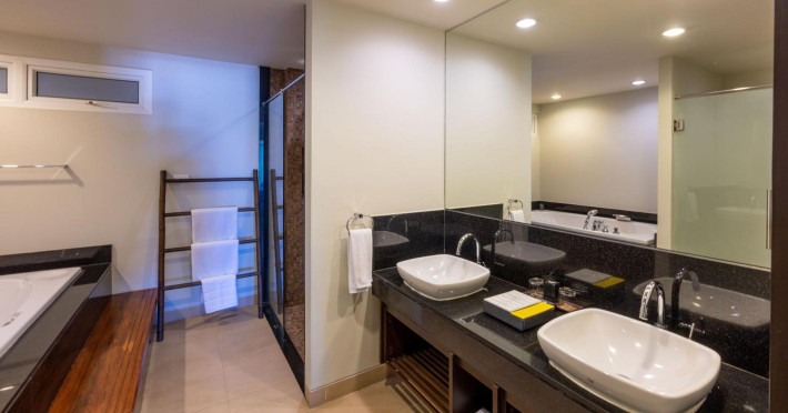 The air-conditioned rooms offer conveniences such as cable/satellite TV, cleaning/housekeeping, a coffee/tea maker, desk, and hairdryer, a private bathroom, a safe box, a shower, a telephone, and Wi-Fi access. Some rooms include a kitchenette, a private pool (extra charge), room service (extra charge), and separate living rooms. Bathrooms provide complimentary toiletries and towels.