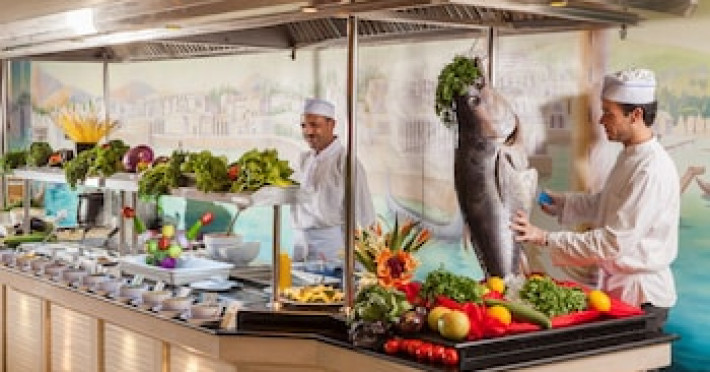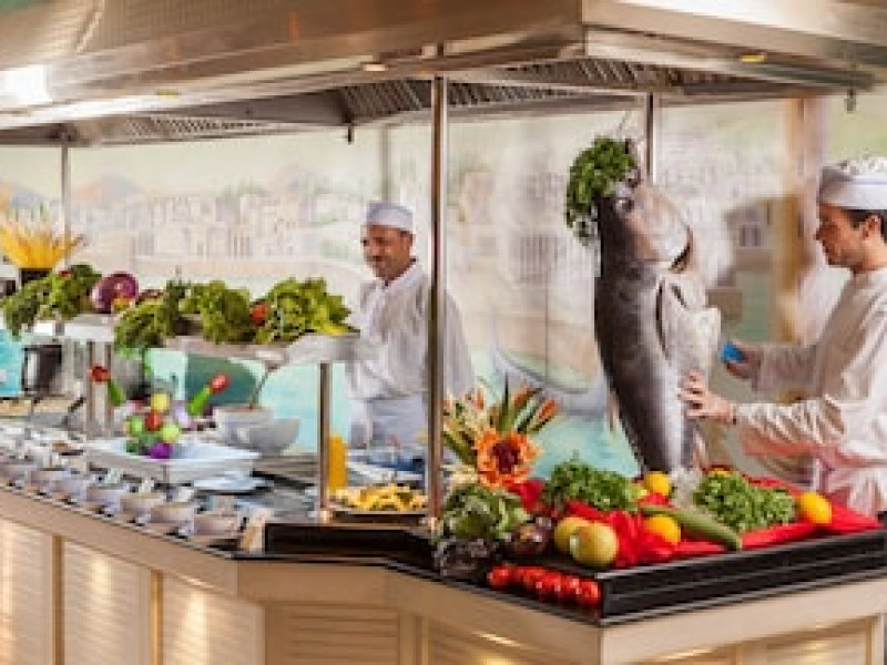 Dining Grab a bite at Grand Restaurant, one of the hotel's 4 restaurants, or stay in and take advantage of the room service (during limited hours). Snacks are also available at the coffee shop/cafe. Relax with a refreshing drink at the beach bar, the poolside bar, or one of 2 bars/lounges. A complimentary buffet breakfast is included.