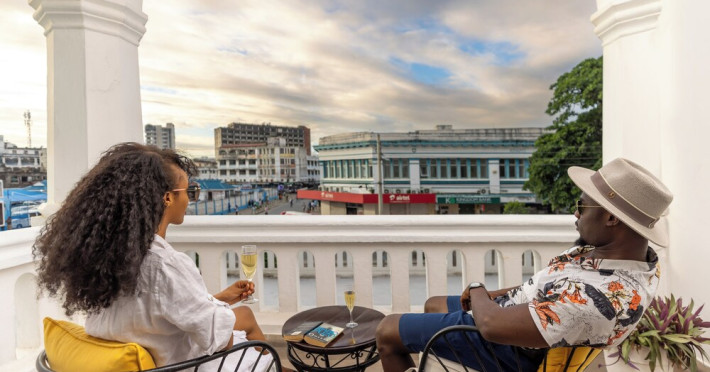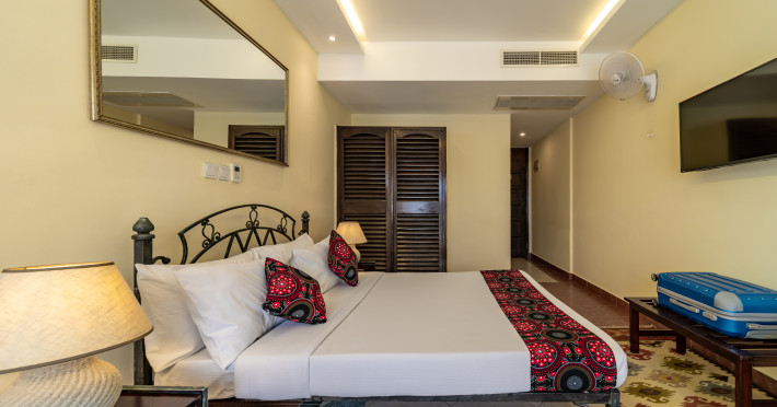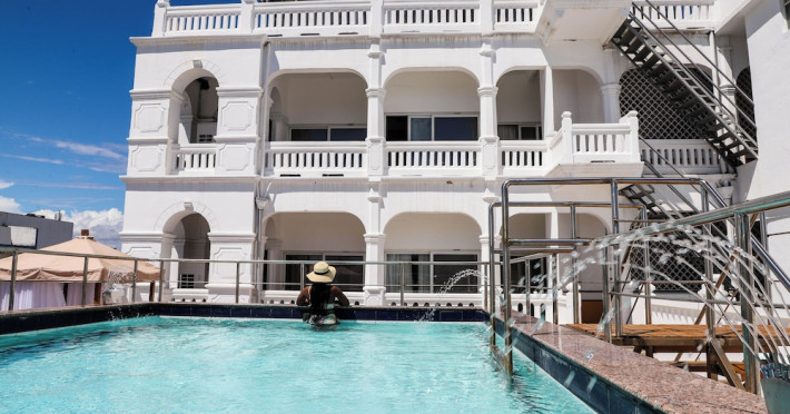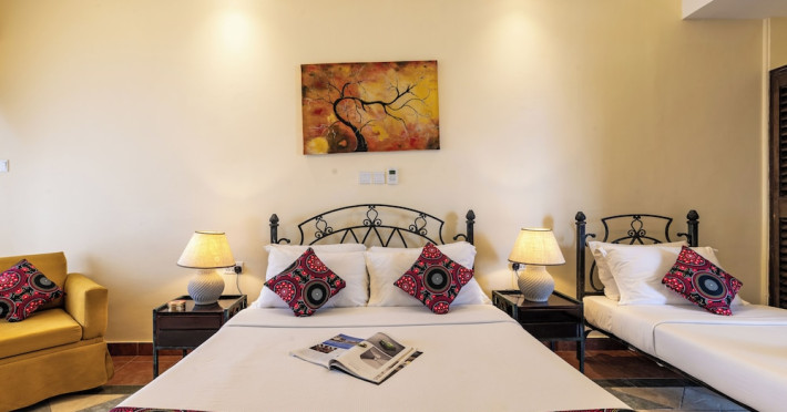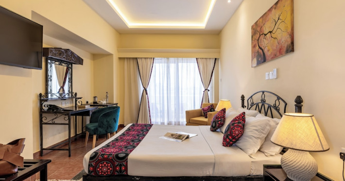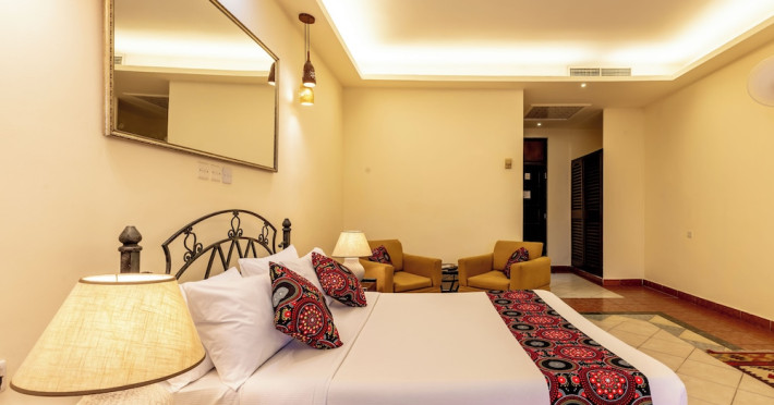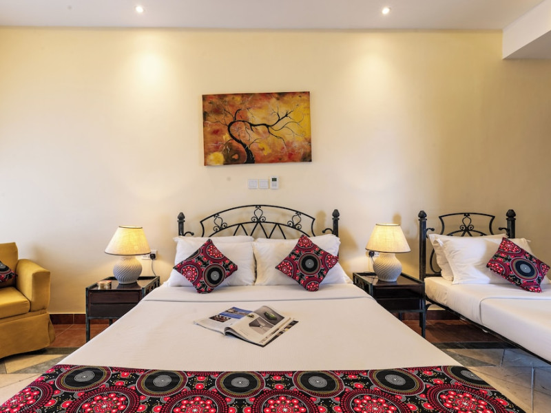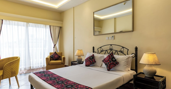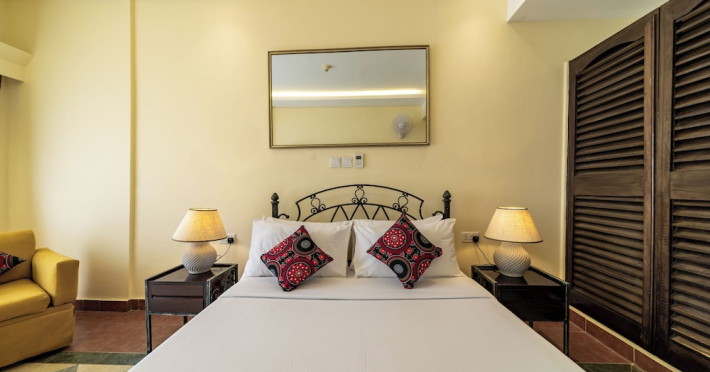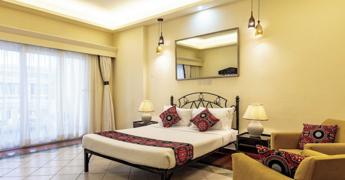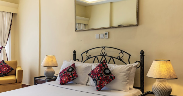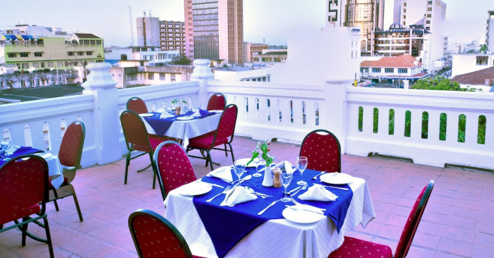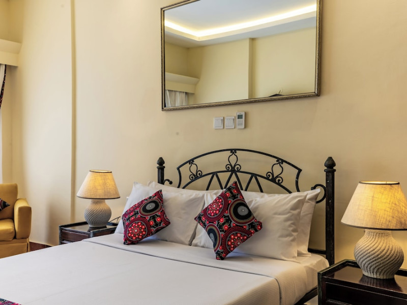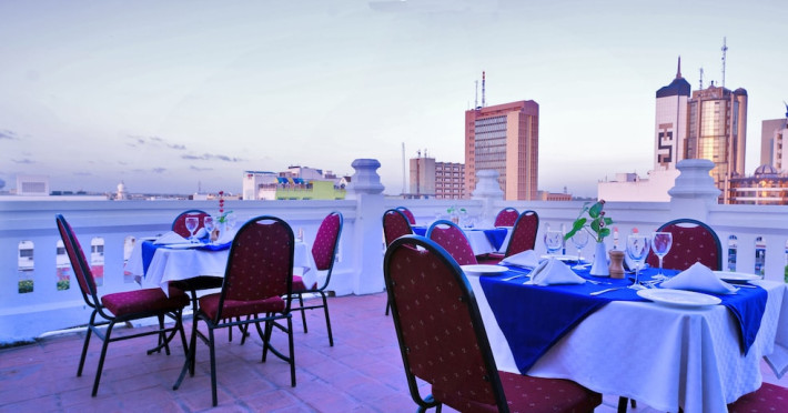 Located in the heart of Mombasa, Sentrim Castle Royal Hotel offers air-conditioned guestrooms with private balconies, complimentary wireless internet access, and cable programming. Each room includes a private bathroom with a shower featuring rainfall showerheads and complimentary toiletries. The hotel features a restaurant, coffee shop/cafe, and a bar/lounge, as well as 24-hour room service. Guests can enjoy an outdoor swimming pool and terrace. Additional amenities include a 24-hour front desk, concierge services, luggage storage, laundry facilities, gift shops/newsstands, wedding services, a banquet hall, a tour desk, and free self-parking. Event facilities consist of a conference center and meeting rooms. Breakfast is available with buffet, continental, and Full English/Irish options. The hotel is within a 5-minute drive of Mombasa Island and Fort Jesus. Moi International Airport is approximately 11 km away. The Sentrim Castle Royal is a Tourist hotel. Located in Mombasa area. The nightlife/restaurants are located in the hotel.