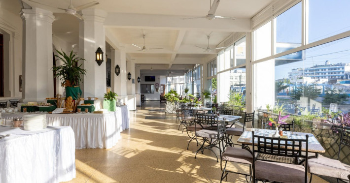 Strategically located in the heart of Mombasa Central Business District (CBD) on the edge of the busy Moi Avenue and a few feet from the iconic Mombasa Tusks landmark, the 100+ year-old 4-story hotel is ten minutes away from the colorful and historic Old Town and the well-preserved Fort Jesus. The hotel has a total of 68 rooms, combining standard rooms and deluxe rooms. The main guest area consists of a reception, lounge, restaurant, bar, and coffee shop.Facilities and services include a 24-hour food and beverage outlet, a business center, a concierge, free ice available, room service (limited hours), an airport shuttle available, a banquet hall, car parking, free Wi-Fi, and a bar.Room feature Every room features a balcony, a minibar, a working desk, a TV, a telephone, and a digital safe. There is free Wi-Fi available.Address: Moi Avenue, Mombasa, 254, Kenya