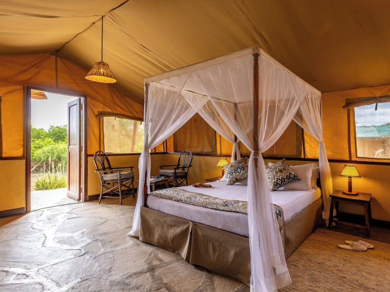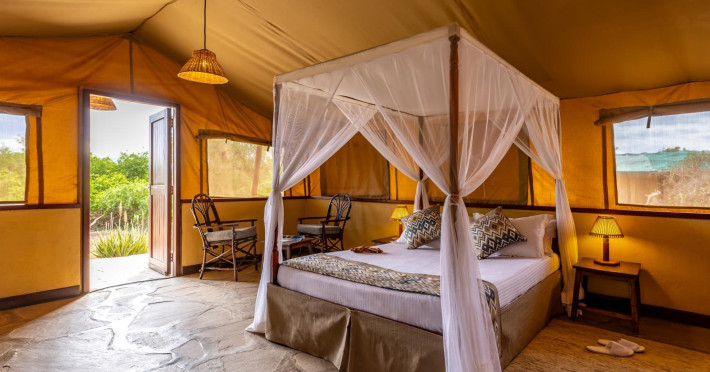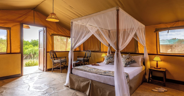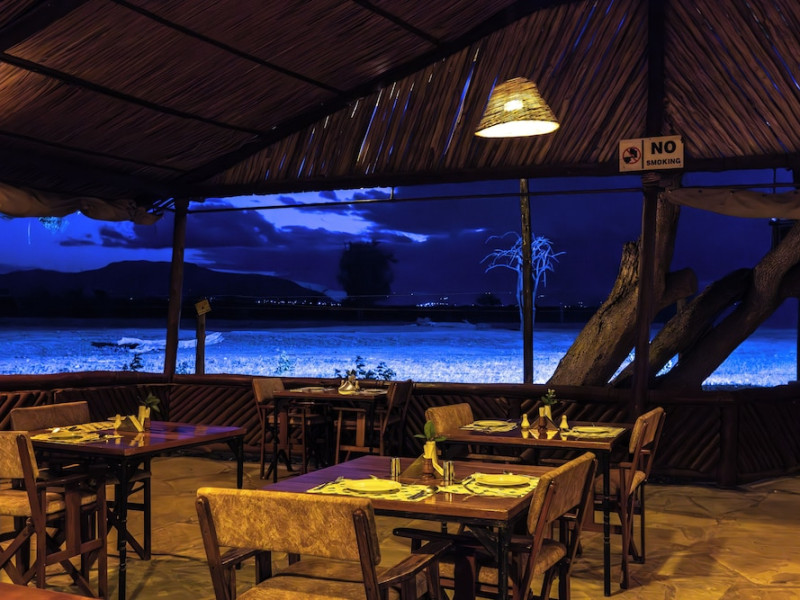 Located in Voi, within Tsavo East National Park, Sentrim Tsavo Lodge offers accommodation with mountain views, a restaurant, bar, garden, and outdoor pool. Guests can enjoy a complimentary continental breakfast daily from 6 AM to 10 AM, with buffet and Full English/Irish options also available. The lodge features 25 guestrooms, each with a private furnished patio and a private bathroom with a shower, complimentary toiletries, and a hairdryer. Conveniences include safes, desks, and daily housekeeping. Concierge services, gift shops/newsstands, and a picnic area are available. Amenities include express check-in/check-out, complimentary newspapers in the lobby, and free self-parking. A roundtrip airport shuttle is available 24 hours for a surcharge, and a car rental service is offered. Nearby attractions include Tsavo East National Park Entrance (0.1 km), Tsavo East National Park (1.3 km), and Moi District Hospital (5.6 km). The Sentrim Tsavo Lodge is a hotel.