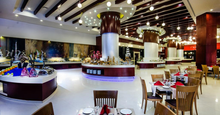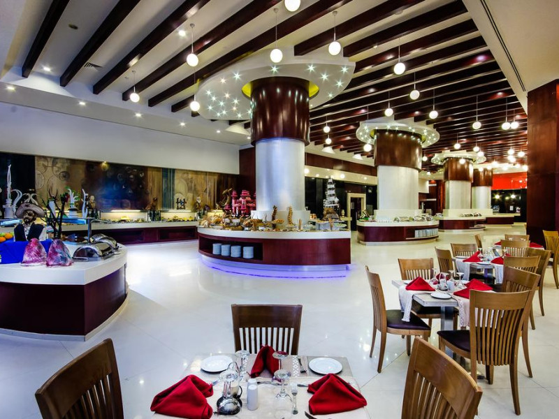 Hotelul are luna parc si un aqua parc cu 26 de tobogane, piscina in aer liber, o sala de gimnastica si un centru spa, un restaurant principal si cinci restaurante a la carte.