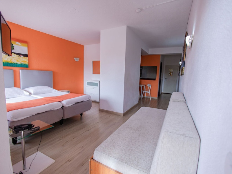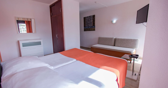 Located in the heart of Adeje, within Playa de las Américas resort in Tenerife, Servatur Caribe offers apartments within walking distance of the beach and close to Siam Park and Magma Art and Congress Centre. The complex features an outdoor pool, tennis court, arcade/game room, and complimentary wireless internet access. Each of the 108 guestrooms includes a kitchenette with a stovetop and microwave, a private furnished balcony, cable programming, a phone, a laptop-compatible safe, and a desk. The bathroom is equipped with a hairdryer. A 24-hour front desk and multilingual staff are available. Car, electric motorbike, and bicycle rentals can be arranged. Free self-parking is available onsite. A €150 deposit is required upon arrival and refunded after inspection, provided no damages have occurred. Multi-bookings of more than three rooms and stag/hen groups are not permitted. Apartment renovations will take place in phases from March 31, 2025, to August 31, 2025, with work conducted during business hours on weekdays to minimize disturbance. Select guestrooms and the two floors below the renovation will be unoccupied during this period. Premium One Bedroom Apartments with Pool or Sea Views offer reclining chairs and a complimentary bottle of sparkling wine and snacks upon arrival. The Servatur Caribe is a Tourist hotel. The nightlife/restaurants are located in the hotel.