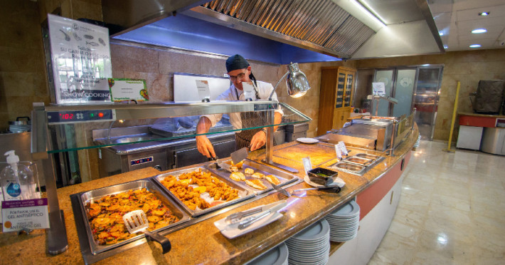 Nereo Hotel Benidorms bufet restaurant ofera SHO W cooking, precum si mancaruri tematice vara. Hotelul are de asemenea un Snack-bar la piscina si un lounge bar cu o terasa in aer liber animata. Divertismentul seara cu muzica live este furnizat vara.
