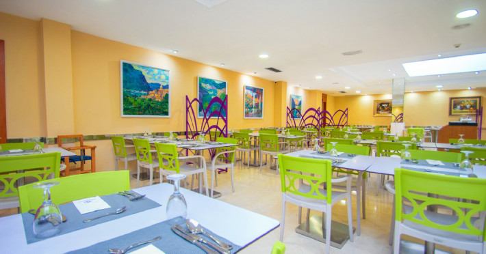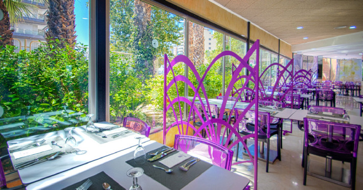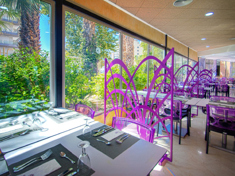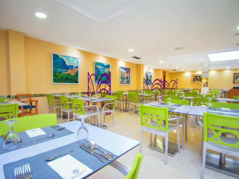 Format din o cladire centrala si 5 blocuri mai mici, Hotel Servigroup Pueblo Benidorm are un restaurant oferind bufet variat si gatit spectaculos. Exista de asemenea un lounge bar, o cafenea si un bar la piscina.