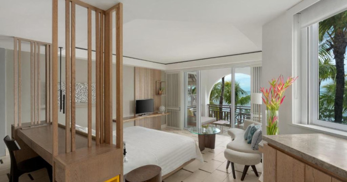 Shangri-La Le Touessrok, Mauritius, a beachfront resort on Trou d’Eau Douce Bay, offers spacious guest rooms with sea views and three private beach villas. The resort features five restaurants with diverse cuisines, including Mauritian, Japanese, Indian, and international options, plus three bars, a coffee shop/cafe, and 24-hour room service. Amenities include a full-service spa with massages and treatments, two outdoor swimming pools, a private beach with complimentary shuttle service, complimentary Wi-Fi, a business center, a fitness center, tennis and padel courts, access to two championship golf courses, and various watersports (stand-up paddleboarding, wakeboarding, hobie cat sailing, kayaking, snorkeling, and windsurfing). A private island, Ilot Mangenie, offers an exclusive dining experience for guests. Additional services include concierge services, babysitting (surcharge), and limo/town car service. A daily complimentary reception and buffet breakfast (fee applies) are available. The Shangri-La Le Touessrok is a Beach Resort, Boutique, Child Friendly, Diving Resort, Family Style, Golf Resort, Honeymoon, Leisure, Modern, Resort, Spa Resort, Sports Resort, Tourist, Villa Resort hotel. Located in Trou D'eau Douce area. The nightlife/restaurants are Restaurant International Cuisine the hotel.