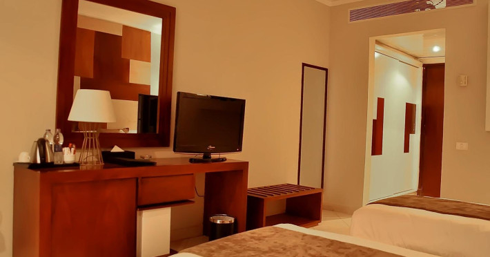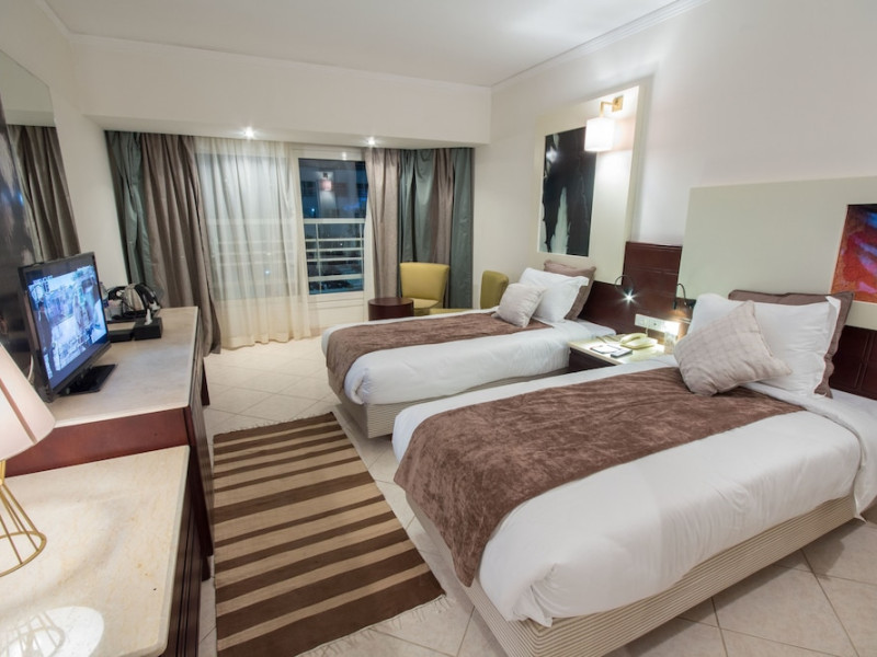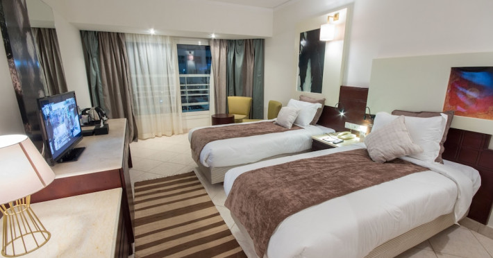 Located in Sharm El Sheikh, Sharming Inn Hotel offers a comfortable stay with convenient access to local attractions. The hotel features air-conditioned rooms with a flat-screen satellite TV, minibar, and a private balcony or terrace. Bathrooms include a shower and hairdryer. Guests can enjoy multiple dining options, including buffet and à la carte restaurants serving international and local cuisine. The hotel boasts 2 outdoor swimming pools, a fitness center, and a supervised kids' club. Recreational amenities include an outdoor tennis court and water sports facilities. Wi-Fi is available throughout the hotel at an added charge. The hotel provides a complimentary beach shuttle, a business center, a 24-hour front desk, and free self-parking. Sharm El-Sheikh International Airport is approximately 14 km away. The Sharming Inn Hotel is a Tourist hotel. The nightlife/restaurants are located in the hotel.