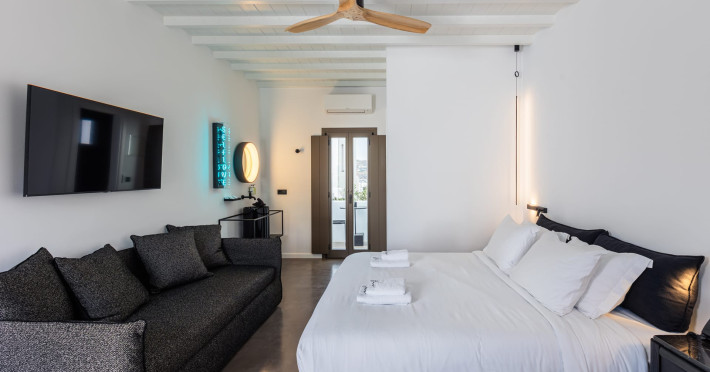 Designed for those who appreciate privacy without sacrificing convenience, these residences are perfect for families, couples, or groups of friends looking for a more personal touch to their getaway. Enjoy the freedom of your own space while still being able to indulge in the luxury amenities of She Mykonos Boutique Hotel— dining, massage treatments, and so much more. She Residences is where luxury meets the vibrant spirit of Mykonos.
