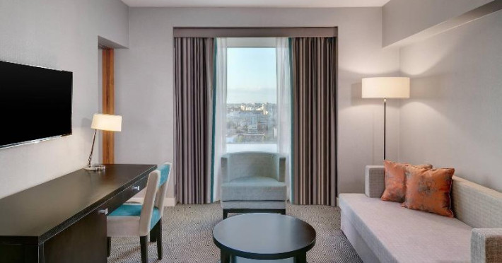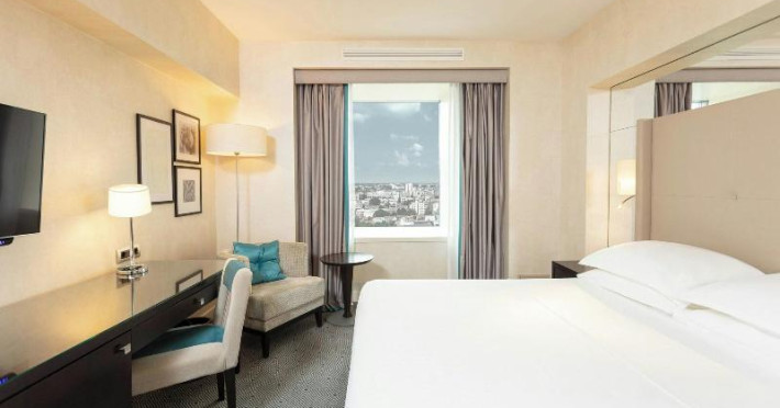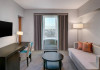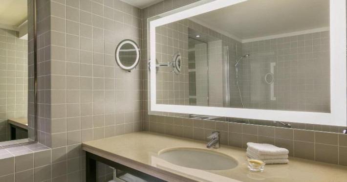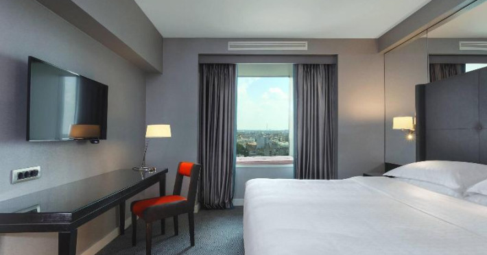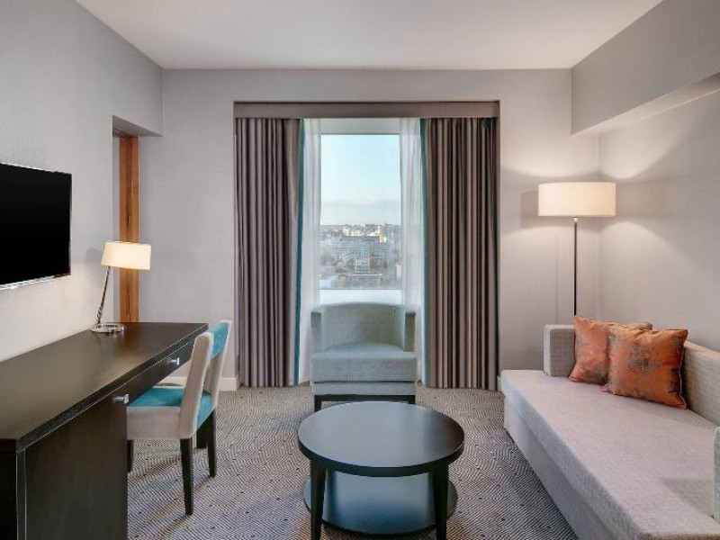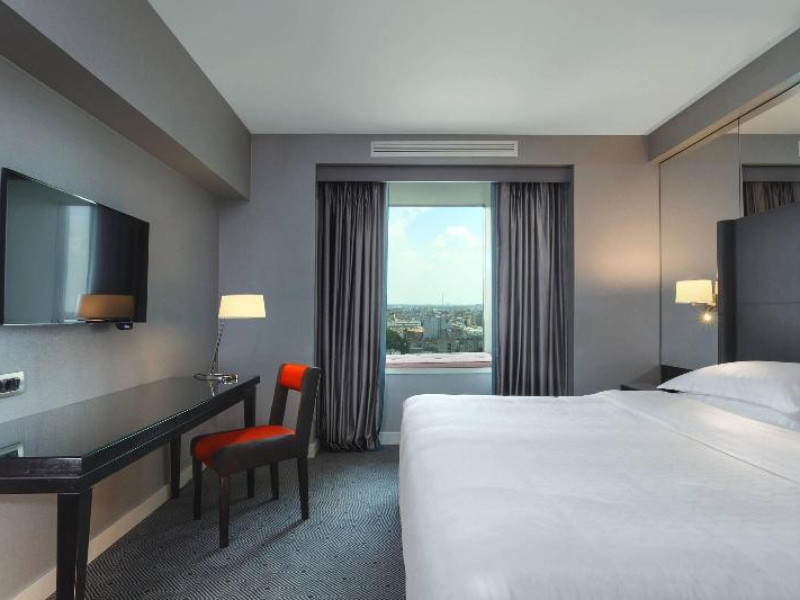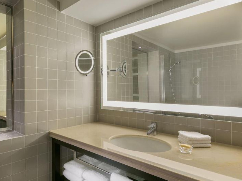 570 rooms, including 17 suites, 185 single rooms and 55 double rooms, are located on 18 storeys and can be reached by 5 lifts. Guests are warmly welcomed by multilingual staff (English, German, French) at the 24-hour reception desk in the lobby. Check-in/check-out service is available round the clock. Amenities include a cloakroom, baggage storage service, safe, currency exchange service and cash machine. Wireless internet access is provided in public areas. The tour desk offers assistance with booking excursions. The hotel has a range of facilities for guests with disabilities. The hotel has wheelchair-accessible facilities. A fireplace creates a cosy atmosphere. There are a number of shops as well. Guests of the hotel can enjoy various recreational facilities, including the garden, during their stay. Additional amenities include a newspaper stand and a TV room. Guests arriving by car can park their vehicles in the garage or in the car park. Further services and facilities include a 24-hour security service, a car hire service, a transfer service, room service, a laundry service, a hairdresser, a coin-operated laundry and a hotel shuttle bus. Active guests who wish to explore the surrounding area by bike will appreciate the bicycle hire service. Bicycle storage is also available. Complimentary newspapers are available. A business centre with fax machine, projector and photocopier is available.