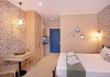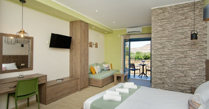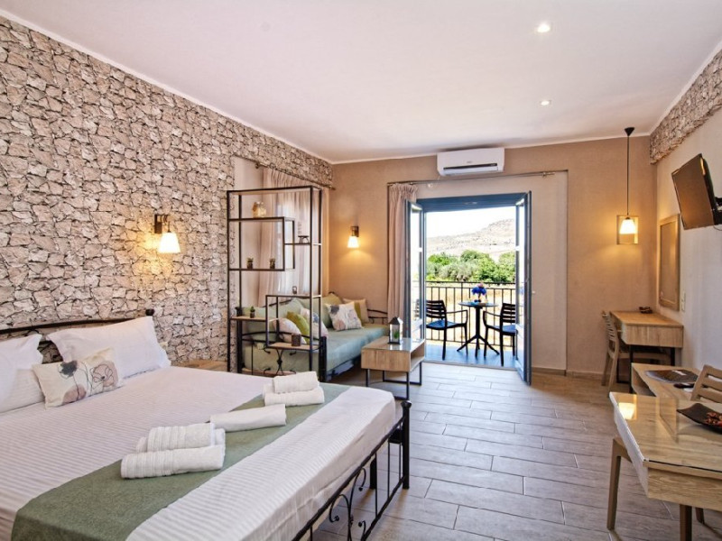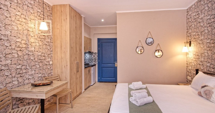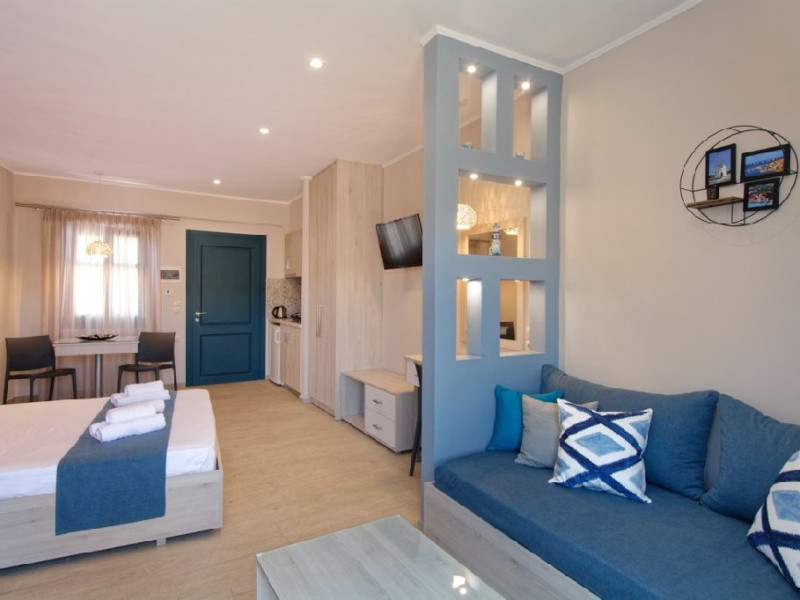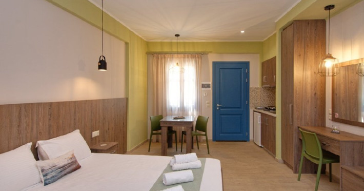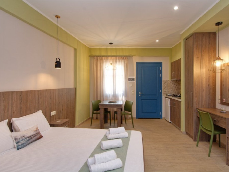 Camerele sunt de tip studio sau apartament, cu chicineta utilata si balcon sau terasa. Toate unitatile sunt dotate cu aer conditionat, baie privata cu dus, televizor, frigider, plita / aragaz sau masa de gatit, aparat de cafea/ceai si ustensile de baza.