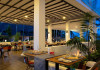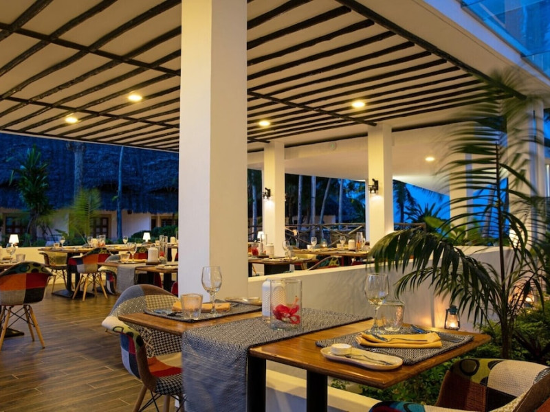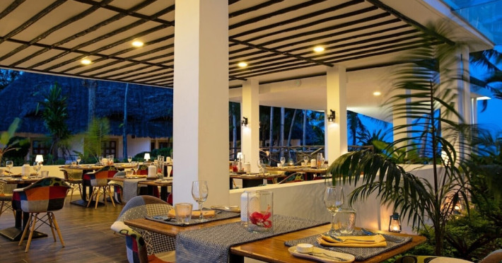 Cabana găzduiește un restaurant și un bar pe plajă.