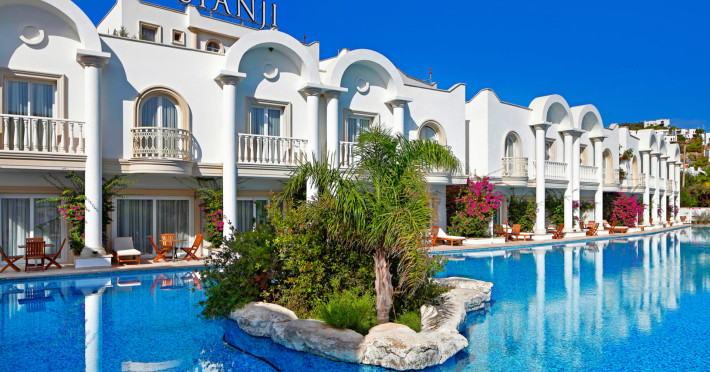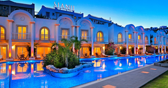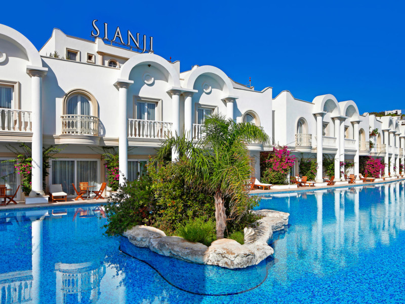 Around 250 m from the hotels own beach is located the hotel Sianji Well-Being Resort. The city centre is around 26 km away. A supermarket is around 600 m away. On the beach are cushions, sun umbrellas and beach towels available. At the beach there iAround 250 m from the hotels own beach is located the hotel Sianji Well-Being Resort. The city centre is around 26 km away. A supermarket is around 600 m away. On the beach are cushions, sun umbrellas and beach towels available. At the beach there is a bar serving refreshing drinks. The hotel has a 24h reception, a lobby bar, Wi-Fi, a lift, a shop, a hairdresser, a first aid kit as well as parking spaces. In the outdoor area you will find a pool that is open seasonally, where sun loungers and sun umbrellas are available for free. There is also a childrens pool. Inside the hotel you can use an indoor pool. For very young guests, highchairs can be provided. For the smallest children prams can be rented in the hotel. There is also a laundry service available at an additional cost to customers. For your comfort the hotel page will ensure you are looked after. If necessary, you can contact the medical centre (for a fee). The energy supply is 220 Volts. If you want to explore the holiday region, you can use the car rental service close to the hotel (extra fee). Catering Breakfast is offered from the buffet. Lunch and dinner are also served from the buffet. When booking all-inclusive, - for an extra fee - one meal in the à la carte restaurant is included. Your physical well-being is catered for by the pool bar. Appropriate clothing is required for lunch and dinner. Distances Airport: approx. 65 km Pharmacy: approx. 3,5 km Hospital: approx. 25 km Sports amp; Leisure To keep your fitness up on holiday, there is a gym for guests to use. For an fee, you can take advantage of various water sports, such as water aerobics. During your holiday you can also take part in aerobics courses. With beach volleyball, darts and table tennis various other sports offer a lot of variety on holiday. In addition to a tennis court with floodlighting there is also a tennis school. A sauna (extra fee) awaits you in the spa area. The hotel also offers massages (extra fee). Let yourself be pampered in the Hamam (extra fee). Children can be looked after in the hotels own miniclub. Your place of accommodation offers a babysitting service (extra fee), so that adults can also find some time to relax. In terms of adult entertainment, shows are organized in the evening. Additional information Check-in is possible from 15 hrs, check-out until 12 hrs.