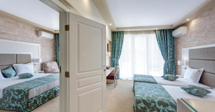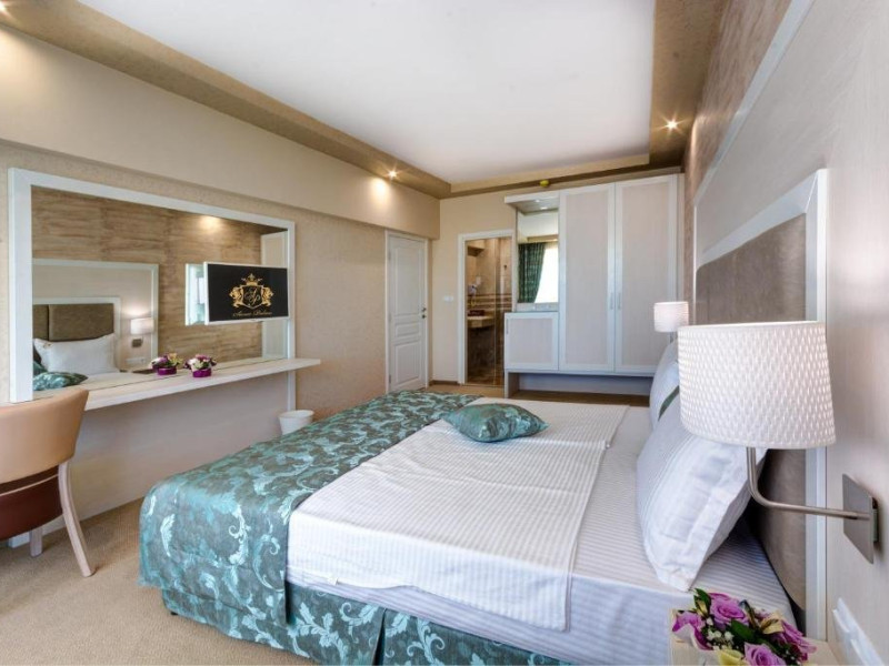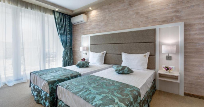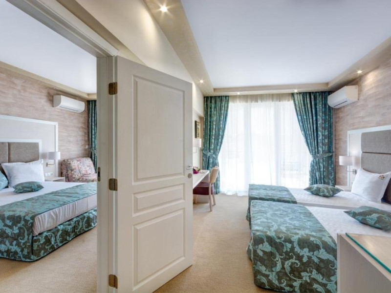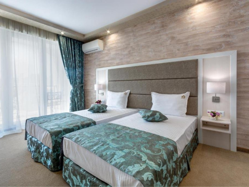 Siena Palace este situat pe strada principala din Primorsko, facandu-l usor accesibil si faciliteaza accesul oaspetilor in diferite locatii din oras sau in statiunile invecinate. Este situat pe 2 300 mp. zona. Siena Palace a fost construit in 2016 si pe langa numeroasele facilitati oferite oaspetilor si servicii excelente, bucatarie si respect. Plaja: cu nisip, la 3 minute de hotel. Acces in panta la fundul marii. Cazare: Hotelul dispune de 77 de camere: duble, triple si cele destinate persoanelor cu dizabilitati, precum si parcare subterana. Sunt 2 lifturi. DOUBLE ROOM 2+1: Toate camerele au balcon cu vedere la piscina sau la oras. Printre facilitatile lor se numara bai individuale, aer conditionat, televizor, mini-frigider si telefon. Camerele sunt dotate cu seifuri unde va puteti depozita obiectele de valoare in timp ce sunteti afara. Capacitate maxima de 3 adulti. Patut gratuit la cerere. Animalele de companie nu se accepta. Exista posibilitatea de cazare a persoanelor cu dizabilitati. Despre hotel: Printre facilitatile de care pot beneficia oaspetii se numara un lobby bar, restaurant cu gradina, produse vegetariene din bufet, piscina, centru de fitness, sala de fitness, spa, internet wireless (disponibil in intreg hotelul), parcare subterana. . Siena Palace are o sala de conferinte pentru intalniri de afaceri si evenimente. Restaurantul Siena Palace va ofera o bucatarie internationala variata, care este disponibila de la ora 11:30 dimineata pana la ora 22:00. In holul hotelului sunt disponibile bauturi si gustari disponibile intre orele 11:00 - 23:00. Pentru copii: loc de joaca interior. La dispozitie parintilor sunt scaune pentru copii in restaurant si patuturi in camerele de hotel. Sport si divertisment: Centru SPA cu sauna, baie de aburi, jacuzzi, masaj, centru de fitness, parcare cu plata si nepazita, inchirieri auto.