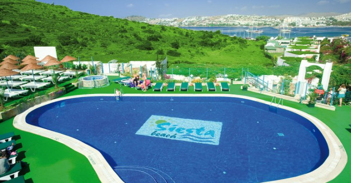 Localizare: Amplasat intr-o gradina pitoreasca pe un deal, Siesta Beach se afla 1 km de Poarta Myndus si are vedere la golful din GAzmbet. Morile de vant din Bodrum sunt la numai 500 de metri. Facilitati hotel: Hotelul pune la dispozitia turistilor 2 restauranter si 2 baruri, parcare privata, piscina in aer liber inconjurata de sezlonguri, receptie deschisa nonstop, sauna, baie turceasca si masaj. Dotari camere: Camerele sunt dotate cu TV, aer conditionat, uscator de par, telefon, chicineta si zona de relaxare, mini bar, balcon. Pagina web: https://www.siestabeachapart.com/