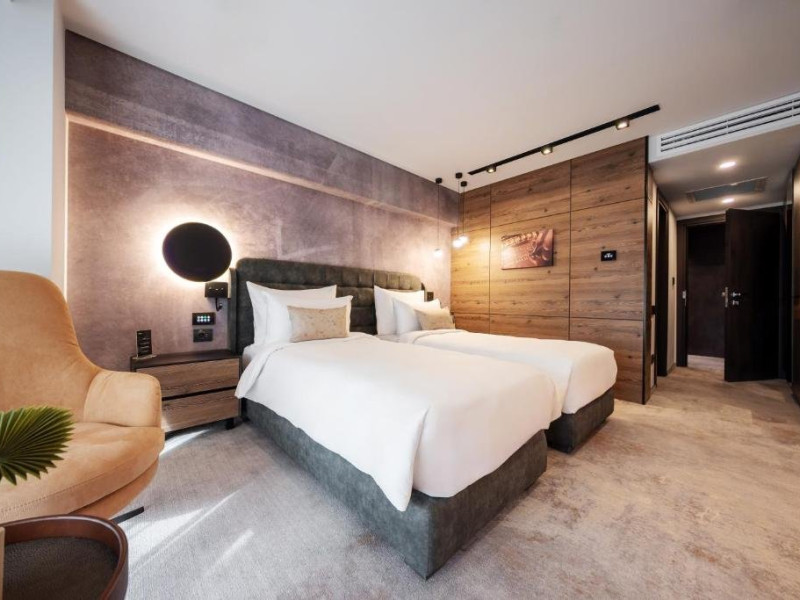 La Sun and Set Harmony Massage exista o gama variata de terapii, concepute pentru a imbunatati starea de bine. DESCRIERE CAMERE Camera dubla confort este dotata cu un pat king-size si ofera o combinatie ideala de intimitate si spatiu. Decorul modern, cu tonuri calde si mobilier, creeaza o atmosfera primitoare. Camera dubla smart este o camera compacta, dar bine gandita, fiind dotata cu un pat matrimonial sau doua paturi si ofera toate facilitatile necesare pentru un sejur placut. Camera dubla confort cu terasa este spatioasa si ofera doua paturi individuale, asigurand un somn odihnitor. Ferestrele mari permit o lumina naturala abundenta, iar decorul elegant completeaza confortul camerei. In plus, aceasta dispune de o terasa privata cu mobilier si balansoar, un spatiu perfect pentru momentele de relaxare in aer liber. Suita Signature Grand ofera confortul absolut, menit sa sublinieze exclusivitatea intr-un spatiu generos, la care se adauga o canapea extensibila si salon, dar si o baie secundara pentru un plus de confort. Dormitorul are pat king-size si draperii de tip black-out pentru a garanta un somn odihnitor, masa si fier de calcat in camera. Suita Junior Elegance este alegerea perfecta pentru familii sau pentru cei care apreciaza un spatiu generos. Paturile configurabile (duble sau twin) si canapeaua extensibila ofera o flexibilitate excelenta, fiind ideale pentru sejururi in doi sau pentru familii cu copii. Camera Executive Relax are un design modern si paturi configurabile (duble sau twin), iar fotoliul extensibil adauga un spatiu de relaxare suplimentar sau poate fi transformat intr-un pat comod. Toate camerele dispun de: saltele premium, smart TV de 55 inch cu modul hospitality activat, seif, set practic pentru intretinerea pantofilor, apa, ceai si cafea incluse, facilitati high tech, sistem de iluminat inteligent, control individual al climatizarii, acces in camera prin card, telefon, halat si papuci de camera, uscator de par, cosmetice, minibar, balcon. LOCALIZARE Hotel Simona Halep este situat in Poiana Brasov, la aproximativ 800 m de partia de schi Bradul. ATRACTII TURISTICE Partiile de schi, Castelul Bran, Castelul Peles, Cetatea Rasnov, Biserica Neagra.POLITICI Nu sunt permise animalele de companie. SERVICII DE MASA Mesele se servesc in restaurantul propriu.FACILITATI COPII Copiii se pot caza in suite sau camera executive. FACILITATI EVENIMENTE Sala moderna, cu o suprafata de 60 mp si o capacitate de pana la 27 de persoane, dispune de un ecran cu conectivitate intuitiva si usor de utilizat, sistem de sonorizare, flipchart-uri si un setup flexibil, cu fotolii comode si mese.