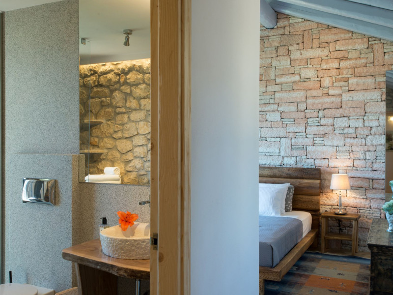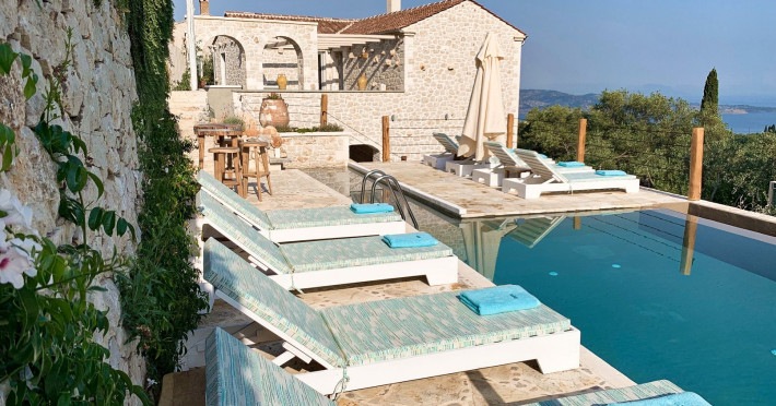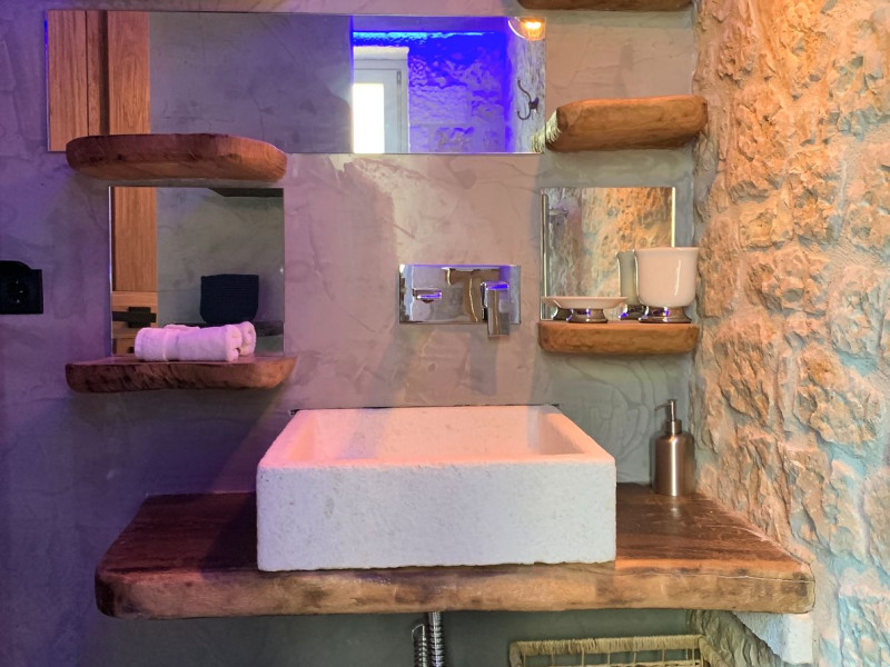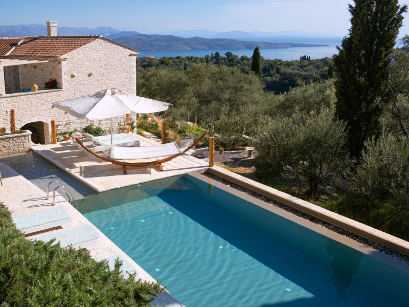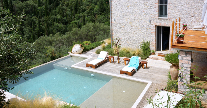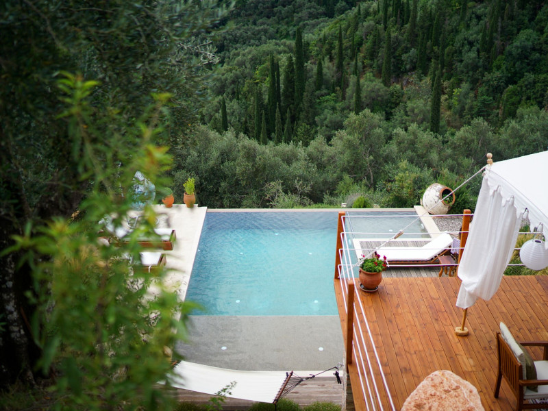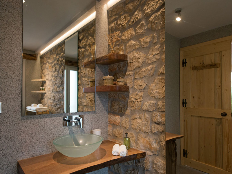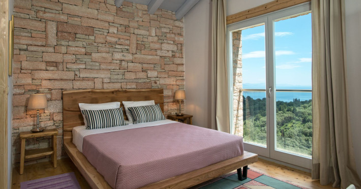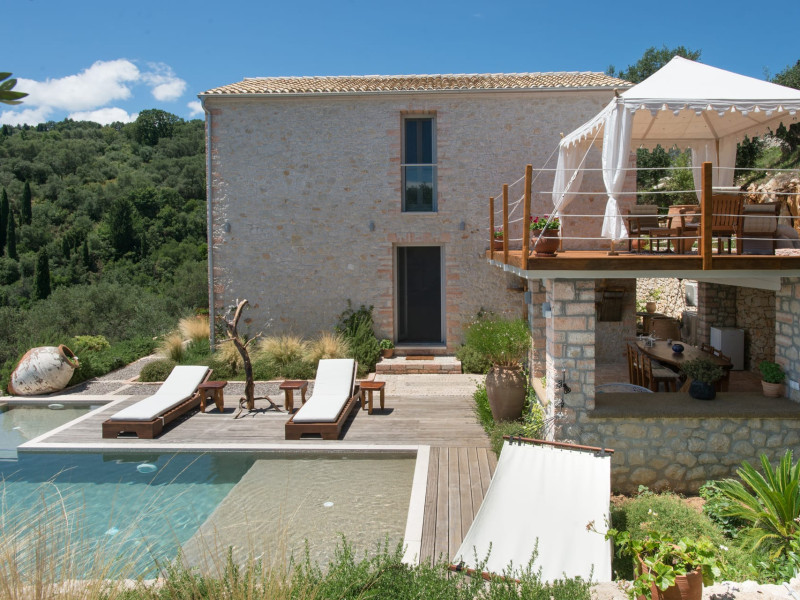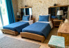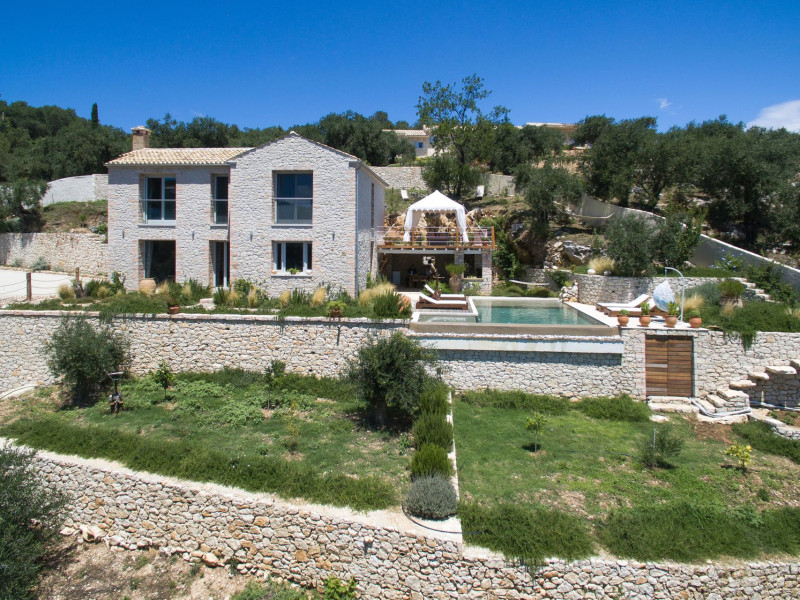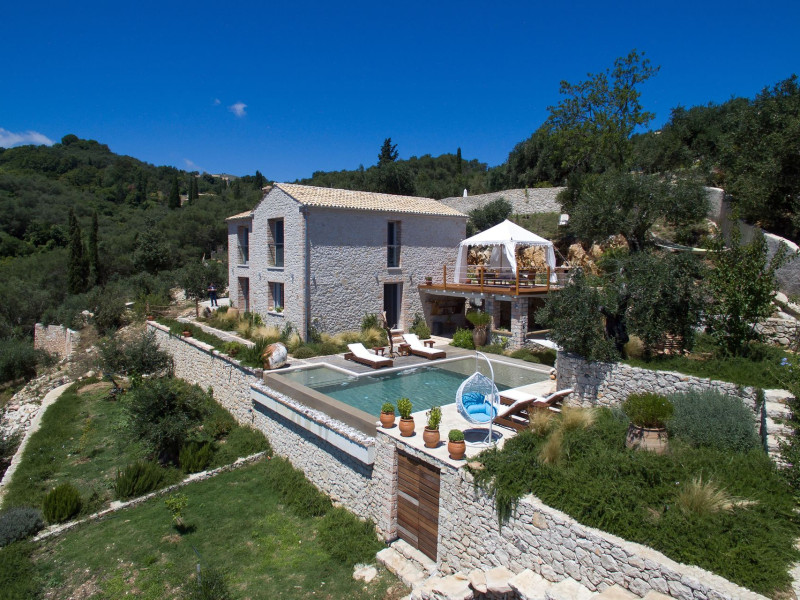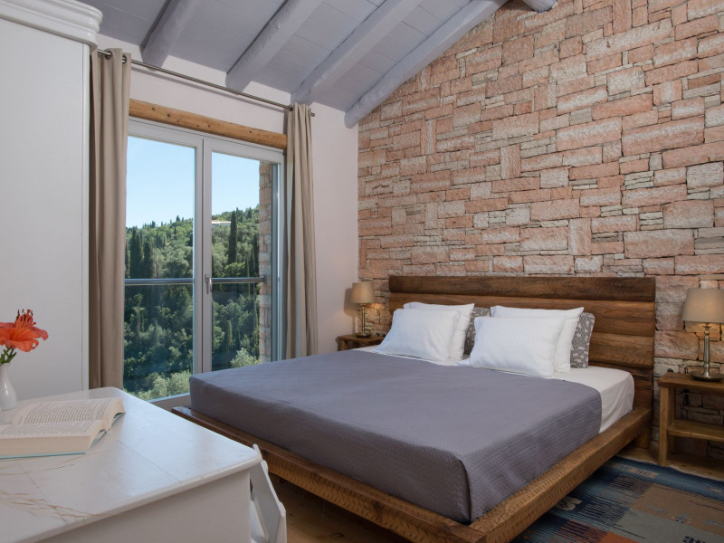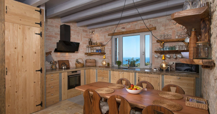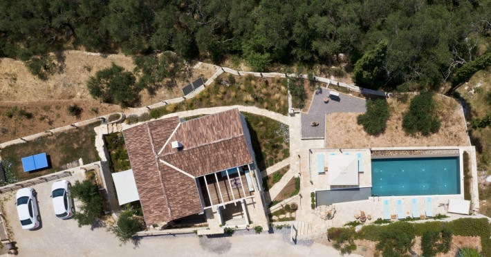 Sinium Luxury Villa is built on the cliffside and its infinity pool is overlooking the NE bays, the sea and the opposite mountainside. Surrounded by wild nature, the combination of wood and stone (both local) in its architecture make you feel that the villa had been there for ages. Unique decoration with both furniture and details hand crafted. Amplet space both inside and outside, a very cute uppper pool deck with stunning sea views and an infinity pool and main deck for absolute relaxation.Its architectural style and the fact that almost everything (both furniture and details) in the property are hand crafted, makes it even more unique. The tranquillity, views, amazing nature and energy of the place will make you feel like you belong from the very first day. This is the main difference to any other luxury villa, its "warmth".DescriptionThe villa comprises of 2 floors. 3 bedrooms and 2 bathrooms on the upper floor (2 of them with stunning views from the bed). Living room and hand crafted kitchen both with amazing views and another bathroom downstairs. The exterior features well tended garden with flowers, strawberries and herbs! Wonderful stone built terraces and corridors, fantastic lighting both inside and outside, a built BBQ with outdoor dining table for 6 guests (shaded), main and upper pool decks (both furnished and extensive), your homey infinity pool with amazing views and parking space for at least 2 cars. Everything has been carefully thought out and you will feel like home from the very first moment.Cleaning/Towels/Linen/Maid serviceMaid service and linen laundry provided twice a week (additional days on request).