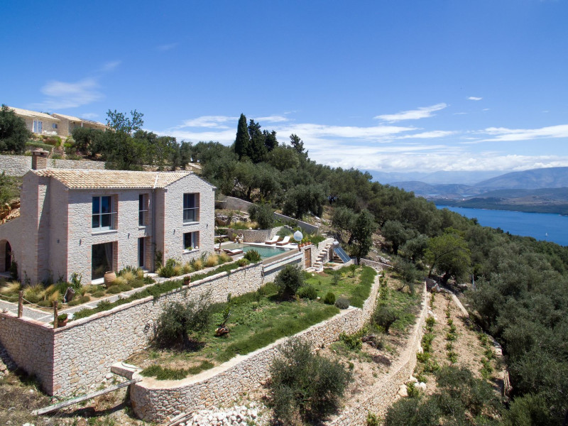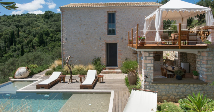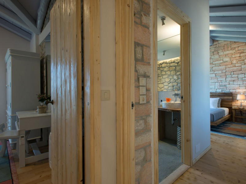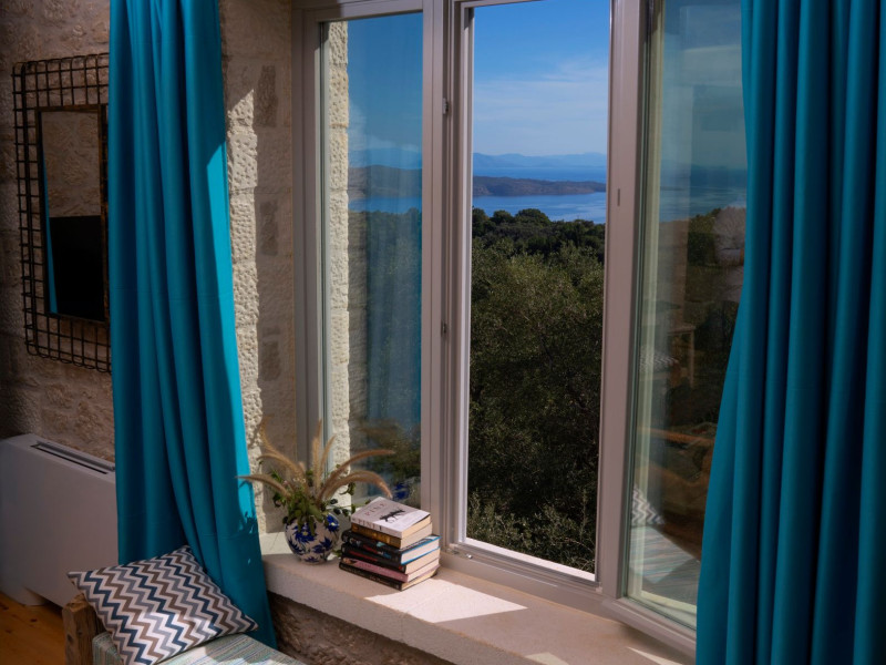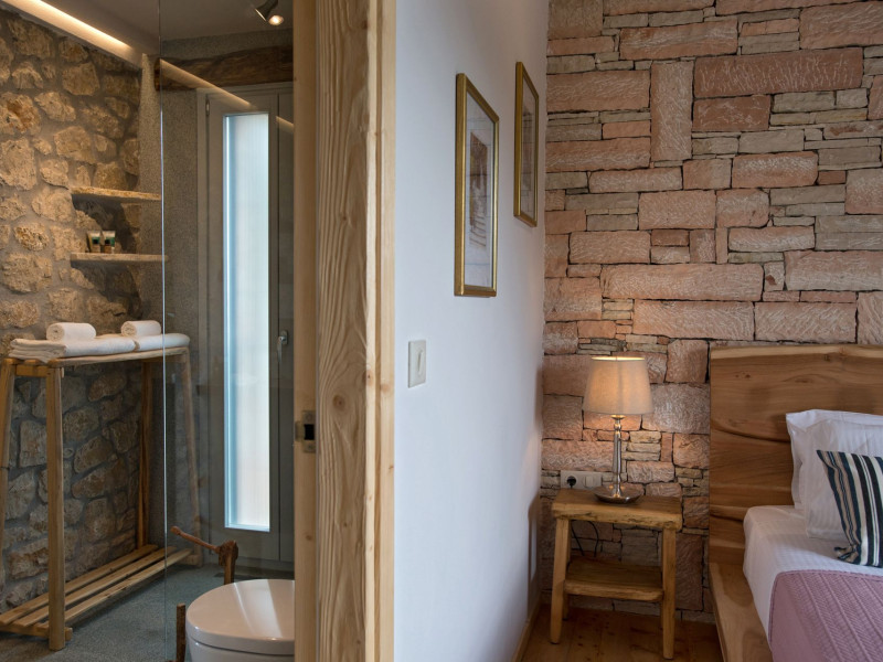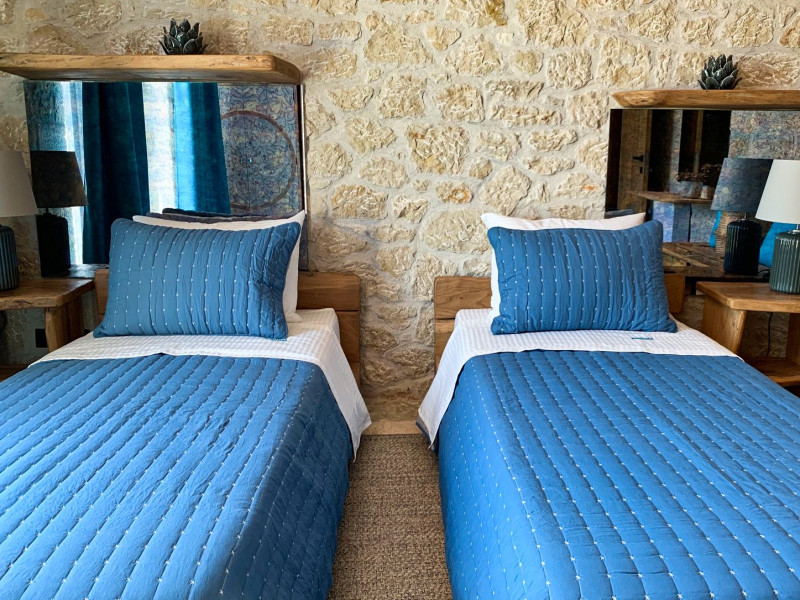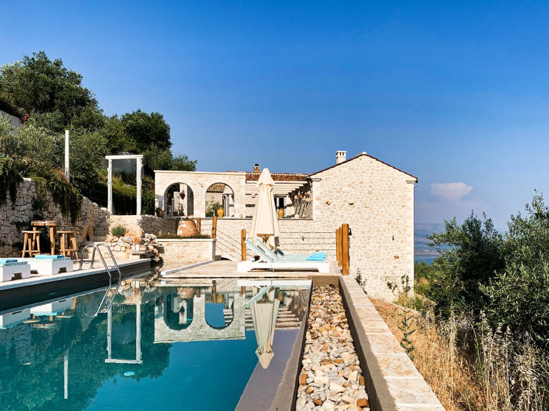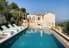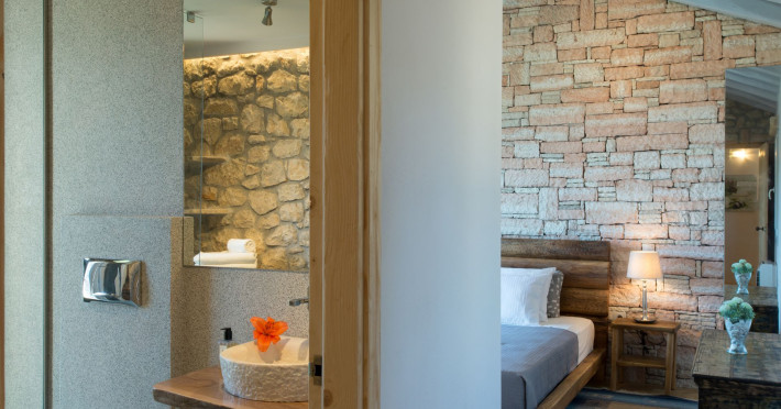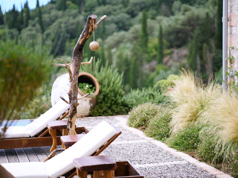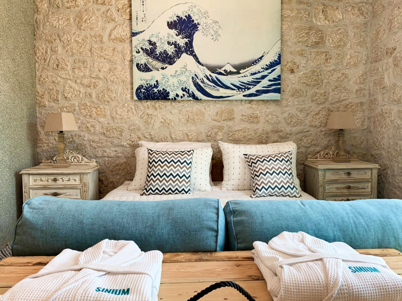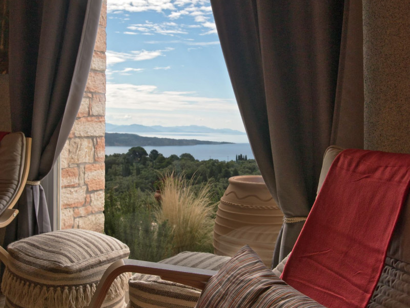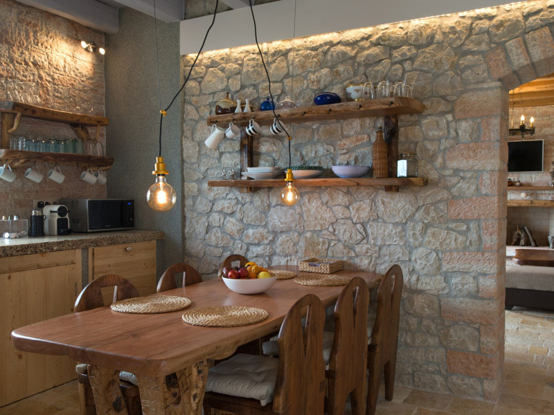 Sinium Luxury Villa is built on the cliffside and its infinity pool is overlooking the NE bays, the sea and the opposite mountainside. Surrounded by wild nature, the combination of wood and stone (both local) in its architecture make you feel that the villa had been there for ages. Unique decoration with both furniture and details hand crafted. Amplet space both inside and outside, a very cute uppper pool deck with stunning sea views and an infinity pool and main deck for absolute relaxation.Its architectural style and the fact that almost everything (both furniture and details) in the property are hand crafted, makes it even more unique. The tranquillity, views, amazing nature and energy of the place will make you feel like you belong from the very first day. This is the main difference to any other luxury villa, its "warmth".DescriptionThe villa comprises of 2 floors. 3 bedrooms and 2 bathrooms on the upper floor (2 of them with stunning views from the bed). Living room and hand crafted kitchen both with amazing views and another bathroom downstairs. The exterior features well tended garden with flowers, strawberries and herbs! Wonderful stone built terraces and corridors, fantastic lighting both inside and outside, a built BBQ with outdoor dining table for 6 guests (shaded), main and upper pool decks (both furnished and extensive), your homey infinity pool with amazing views and parking space for at least 2 cars. Everything has been carefully thought out and you will feel like home from the very first moment.Cleaning/Towels/Linen/Maid serviceMaid service and linen laundry provided twice a week (additional days on request).