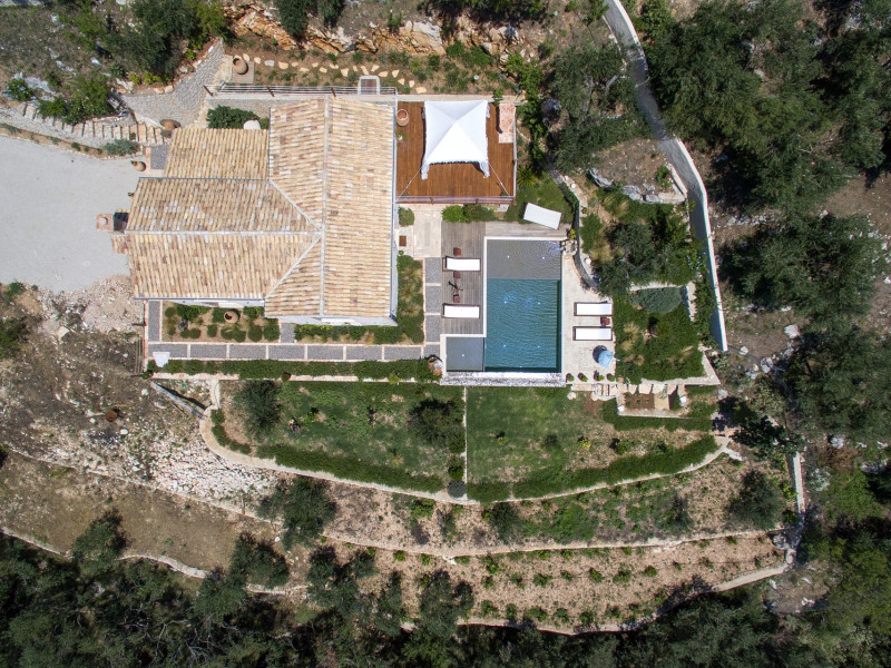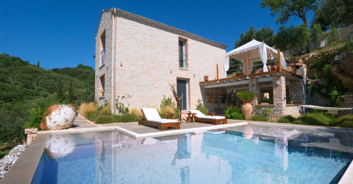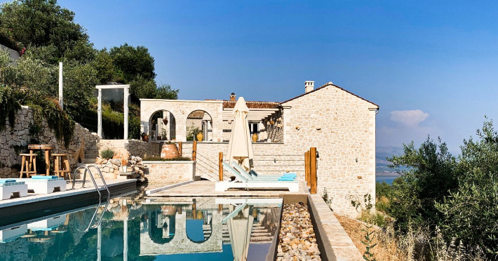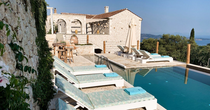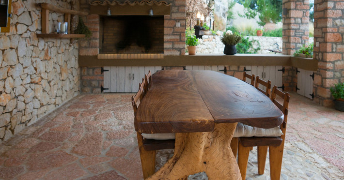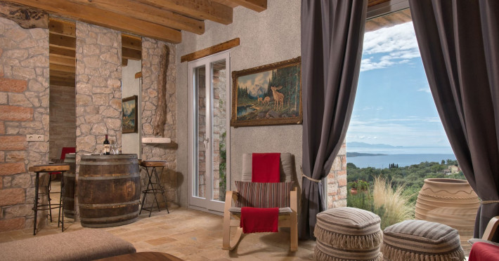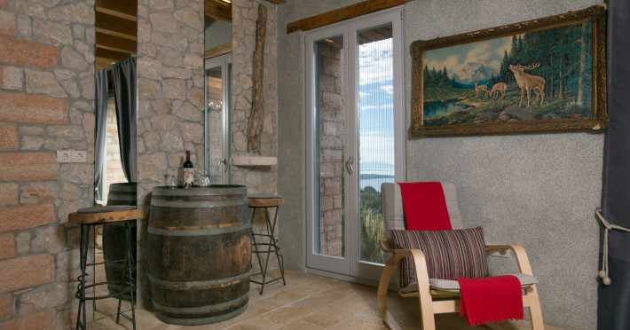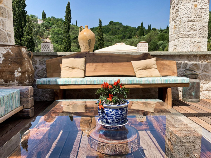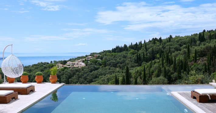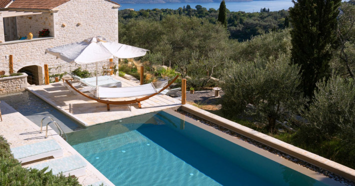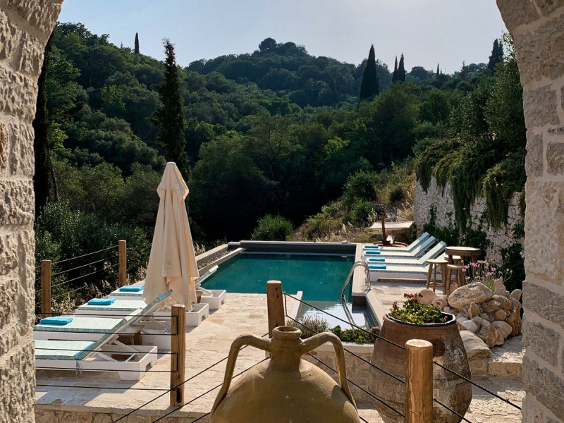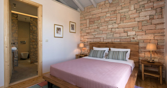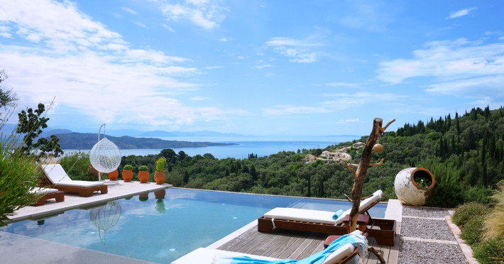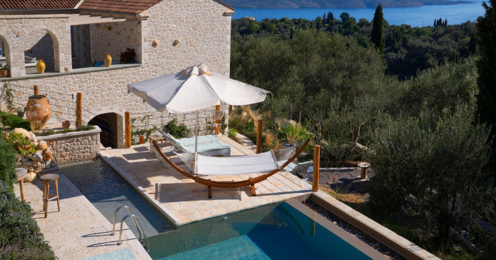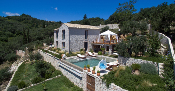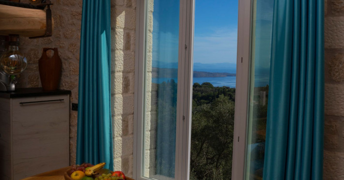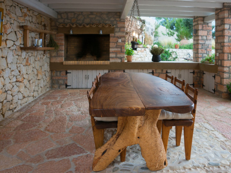 Sinium Luxury Villa is built on the cliffside and its infinity pool is overlooking the NE bays, the sea and the opposite mountainside. Surrounded by wild nature, the combination of wood and stone (both local) in its architecture make you feel that the villa had been there for ages. Unique decoration with both furniture and details hand crafted. Amplet space both inside and outside, a very cute uppper pool deck with stunning sea views and an infinity pool and main deck for absolute relaxation.Its architectural style and the fact that almost everything (both furniture and details) in the property are hand crafted, makes it even more unique. The tranquillity, views, amazing nature and energy of the place will make you feel like you belong from the very first day. This is the main difference to any other luxury villa, its "warmth".DescriptionThe villa comprises of 2 floors. 3 bedrooms and 2 bathrooms on the upper floor (2 of them with stunning views from the bed). Living room and hand crafted kitchen both with amazing views and another bathroom downstairs. The exterior features well tended garden with flowers, strawberries and herbs! Wonderful stone built terraces and corridors, fantastic lighting both inside and outside, a built BBQ with outdoor dining table for 6 guests (shaded), main and upper pool decks (both furnished and extensive), your homey infinity pool with amazing views and parking space for at least 2 cars. Everything has been carefully thought out and you will feel like home from the very first moment.Cleaning/Towels/Linen/Maid serviceMaid service and linen laundry provided twice a week (additional days on request).