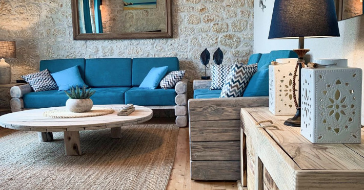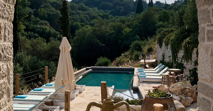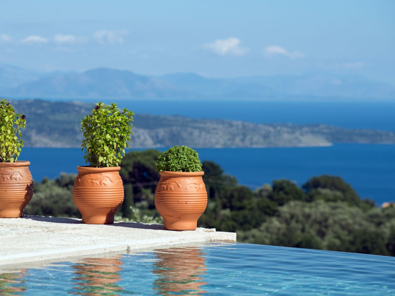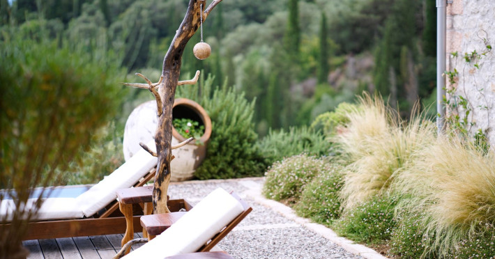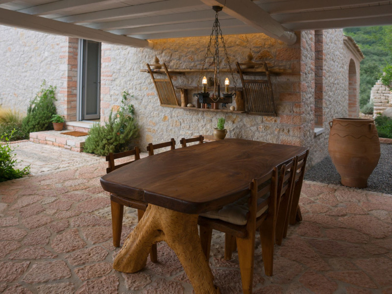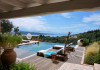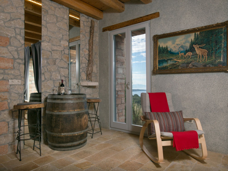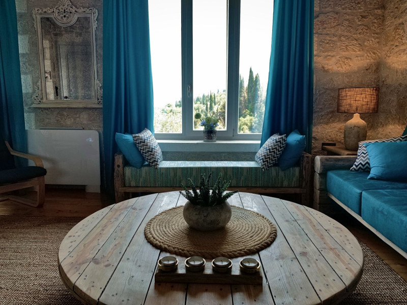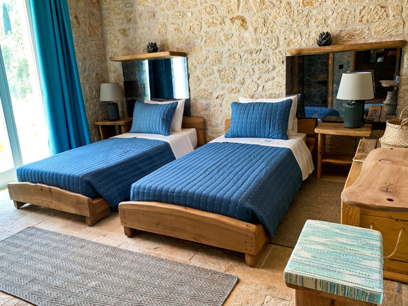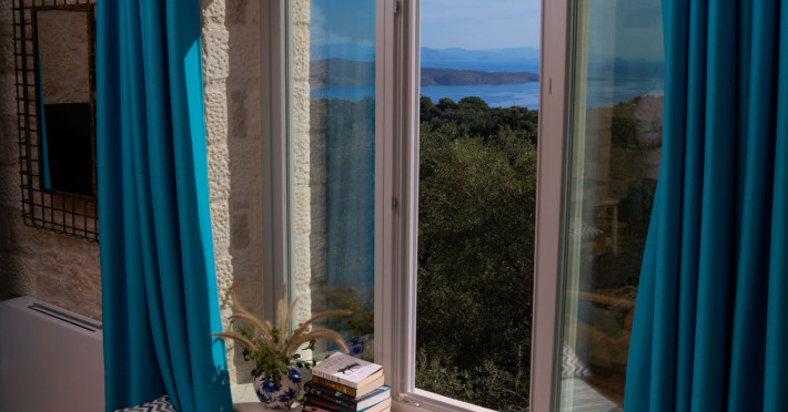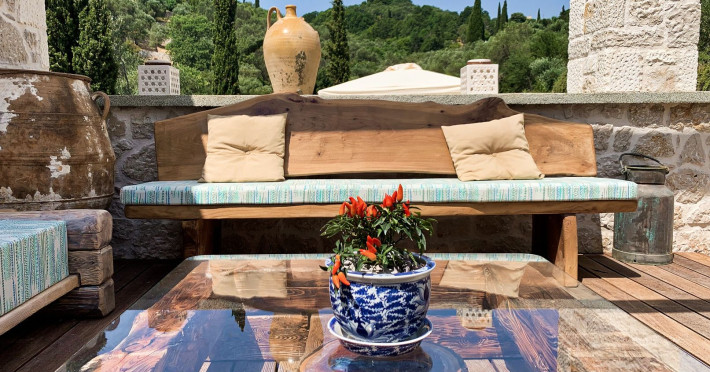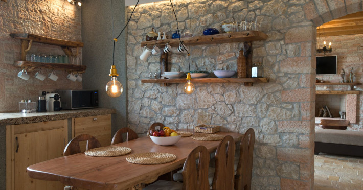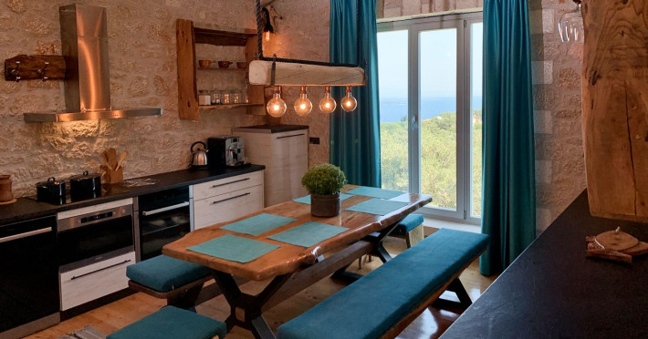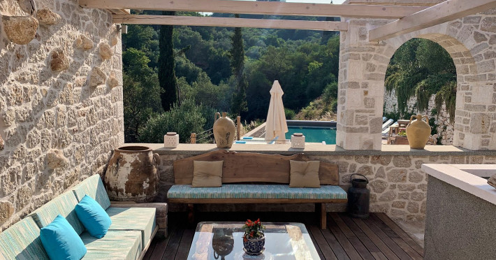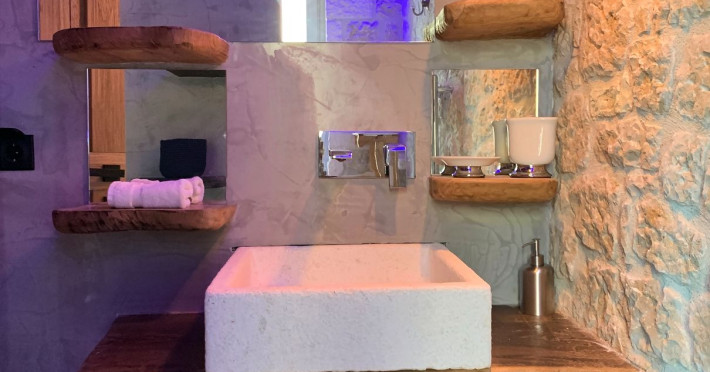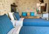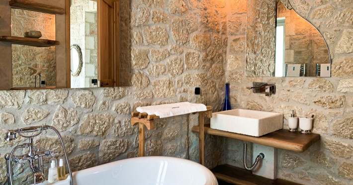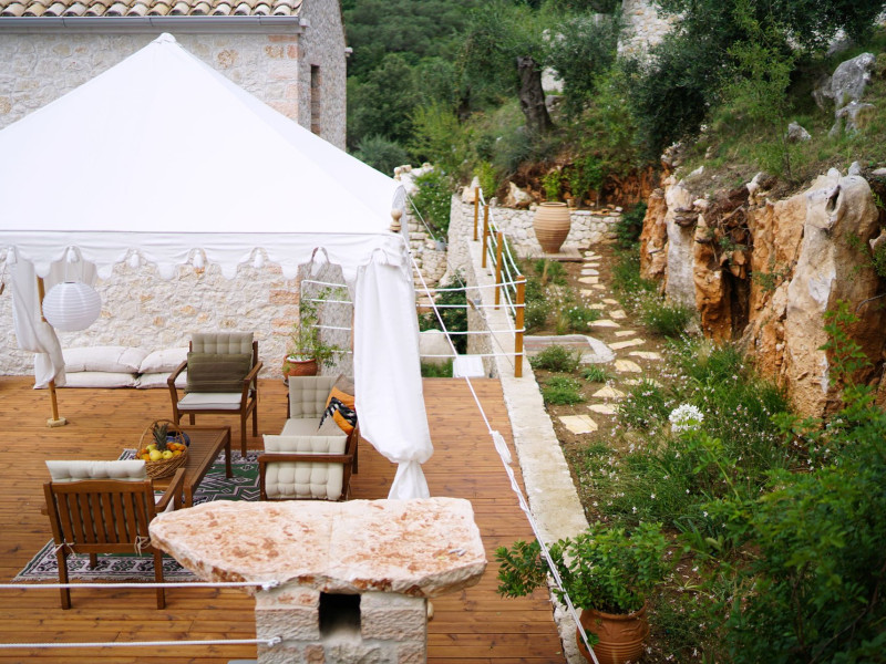 Sinium Luxury Villa is built on the cliffside and its infinity pool is overlooking the NE bays, the sea and the opposite mountainside. Surrounded by wild nature, the combination of wood and stone (both local) in its architecture make you feel that the villa had been there for ages. Unique decoration with both furniture and details hand crafted. Amplet space both inside and outside, a very cute uppper pool deck with stunning sea views and an infinity pool and main deck for absolute relaxation.Its architectural style and the fact that almost everything (both furniture and details) in the property are hand crafted, makes it even more unique. The tranquillity, views, amazing nature and energy of the place will make you feel like you belong from the very first day. This is the main difference to any other luxury villa, its "warmth".DescriptionThe villa comprises of 2 floors. 3 bedrooms and 2 bathrooms on the upper floor (2 of them with stunning views from the bed). Living room and hand crafted kitchen both with amazing views and another bathroom downstairs. The exterior features well tended garden with flowers, strawberries and herbs! Wonderful stone built terraces and corridors, fantastic lighting both inside and outside, a built BBQ with outdoor dining table for 6 guests (shaded), main and upper pool decks (both furnished and extensive), your homey infinity pool with amazing views and parking space for at least 2 cars. Everything has been carefully thought out and you will feel like home from the very first moment.Cleaning/Towels/Linen/Maid serviceMaid service and linen laundry provided twice a week (additional days on request).