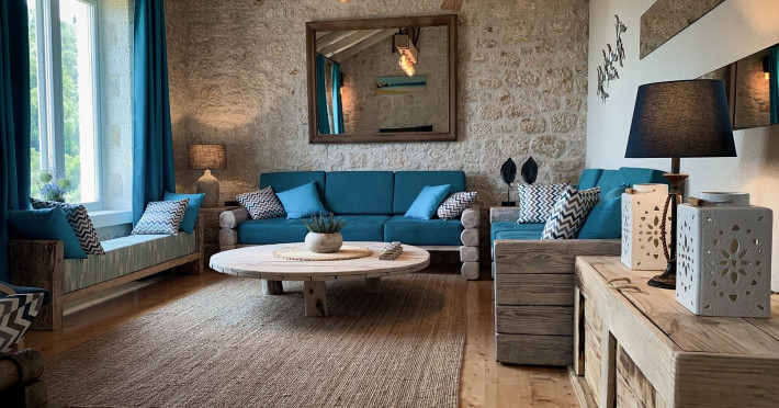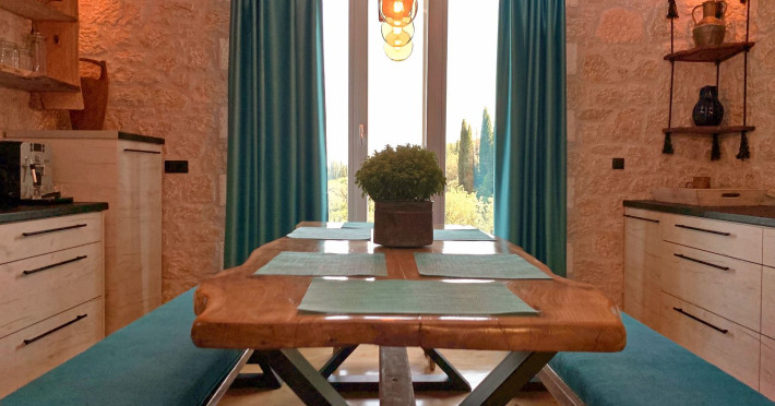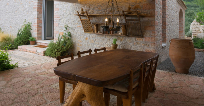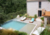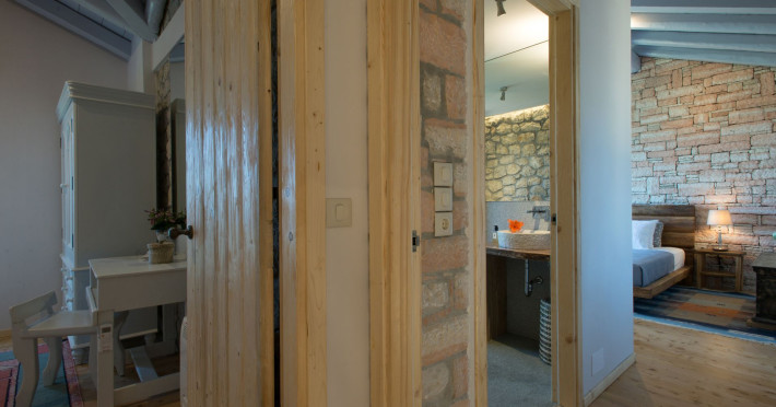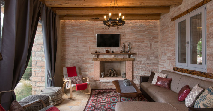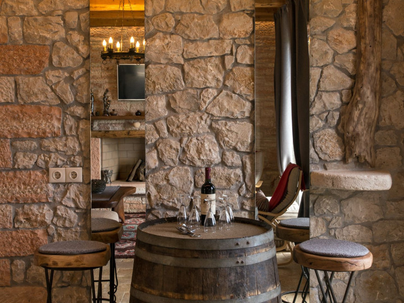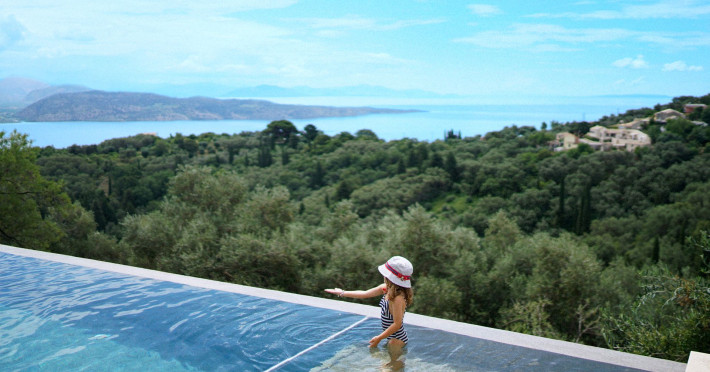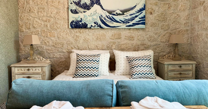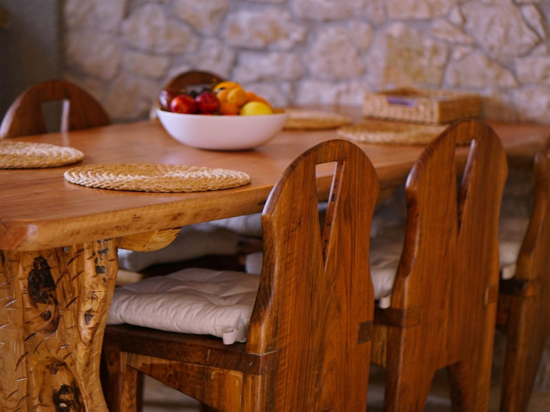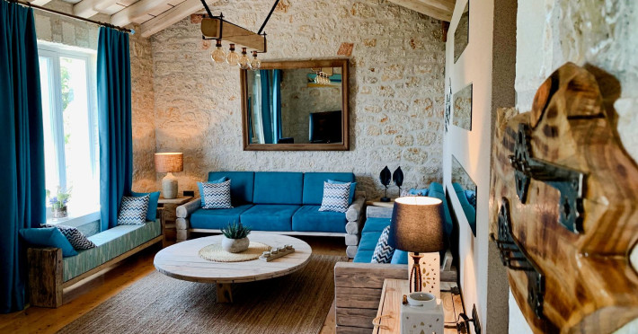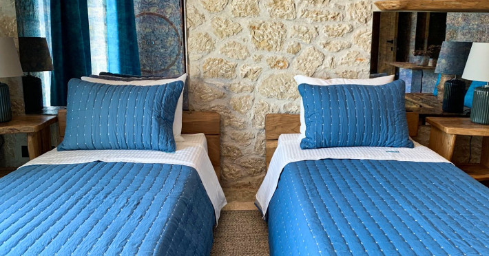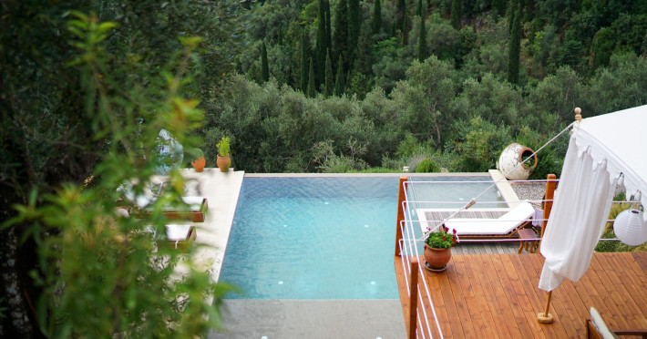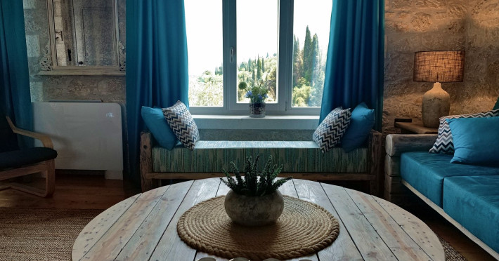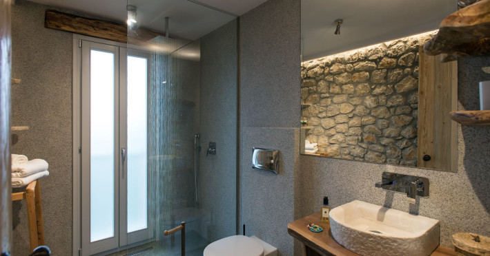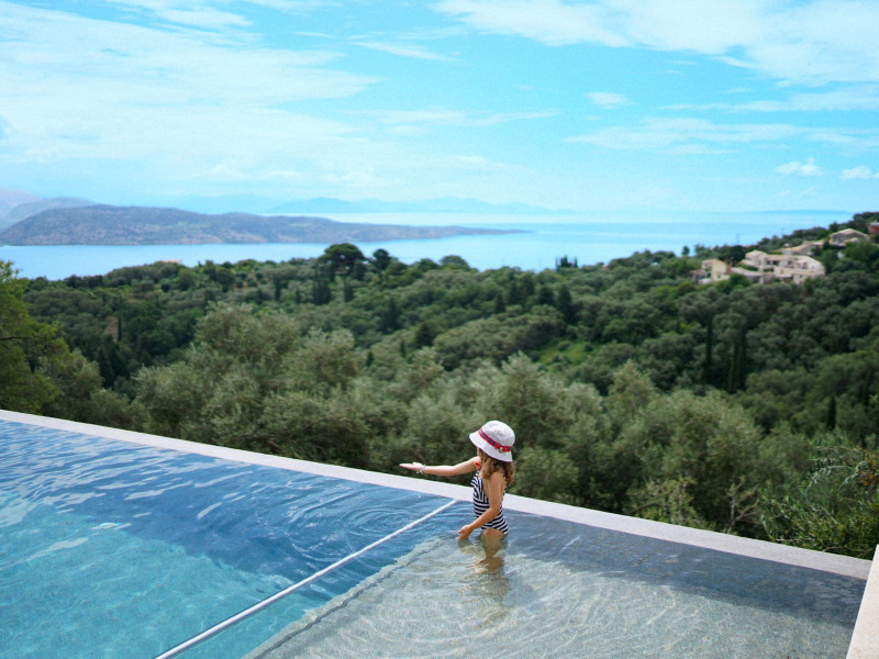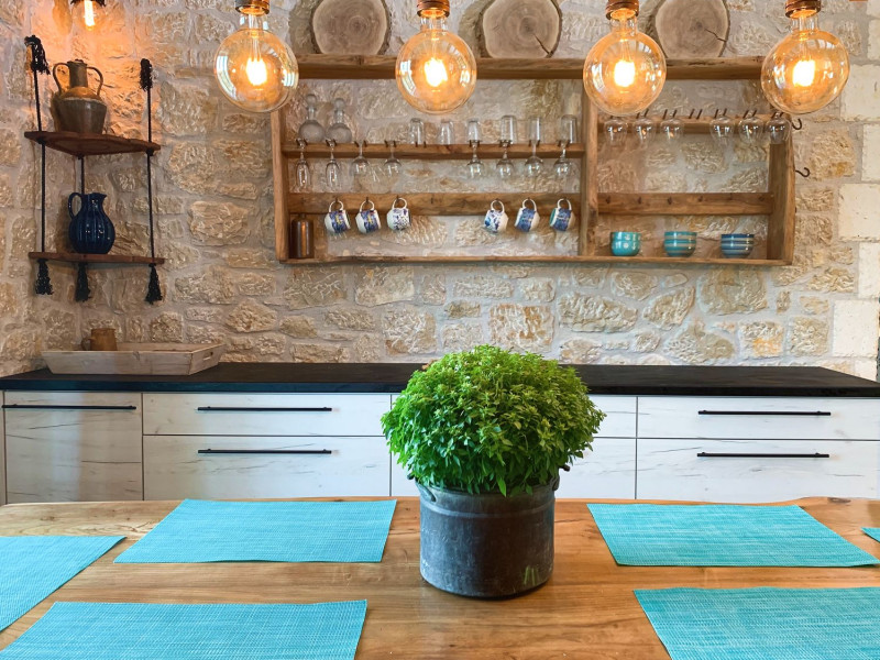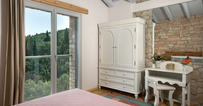 Sinium Luxury Villa is built on the cliffside and its infinity pool is overlooking the NE bays, the sea and the opposite mountainside. Surrounded by wild nature, the combination of wood and stone (both local) in its architecture make you feel that the villa had been there for ages. Unique decoration with both furniture and details hand crafted. Amplet space both inside and outside, a very cute uppper pool deck with stunning sea views and an infinity pool and main deck for absolute relaxation.Its architectural style and the fact that almost everything (both furniture and details) in the property are hand crafted, makes it even more unique. The tranquillity, views, amazing nature and energy of the place will make you feel like you belong from the very first day. This is the main difference to any other luxury villa, its "warmth".DescriptionThe villa comprises of 2 floors. 3 bedrooms and 2 bathrooms on the upper floor (2 of them with stunning views from the bed). Living room and hand crafted kitchen both with amazing views and another bathroom downstairs. The exterior features well tended garden with flowers, strawberries and herbs! Wonderful stone built terraces and corridors, fantastic lighting both inside and outside, a built BBQ with outdoor dining table for 6 guests (shaded), main and upper pool decks (both furnished and extensive), your homey infinity pool with amazing views and parking space for at least 2 cars. Everything has been carefully thought out and you will feel like home from the very first moment.Cleaning/Towels/Linen/Maid serviceMaid service and linen laundry provided twice a week (additional days on request).