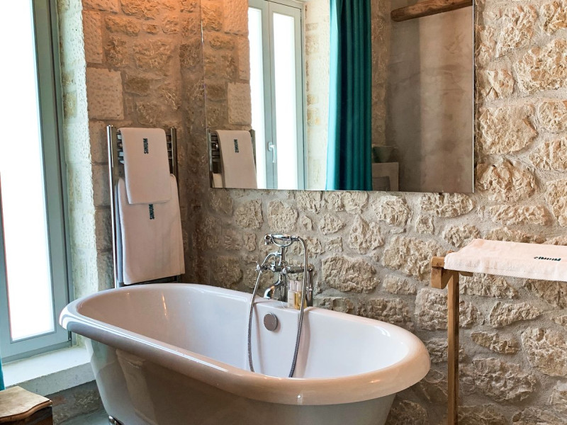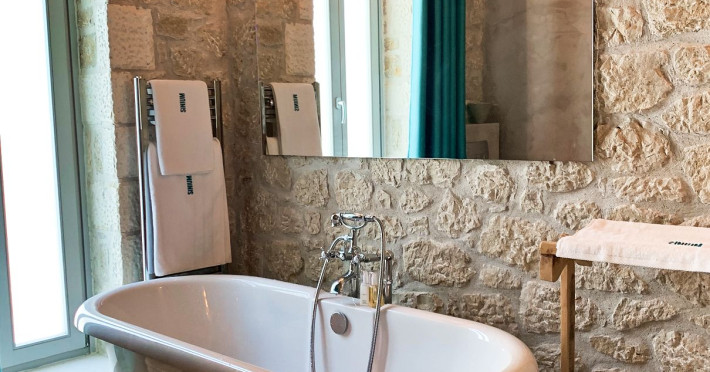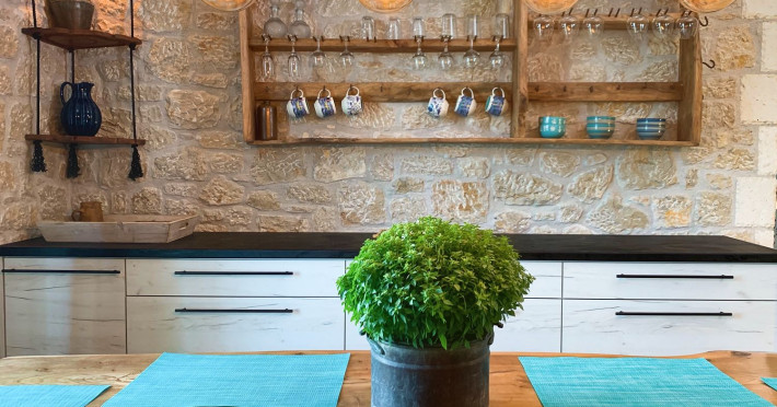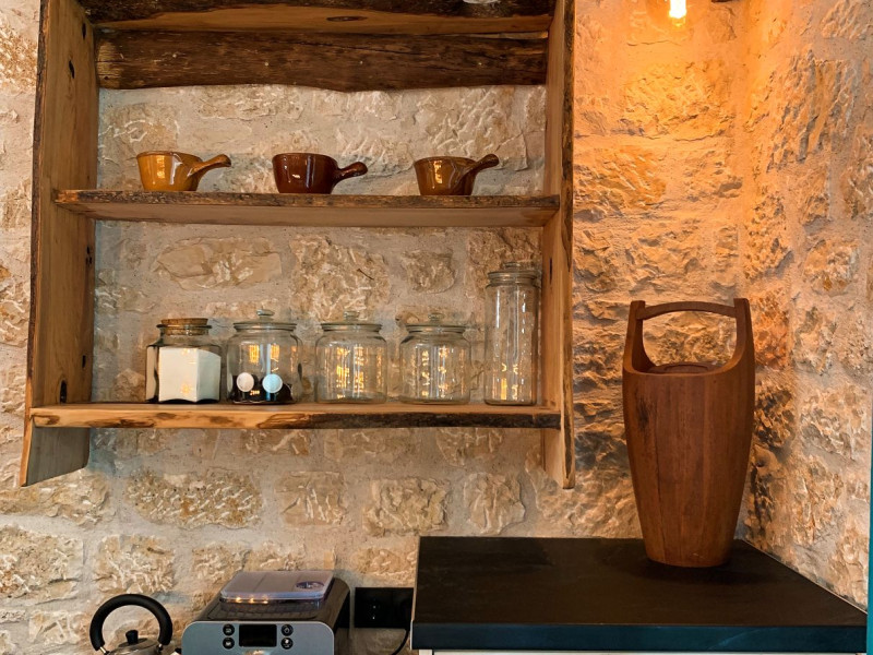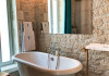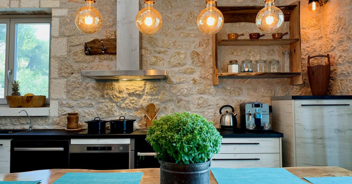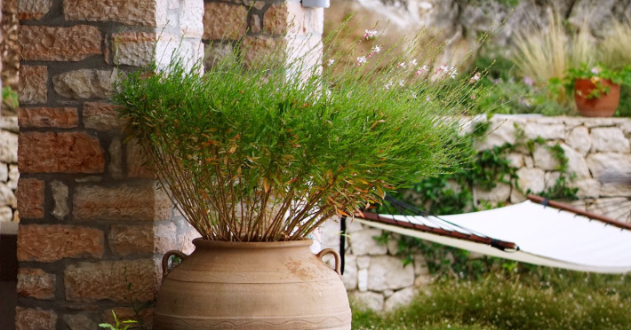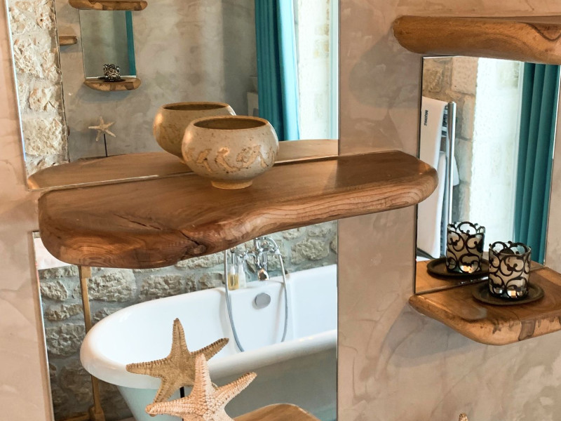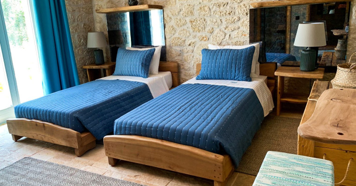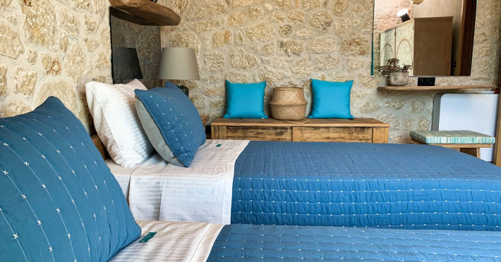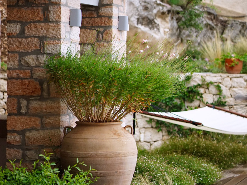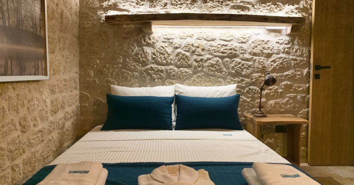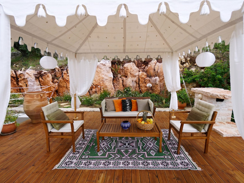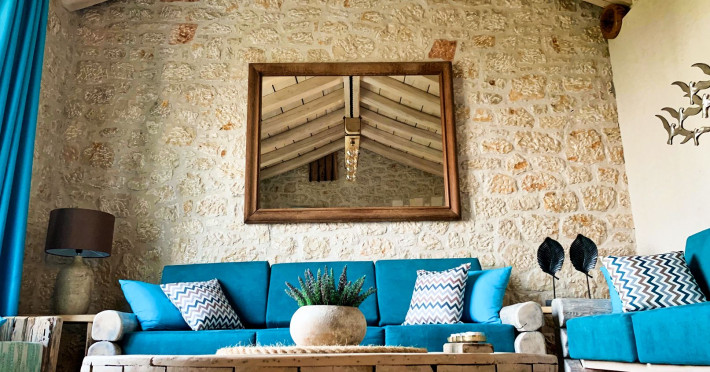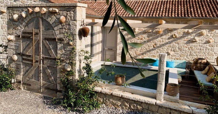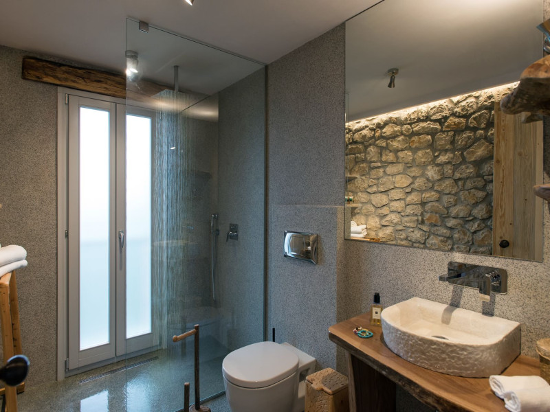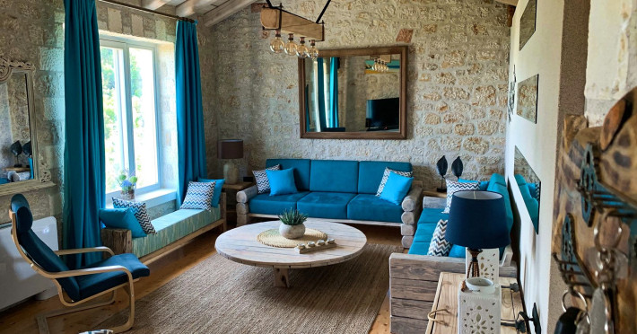 Sinium Luxury Villa is built on the cliffside and its infinity pool is overlooking the NE bays, the sea and the opposite mountainside. Surrounded by wild nature, the combination of wood and stone (both local) in its architecture make you feel that the villa had been there for ages. Unique decoration with both furniture and details hand crafted. Amplet space both inside and outside, a very cute uppper pool deck with stunning sea views and an infinity pool and main deck for absolute relaxation.Its architectural style and the fact that almost everything (both furniture and details) in the property are hand crafted, makes it even more unique. The tranquillity, views, amazing nature and energy of the place will make you feel like you belong from the very first day. This is the main difference to any other luxury villa, its "warmth".DescriptionThe villa comprises of 2 floors. 3 bedrooms and 2 bathrooms on the upper floor (2 of them with stunning views from the bed). Living room and hand crafted kitchen both with amazing views and another bathroom downstairs. The exterior features well tended garden with flowers, strawberries and herbs! Wonderful stone built terraces and corridors, fantastic lighting both inside and outside, a built BBQ with outdoor dining table for 6 guests (shaded), main and upper pool decks (both furnished and extensive), your homey infinity pool with amazing views and parking space for at least 2 cars. Everything has been carefully thought out and you will feel like home from the very first moment.Cleaning/Towels/Linen/Maid serviceMaid service and linen laundry provided twice a week (additional days on request).