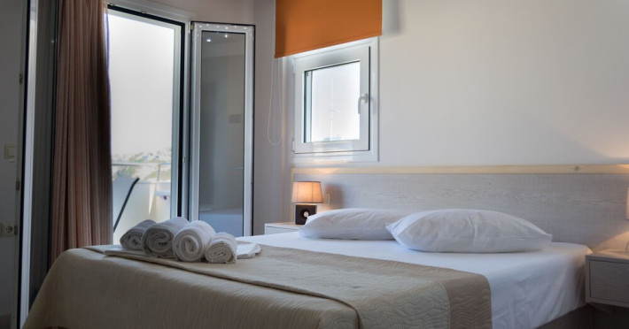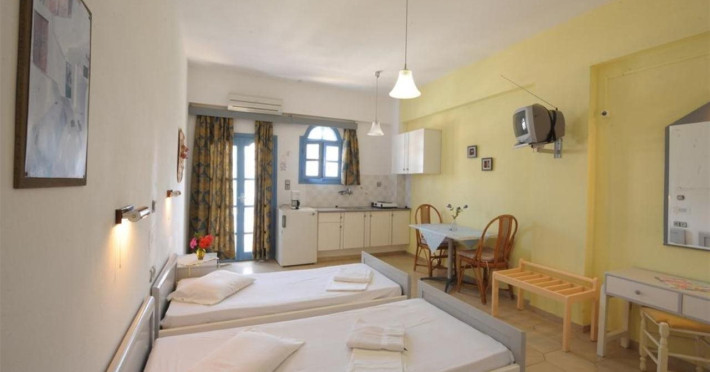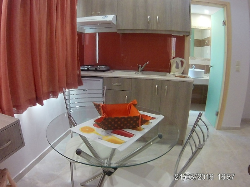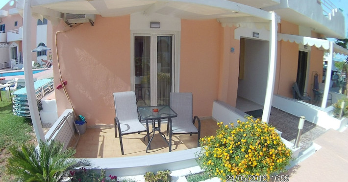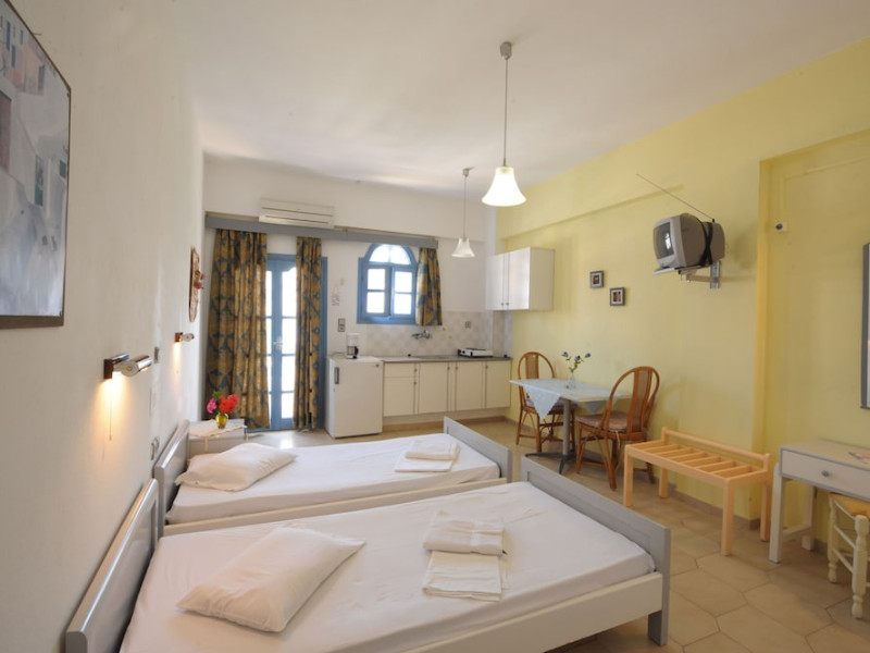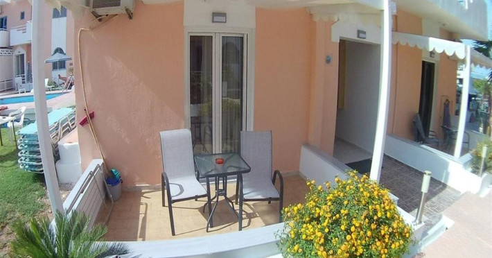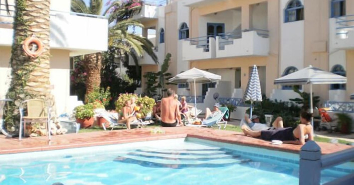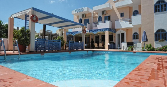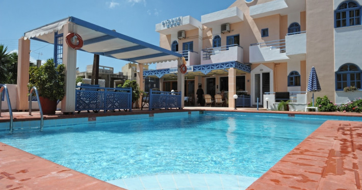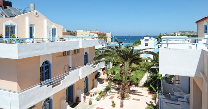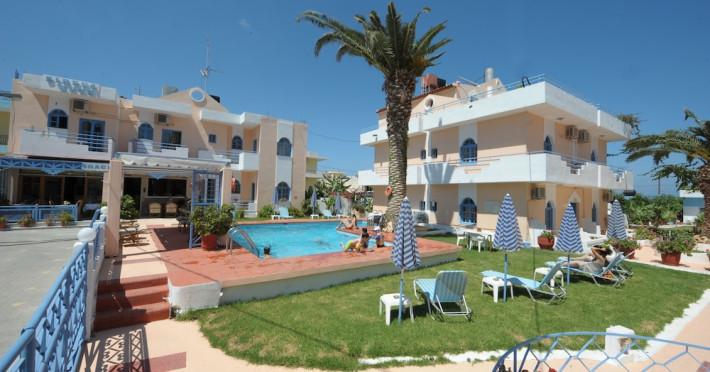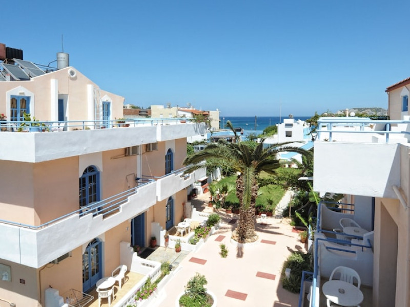It offers accommodation with access to a seasonal outdoor swimming pool, a garden, complimentary wireless internet access, and free private parking. Guests can enjoy a continental breakfast and utilize the snack bar. The property features a sun terrace and barbecue grills. The accommodation units are equipped with air-conditioning (surcharge), include a kitchenette with a refrigerator and stovetop, a private bathroom with a shower, a flat-screen TV, a safety deposit box (surcharge), a balcony or patio, a wardrobe, a coffee machine, and kitchenware. Housekeeping is provided daily. A car rental service is available. Guests can relax at the bar/lounge or the poolside bar. The front desk is staffed during limited hours. Nikos Kazantzakis Airport (HER) is 26 km away.