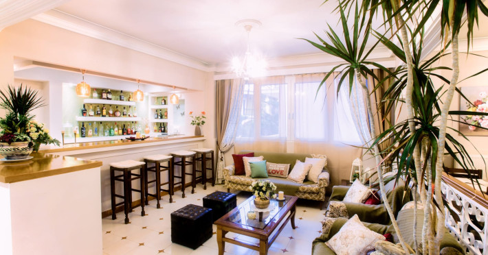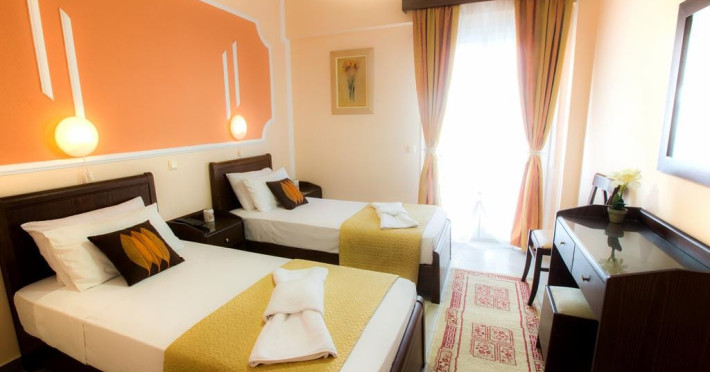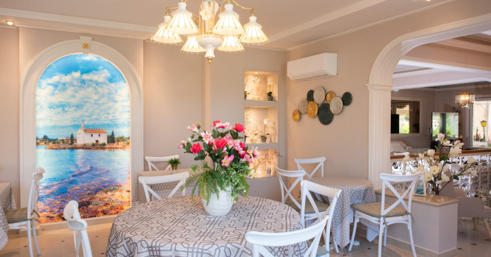 This centrally situated hotel in Gouvia lies just 50 metres from the beach. It features air-conditioned rooms, most with sea view. Hotel features include a TV lounge and a breakfast area.