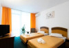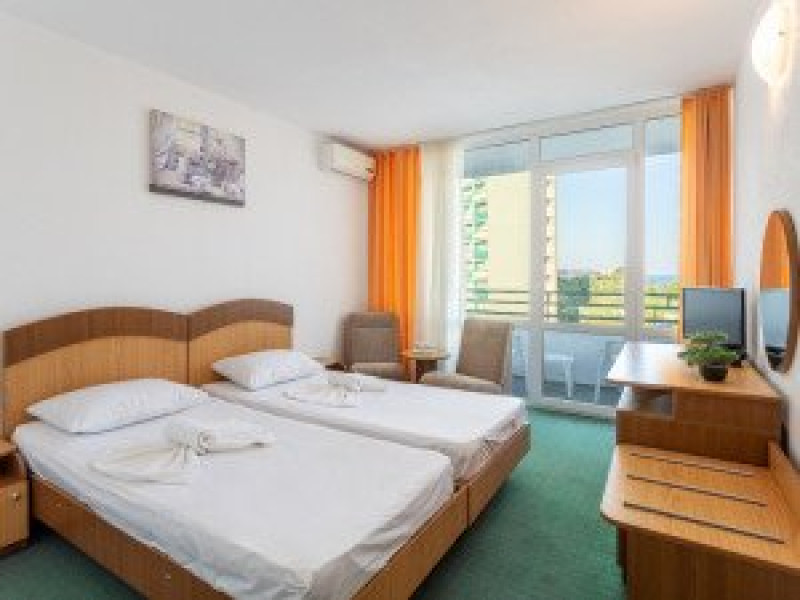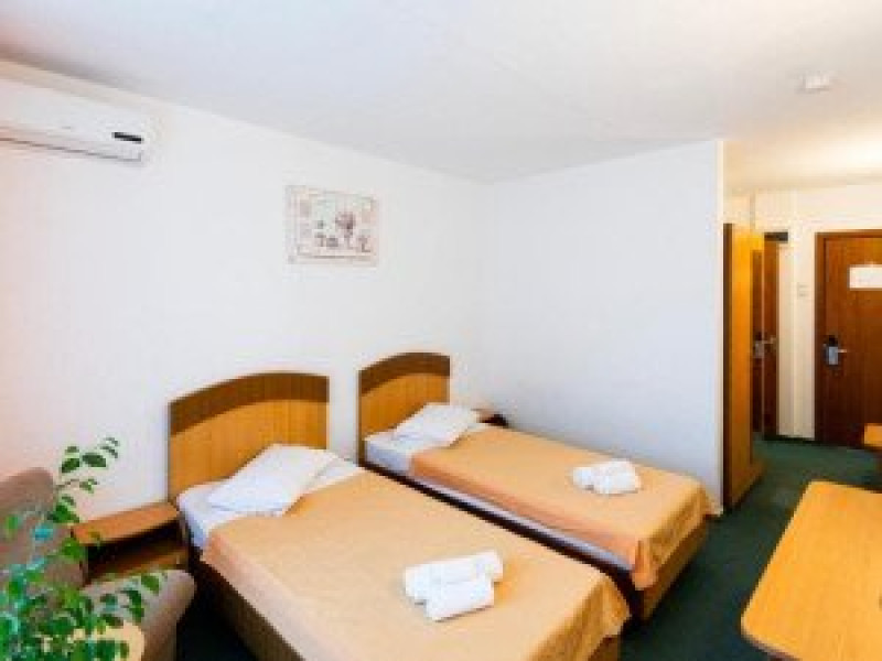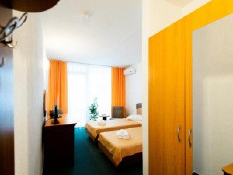 Camerele duble fara balcon (parter) dispun de paturi twin, AC, minibar, internet, TV, baie proprie cu dus, uscator de par. Camerele duble cu balcon (etaj) dispun de paturi twin, AC, minibar, internet, TV, baie proprie cu dus, uscator de par. In toate camerele exista paturi twin care se unesc.