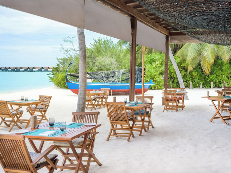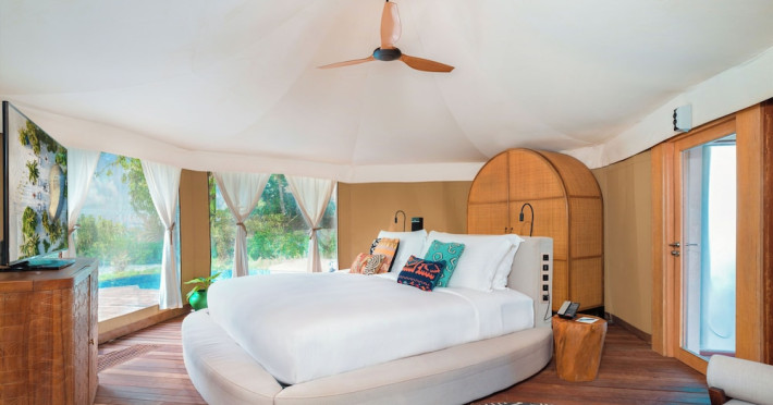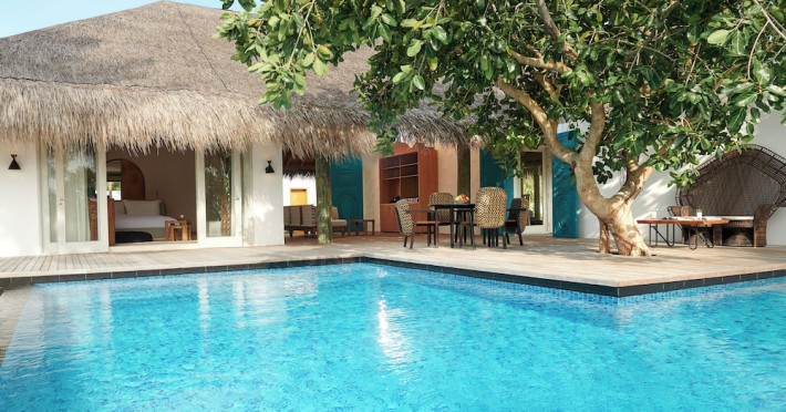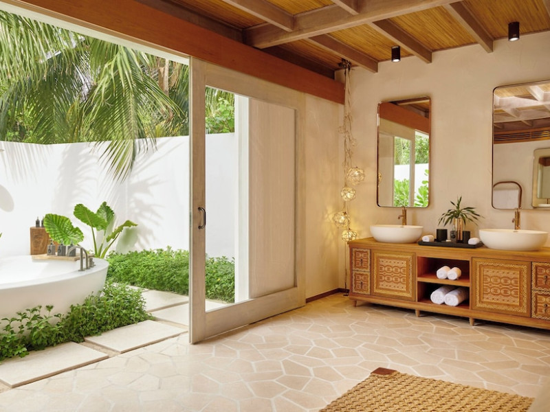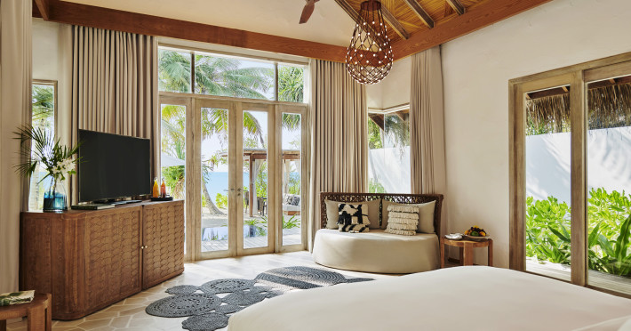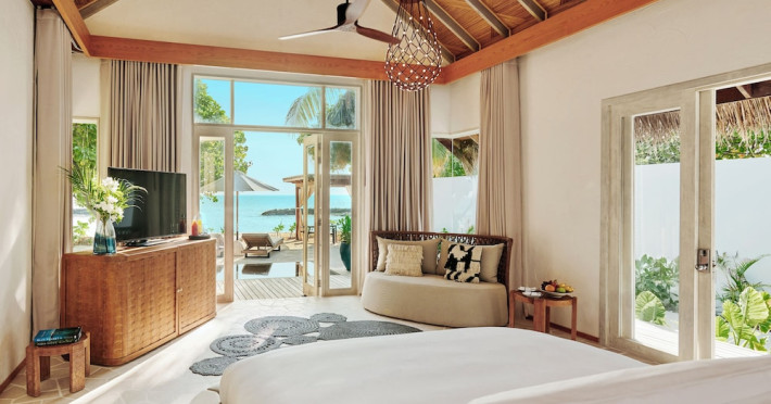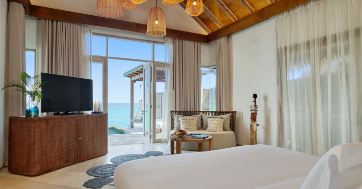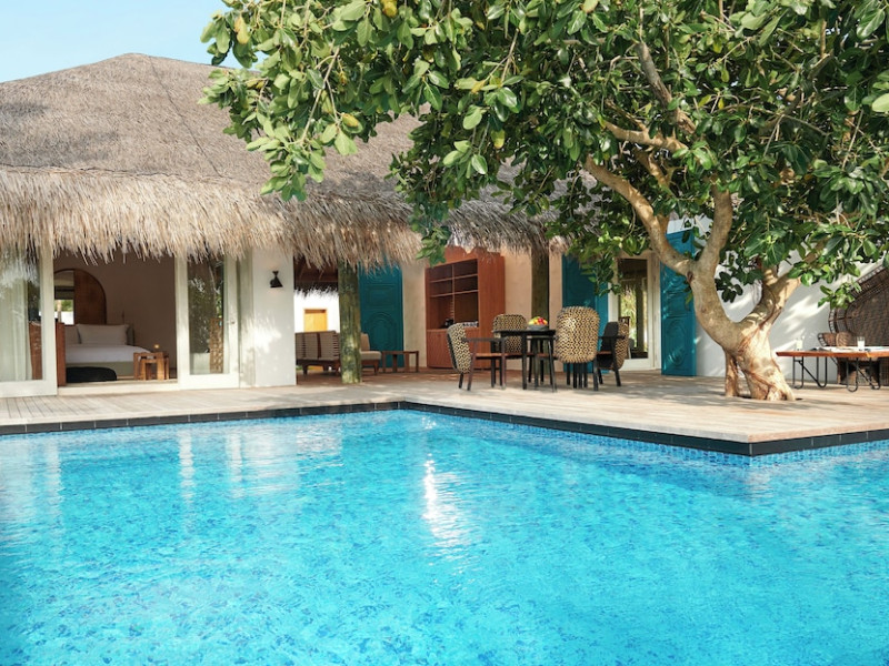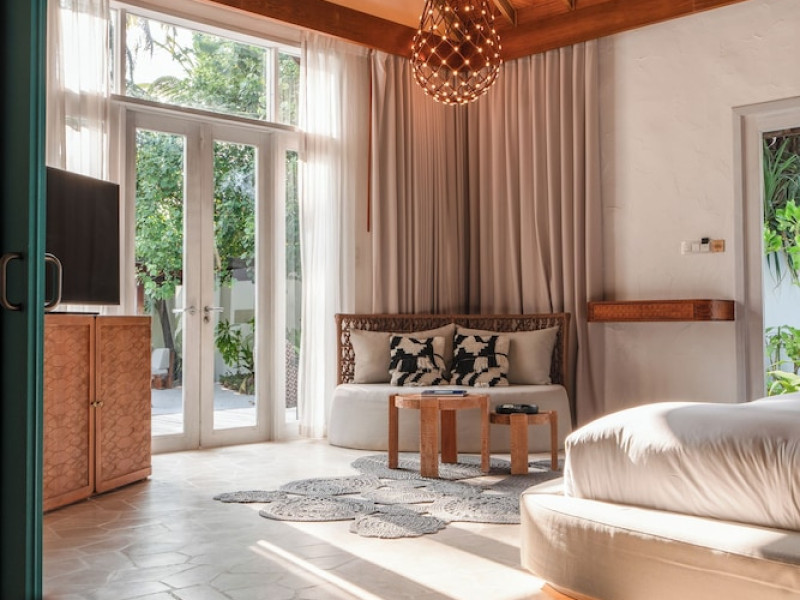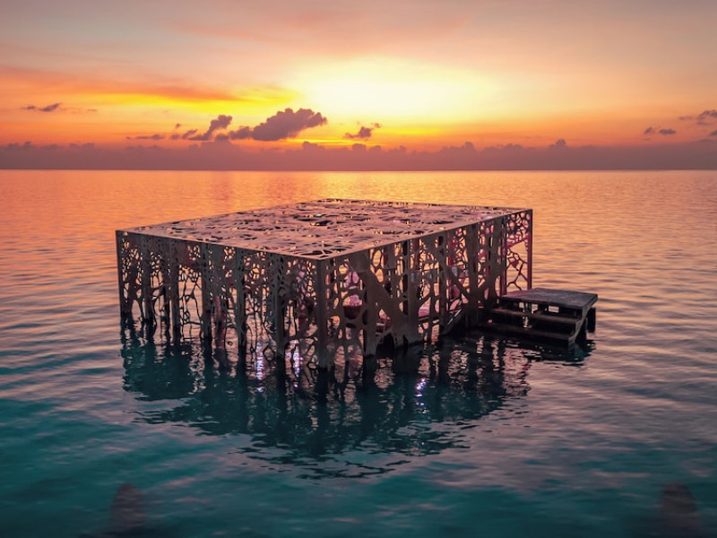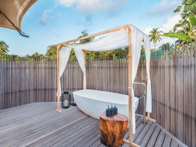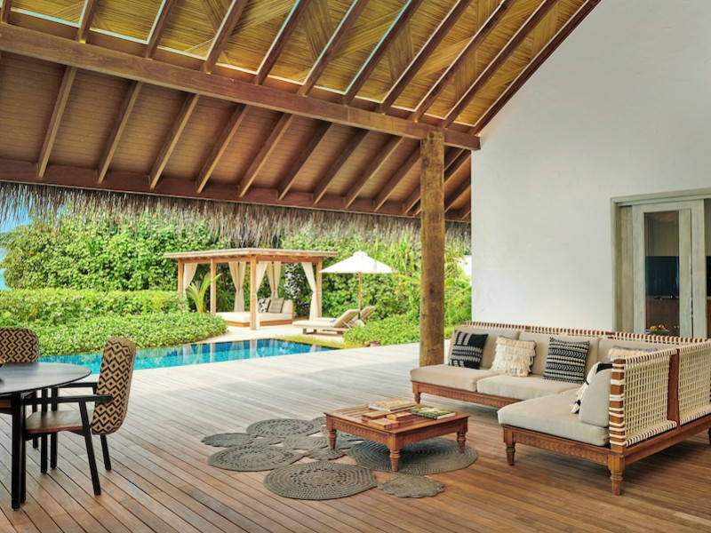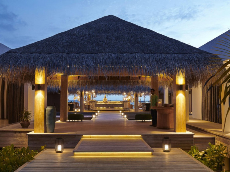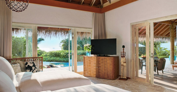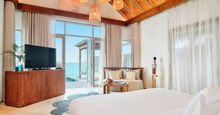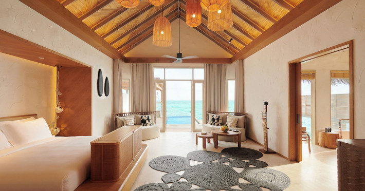 Sirru Fen Fushi Private Lagoon, meaning "Secret Water Island," is a 120-villa luxury resort in Shaviyani Atoll, approximately 230 km north of Malé. This 16-hectare island boasts one of the Maldives' largest lagoons and features a unique underwater sculpture park by Jason deCaires Taylor and a 9km house reef. The resort offers all-inclusive rates (some exclusions apply), three restaurants (including Raha, serving international cuisine), room service (limited hours), a bar/lounge, beach bar, and poolside bar. Amenities include four outdoor pools, five hot tubs, a private beach, a spa, complimentary Wi-Fi, concierge services, babysitting (surcharge), a business center, and complimentary newspapers. Guestrooms feature private plunge pools, flat-screen TVs, private balconies or patios, and private bathrooms with separate bathtubs and showers. Transfer is via a 55-minute seaplane ride from Malé, or via domestic flight to Hanimaadhoo Airport. The preferred airport is Velana Intl. Airport (MLE). The Sirru Fen Fushi Private Lagoon Resort is a hotel.
