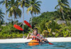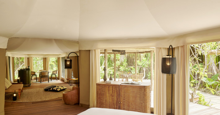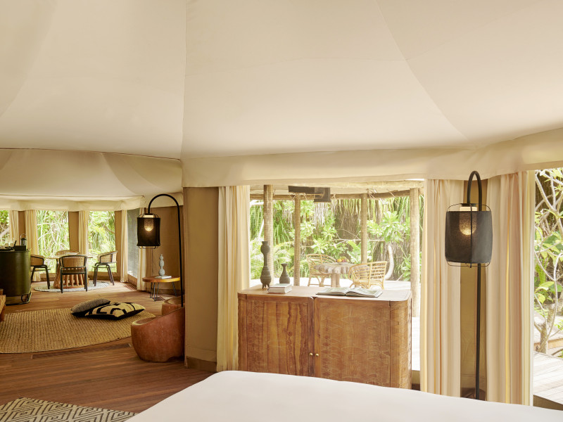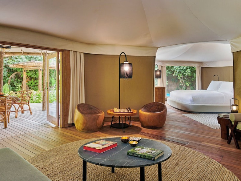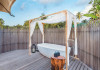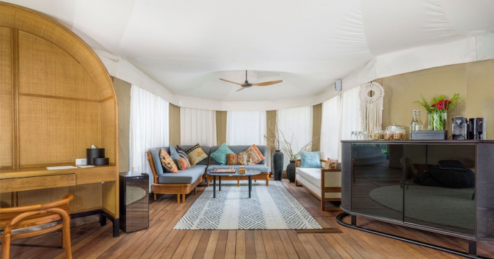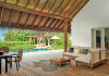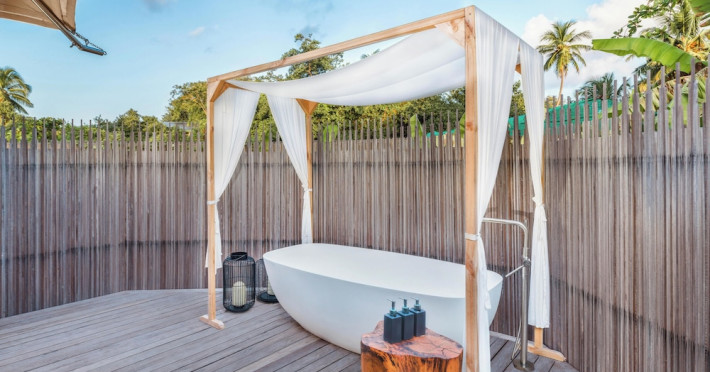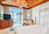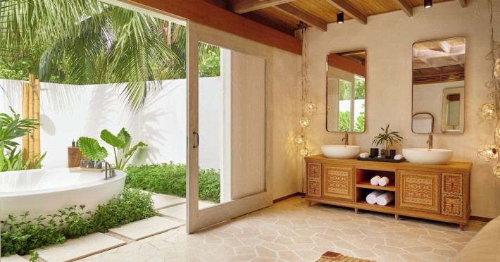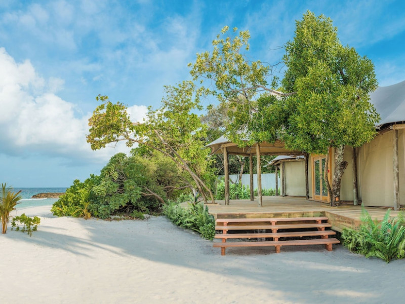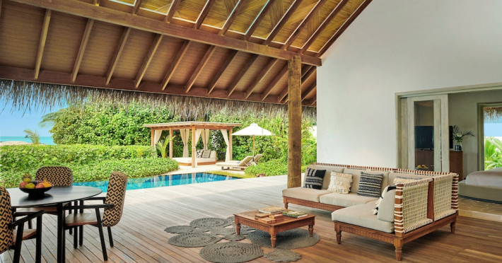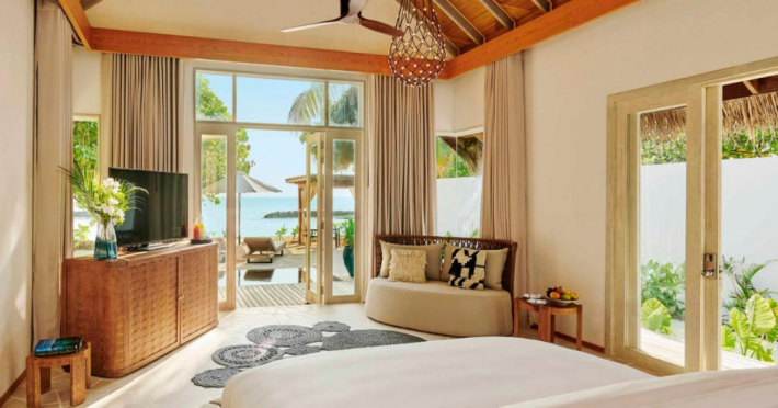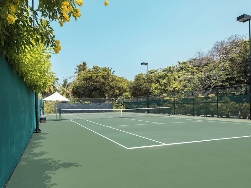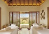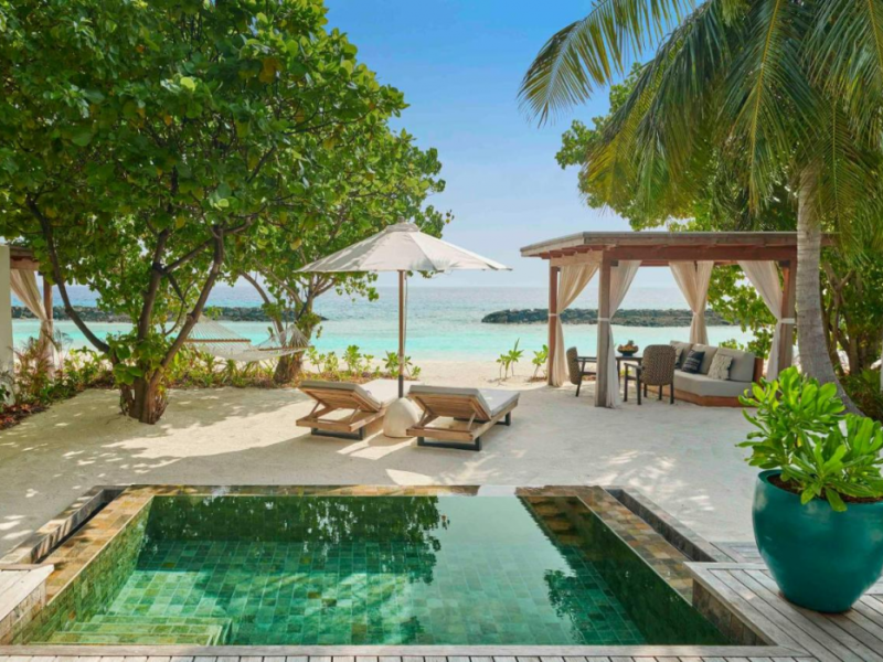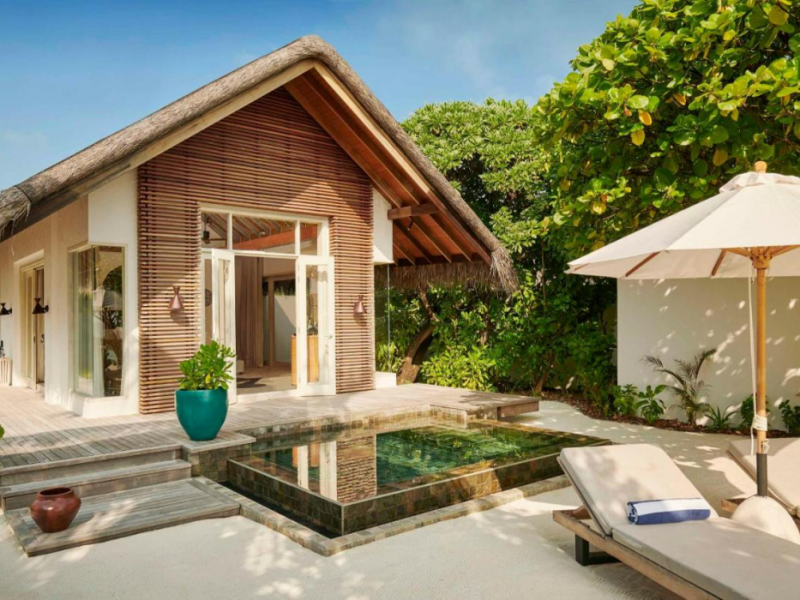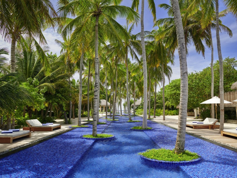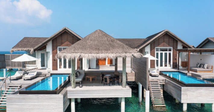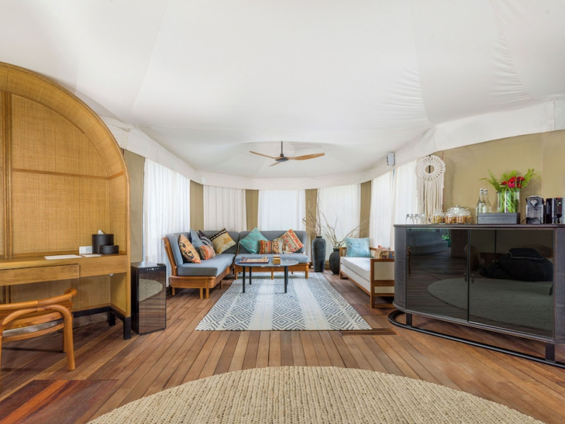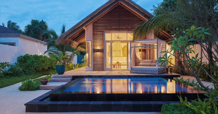Sirru Fen Fushi Private Lagoon, meaning "Secret Water Island," is a 120-villa luxury resort in Shaviyani Atoll, approximately 230 km north of Malé. This 16-hectare island boasts one of the Maldives' largest lagoons and features a unique underwater sculpture park by Jason deCaires Taylor and a 9km house reef. The resort offers all-inclusive rates (some exclusions apply), three restaurants (including Raha, serving international cuisine), room service (limited hours), a bar/lounge, beach bar, and poolside bar. Amenities include four outdoor pools, five hot tubs, a private beach, a spa, complimentary Wi-Fi, concierge services, babysitting (surcharge), a business center, and complimentary newspapers. Guestrooms feature private plunge pools, flat-screen TVs, private balconies or patios, and private bathrooms with separate bathtubs and showers. Transfer is via a 55-minute seaplane ride from Malé, or via domestic flight to Hanimaadhoo Airport. The preferred airport is Velana Intl. Airport (MLE). The Sirru Fen Fushi Private Lagoon Resort is a hotel.
