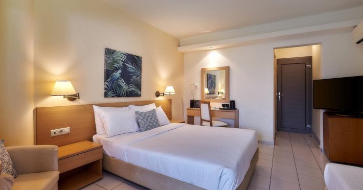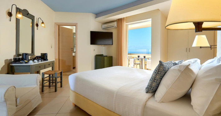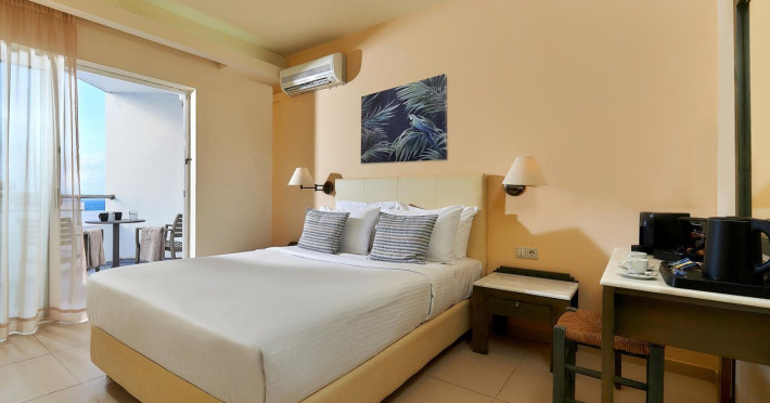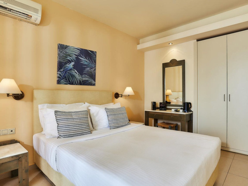 Facilities and services include a 24-hour front desk, a lobby, Wi-Fi access, car parking, a pool-beach snack bar, a restaurant, meeting rooms, a garden, massage treatment (on request, extra charge), and a swimming pool. Sports facilities include table tennis, billiards (extra charge), and beach volleyball.The rooms feature air-conditioning, a TV with cable channels, wireless internet connection, a telephone, a bathroom, a hairdryer, towels, bathrobes and bed linen, coffee/tea-making facilities, a mini fridge, room service (extra charge), a safety deposit box, and balcony/terrace. Baby cot (on request).Address: Sissi, Lasithi, 72400, Greece.