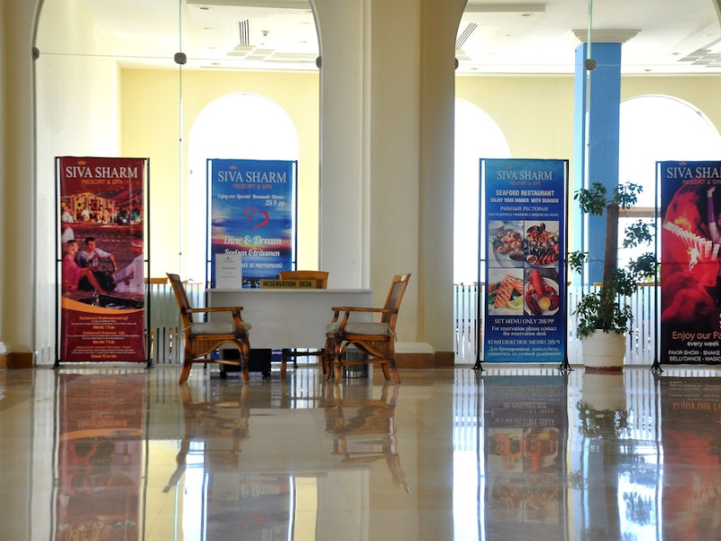 Located on Shark's Bay, north of Sharm el-Sheikh, this air-conditioned beach hotel offers a range of facilities for comfort and relaxation. It features restaurants, a lobby bar with a piano, a large lobby with 24-hour reception and check-out service, a hotel safe, currency exchange, and lift access. Additional amenities include a newspaper stand, hairdressing salon, auditorium, games room, children's playground, kids' club, café, bar, and conference facilities. For a fee, guests can access wireless Internet, room service, and laundry service. A car park is also available. All rooms are en suite with a shower and bath, a double or king-size bed, satellite/cable TV, Internet access, hairdryer, direct dial telephone, ironing set, safe, minibar, tea and coffee making facilities, individually regulated air conditioning, and individually regulated heating. Each room has a balcony or terrace. The Siva Sharm Resort and Spa is a Tourist hotel. The nightlife/restaurants are located in the hotel.