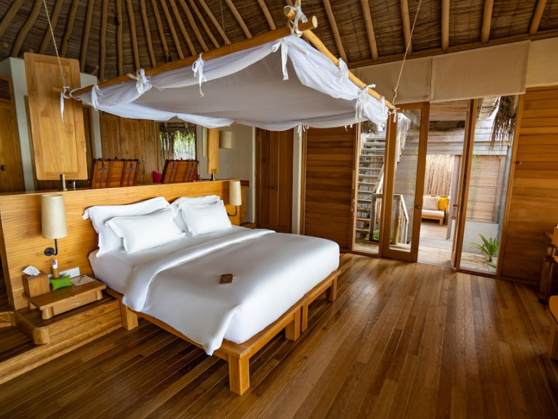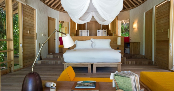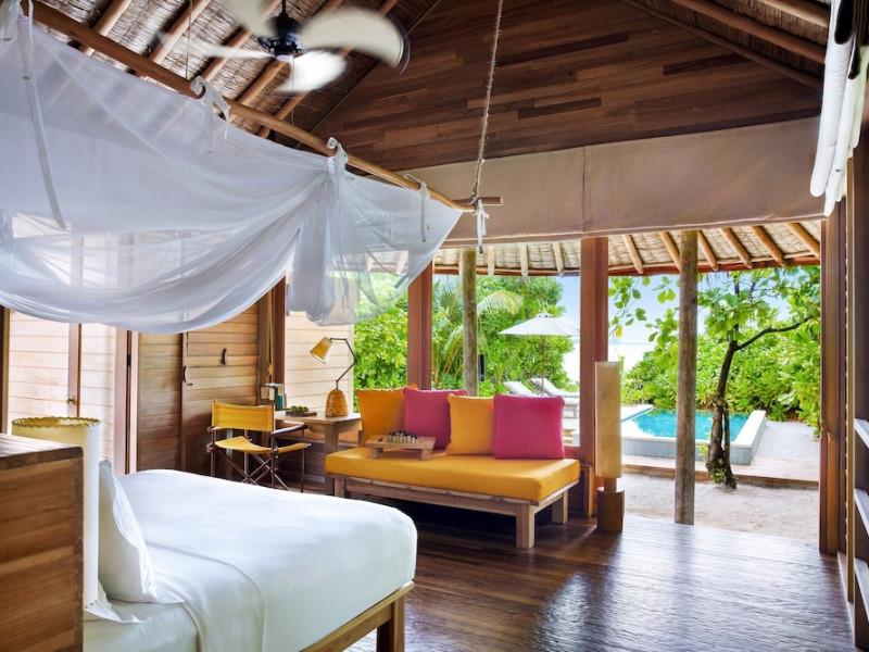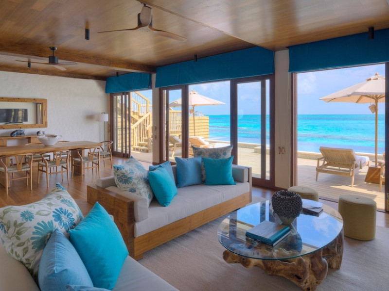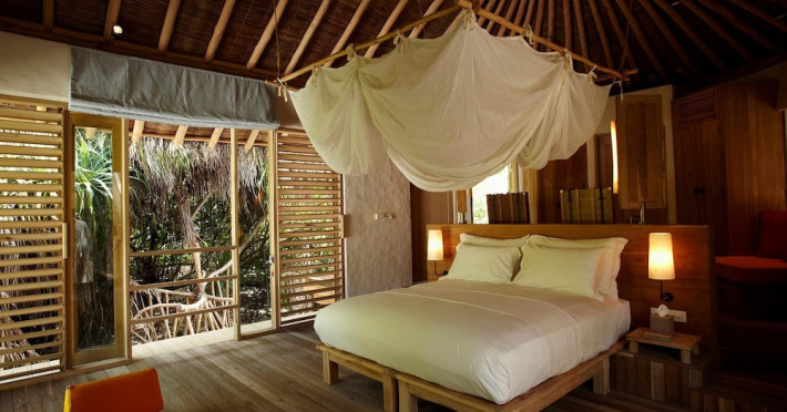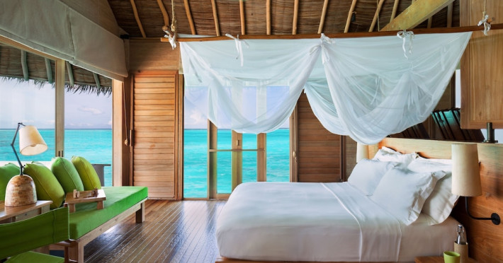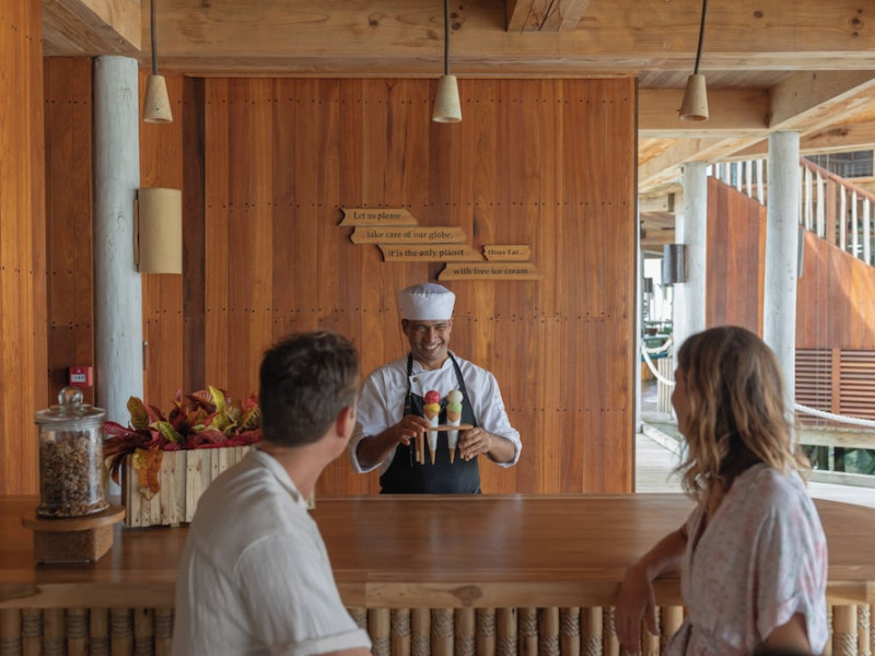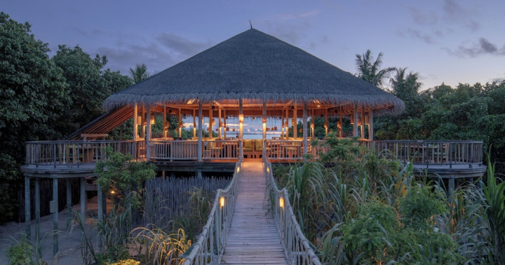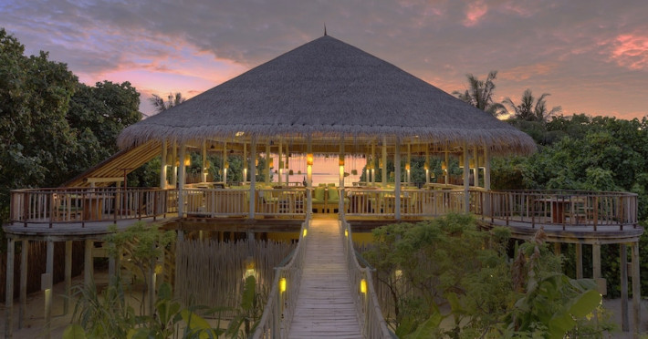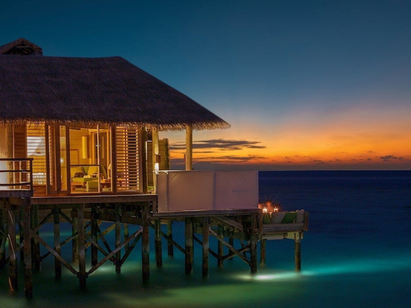 Six Senses Laamu is a luxury resort located on an island in the Laamu atoll, offering private villas on land and over water. Each villa is designed to complement the natural surroundings of lush tropical foliage, white sand, and turquoise water. On-site amenities include a full-service spa offering Ayurvedic treatments, a health club, and a sauna. Dining options include Leaf, featuring locally sourced Mediterranean cuisine; Zen, serving sushi and sashimi; and Longitude, offering an eclectic international menu. Additional amenities include complimentary Wi-Fi, concierge services, babysitting (surcharge), room service (limited hours), a bar/lounge, a poolside bar, a business center, and express check-out. Recreational activities include snorkeling, diving in the coral reef, and surfing the Yin Yang wave. The resort is approximately 163.8 miles from Velana International Airport (MLE), and a roundtrip airport shuttle is available for a surcharge. Guestrooms feature refrigerators, iPod docking stations, pillowtop beds with Egyptian cotton sheets, 37-inch flat-screen TVs with satellite programming, and bathrooms with separate bathtubs and showers. The Six Senses Laamu is a Beach Resort, Diving Resort, Honeymoon, Spa Resort, Tourist hotel. The nightlife/restaurants are located in the hotel.