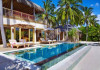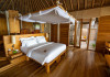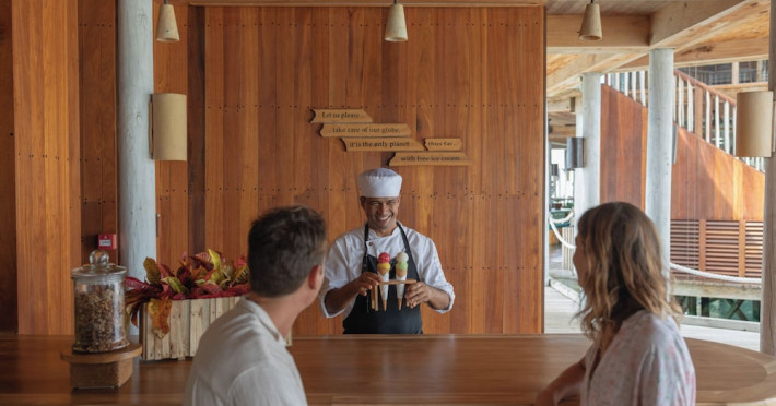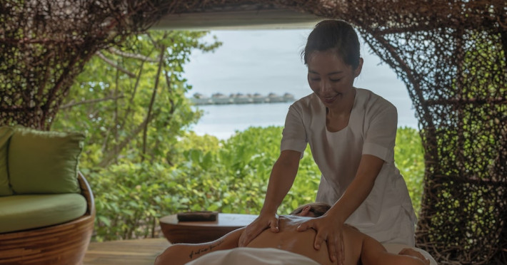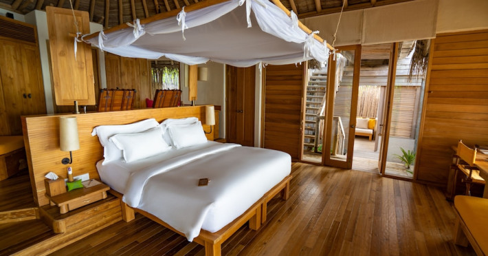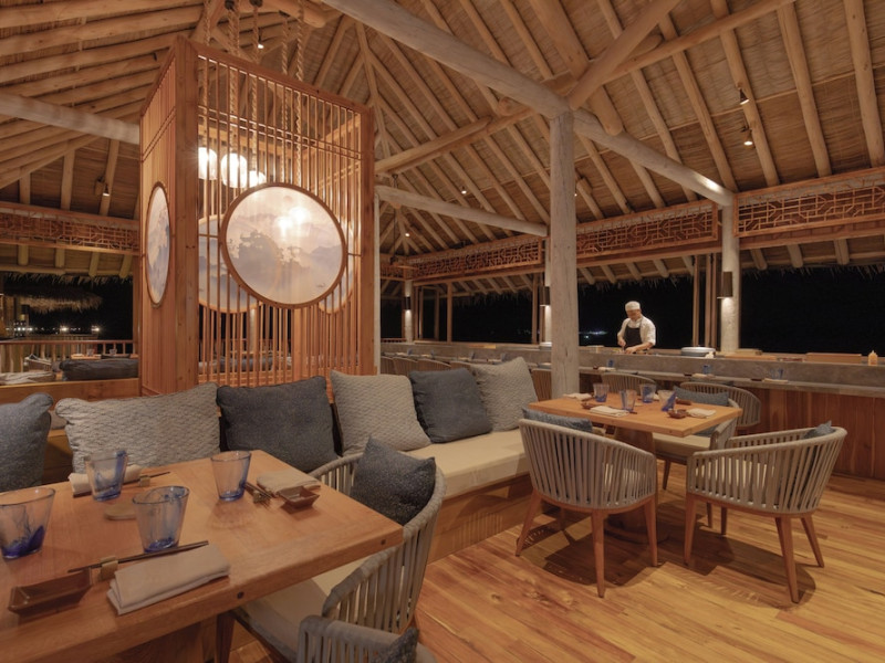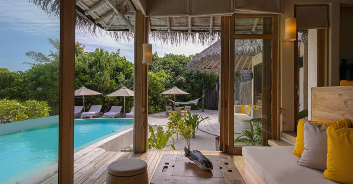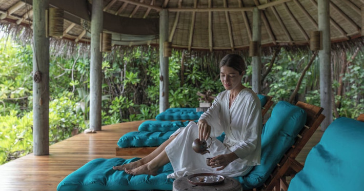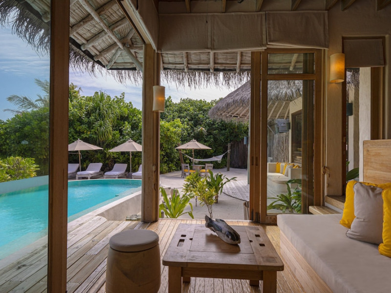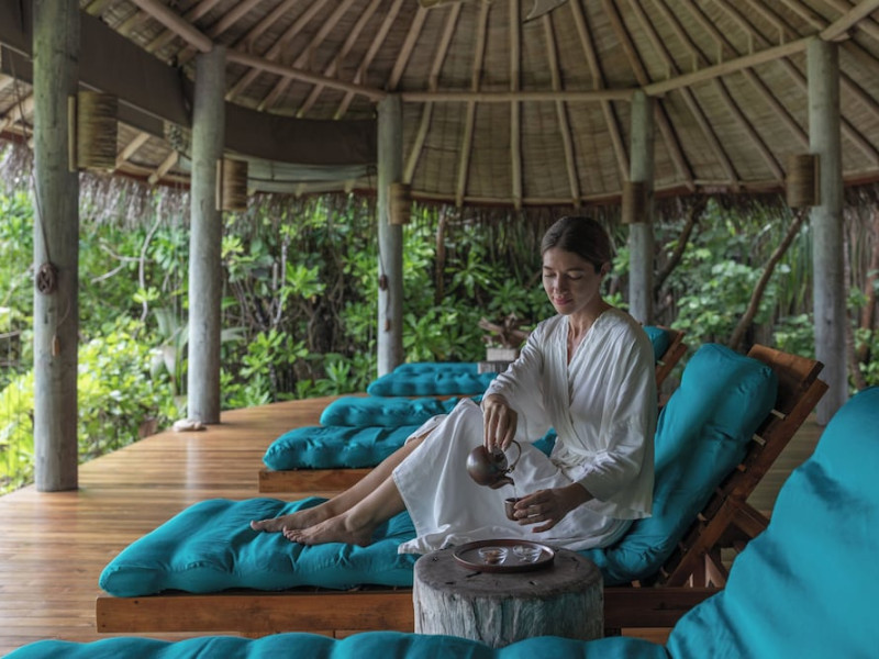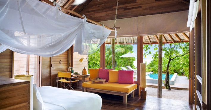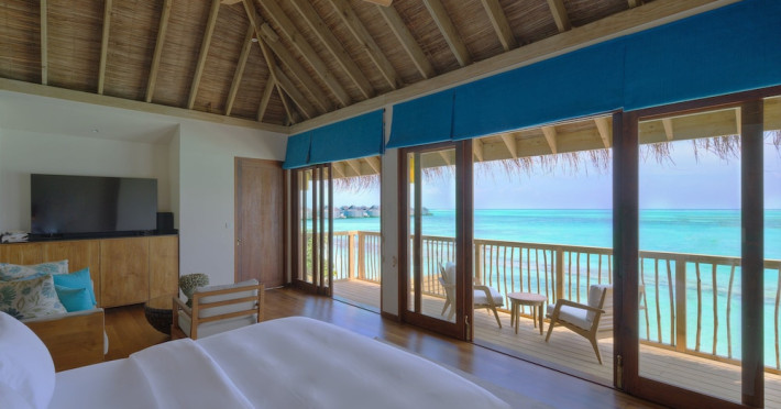 Six Senses Laamu is a luxury resort located on an island in the Laamu atoll, offering private villas on land and over water. Each villa is designed to complement the natural surroundings of lush tropical foliage, white sand, and turquoise water. On-site amenities include a full-service spa offering Ayurvedic treatments, a health club, and a sauna. Dining options include Leaf, featuring locally sourced Mediterranean cuisine; Zen, serving sushi and sashimi; and Longitude, offering an eclectic international menu. Additional amenities include complimentary Wi-Fi, concierge services, babysitting (surcharge), room service (limited hours), a bar/lounge, a poolside bar, a business center, and express check-out. Recreational activities include snorkeling, diving in the coral reef, and surfing the Yin Yang wave. The resort is approximately 163.8 miles from Velana International Airport (MLE), and a roundtrip airport shuttle is available for a surcharge. Guestrooms feature refrigerators, iPod docking stations, pillowtop beds with Egyptian cotton sheets, 37-inch flat-screen TVs with satellite programming, and bathrooms with separate bathtubs and showers. The Six Senses Laamu is a Beach Resort, Diving Resort, Honeymoon, Spa Resort, Tourist hotel. The nightlife/restaurants are located in the hotel.