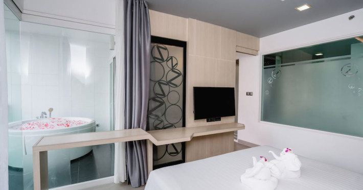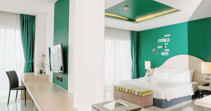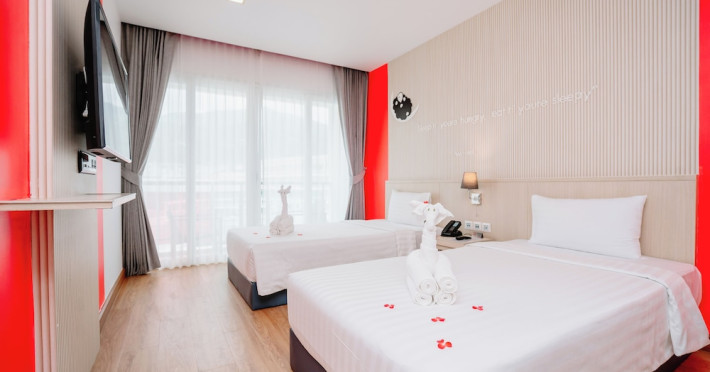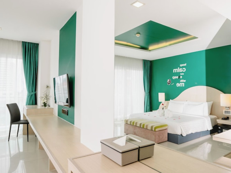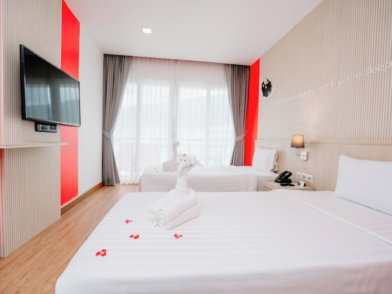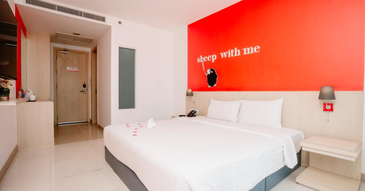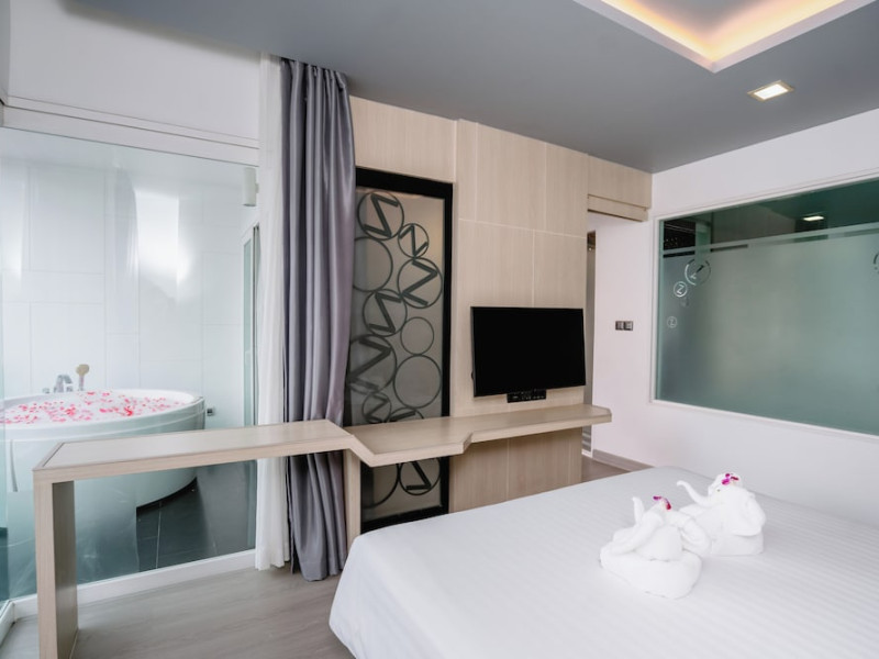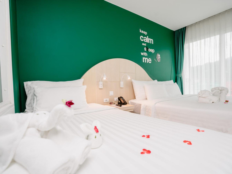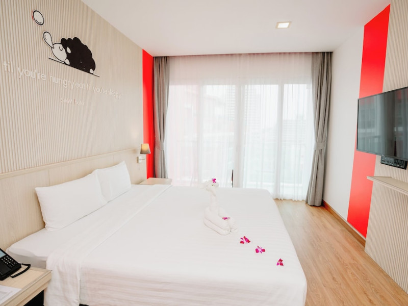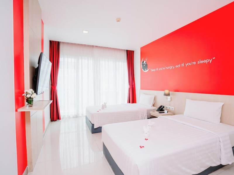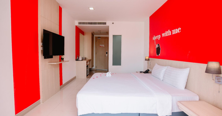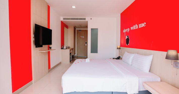 Sleep With Me Hotel, a stylish design hotel centrally located in Patong, is within a 10-minute walk of Patong Beach and Jungceylon Shopping Center. The hotel offers modern, air-conditioned rooms with private balconies, flat-screen satellite TVs, refrigerators, and safety deposit boxes. Bathrooms include complimentary toiletries. Guests can enjoy an outdoor pool, sauna, hot tub, on-site dining at Sa Bai With Me (serving international cuisine), and other dining options including a poolside bar and two bars/lounges. Free Wi-Fi is available in public areas. The hotel provides a 24-hour front desk, tour desk, concierge service, luggage storage, meeting facilities, and on-site parking. Additional amenities include laundry services, room service, and a designated smoking area. Airport transfers, taxi and car hire services are available for a surcharge. The Sleep With Me Design Hotel at Patong is a Leisure, Tourist hotel. The nightlife/restaurants are within walking distance from the hotel.