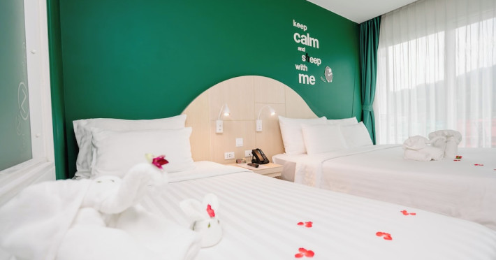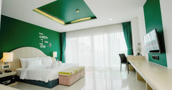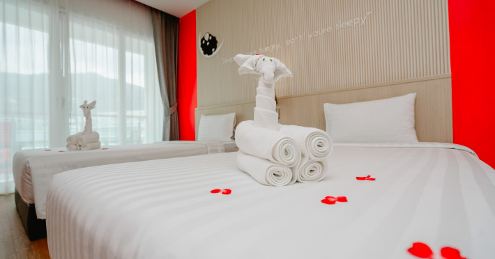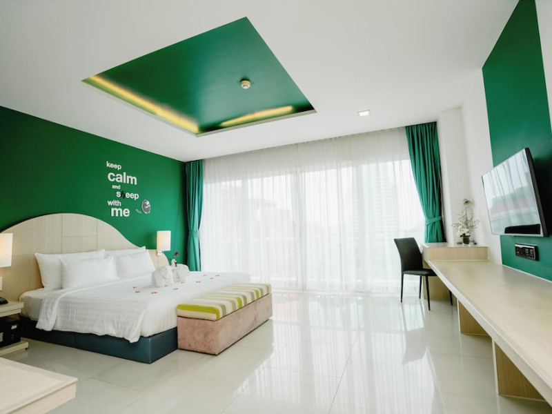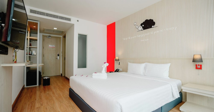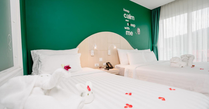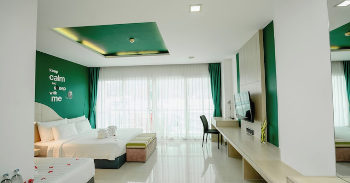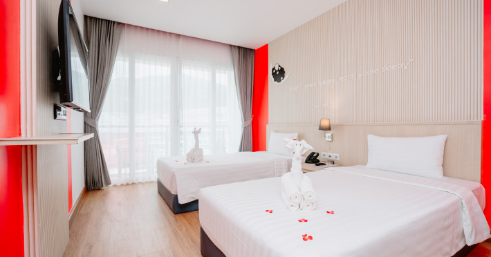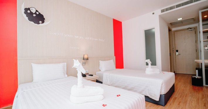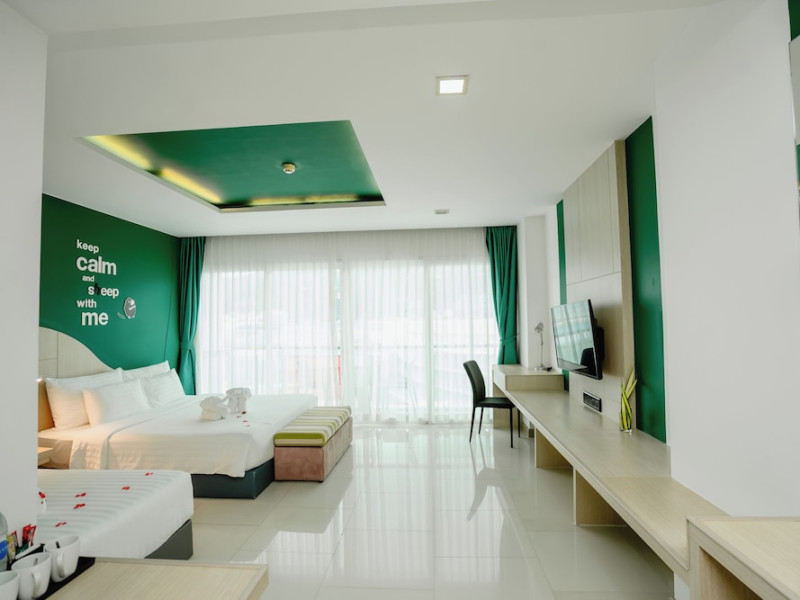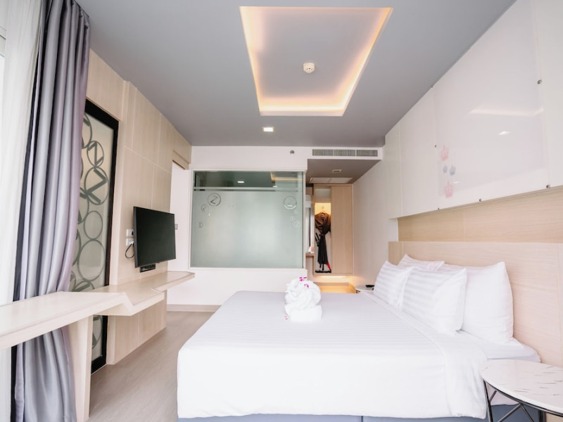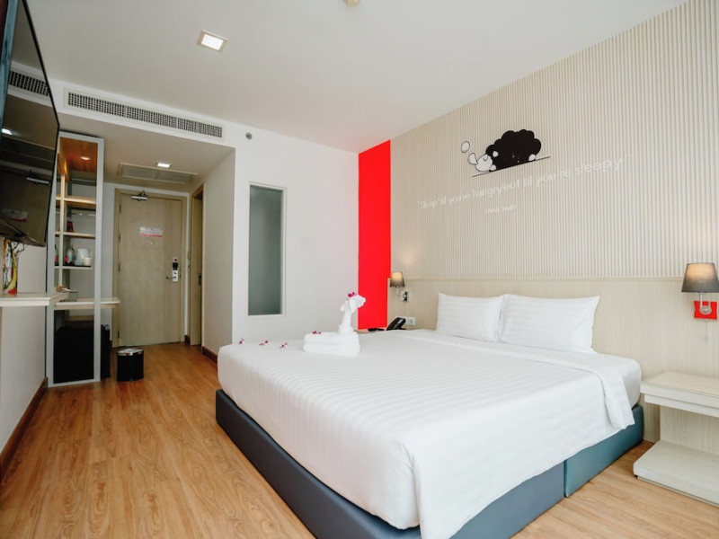 Sleep With Me Hotel, a stylish design hotel centrally located in Patong, is within a 10-minute walk of Patong Beach and Jungceylon Shopping Center. The hotel offers modern, air-conditioned rooms with private balconies, flat-screen satellite TVs, refrigerators, and safety deposit boxes. Bathrooms include complimentary toiletries. Guests can enjoy an outdoor pool, sauna, hot tub, on-site dining at Sa Bai With Me (serving international cuisine), and other dining options including a poolside bar and two bars/lounges. Free Wi-Fi is available in public areas. The hotel provides a 24-hour front desk, tour desk, concierge service, luggage storage, meeting facilities, and on-site parking. Additional amenities include laundry services, room service, and a designated smoking area. Airport transfers, taxi and car hire services are available for a surcharge. The Sleep With Me Design Hotel at Patong is a Leisure, Tourist hotel. The nightlife/restaurants are within walking distance from the hotel.