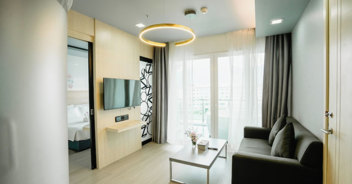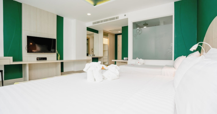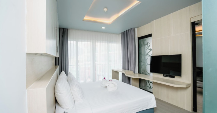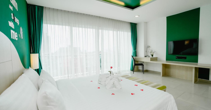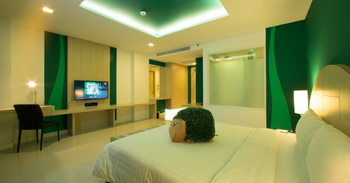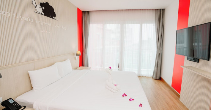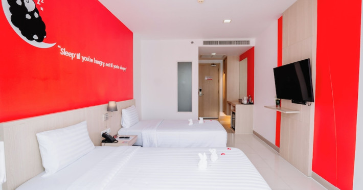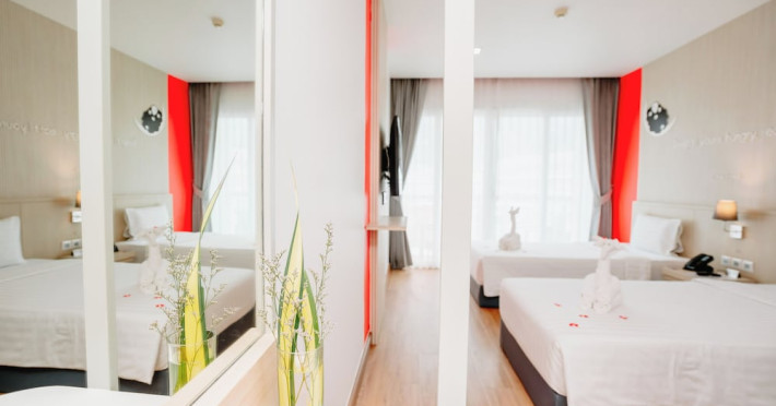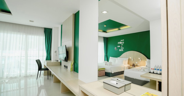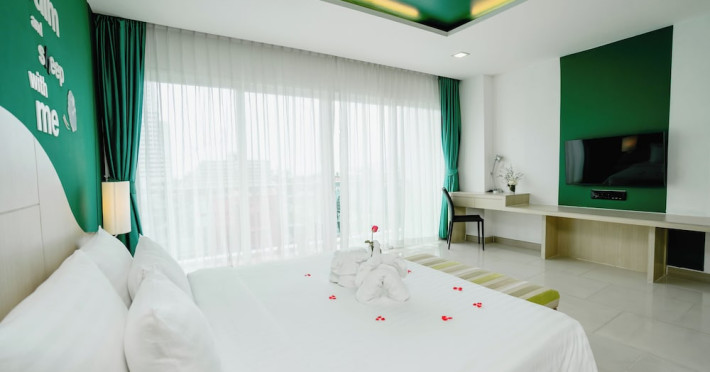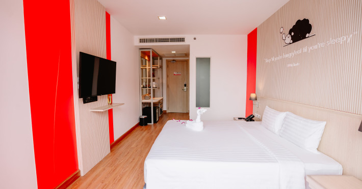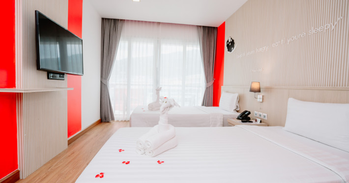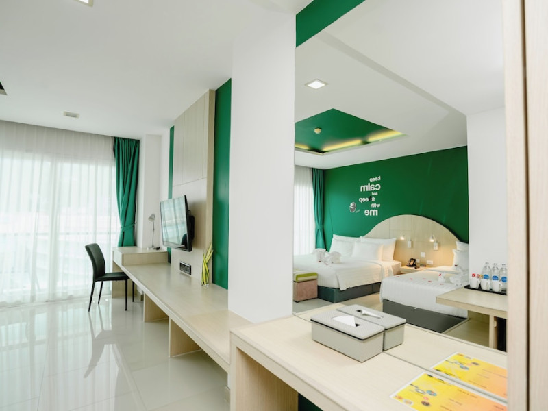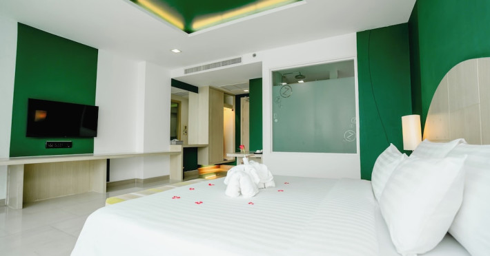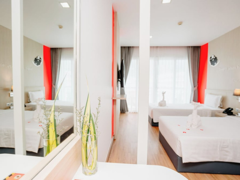 Sleep With Me Hotel, a stylish design hotel centrally located in Patong, is within a 10-minute walk of Patong Beach and Jungceylon Shopping Center. The hotel offers modern, air-conditioned rooms with private balconies, flat-screen satellite TVs, refrigerators, and safety deposit boxes. Bathrooms include complimentary toiletries. Guests can enjoy an outdoor pool, sauna, hot tub, on-site dining at Sa Bai With Me (serving international cuisine), and other dining options including a poolside bar and two bars/lounges. Free Wi-Fi is available in public areas. The hotel provides a 24-hour front desk, tour desk, concierge service, luggage storage, meeting facilities, and on-site parking. Additional amenities include laundry services, room service, and a designated smoking area. Airport transfers, taxi and car hire services are available for a surcharge. The Sleep With Me Design Hotel at Patong is a Leisure, Tourist hotel. The nightlife/restaurants are within walking distance from the hotel.