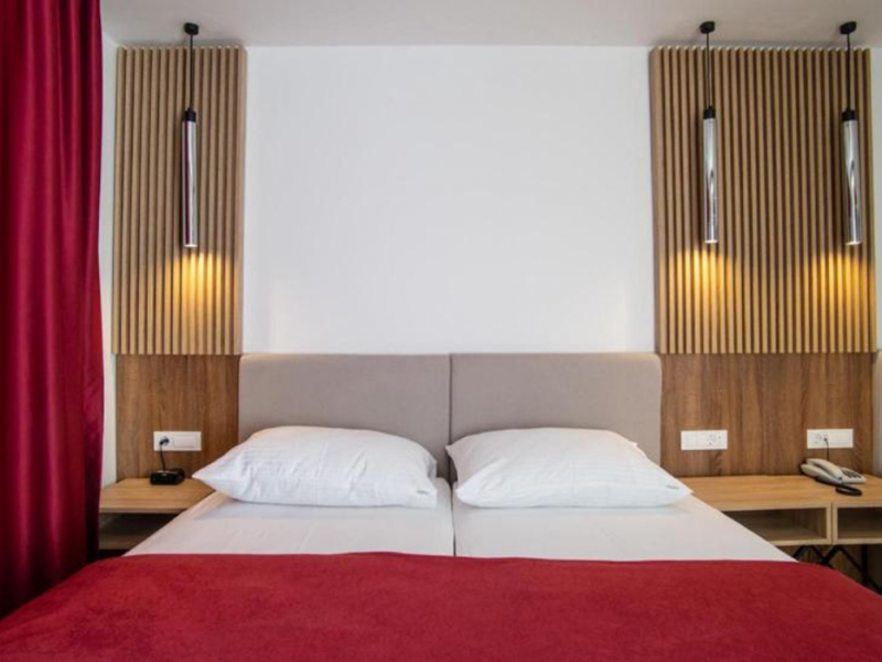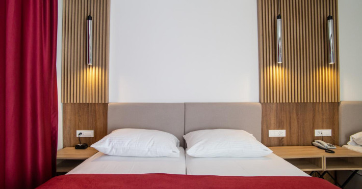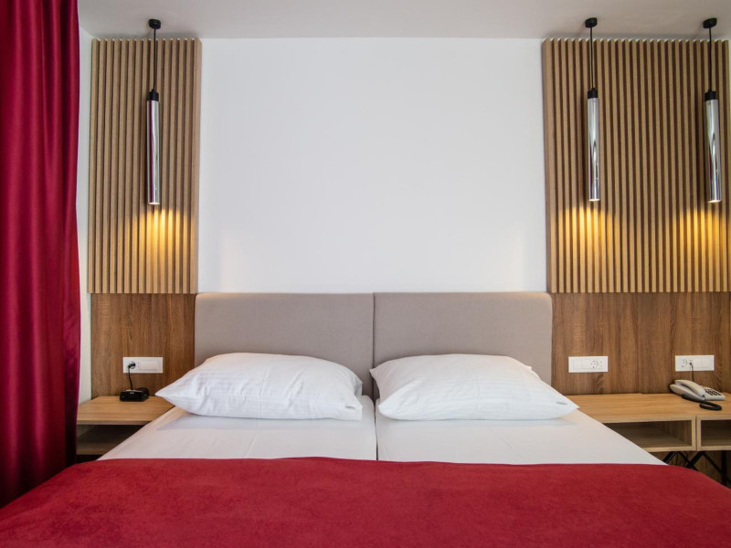 Hotel Slovenska Plaža Lux is located next to Slovenska Beach in Budva and features outdoor swimming pools and a tennis court. It offers free wired internet. All rooms include a flat-screen TV with cable channels, a fridge, a work desk, and a private bathroom with a shower and a hairdryer. Some units have a balcony. The property has various bars and restaurants, offering options such as fresh pastry and fish specialities. Aerobic classes, a belly dancing school, and a children's playground are available. Budva's Old Town is a 10-minute walk away. Sv. Stefan is 9 km away, and the UNESCO-protected town of Kotor and Tivat Airport are 20 km away. The Slovenska Plaza 4 is a hotel.