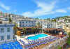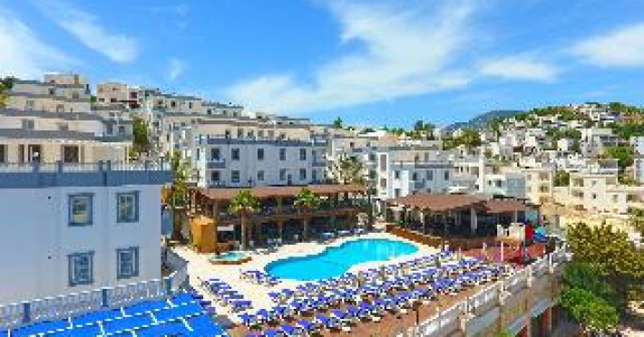 Overview: Units include 9 junior suites located in a 6-storey main building and a 3-storey auxiliary building. English-speaking staff at the reception desk in the lobby are ready to assist you with check-in and check-out. Amenities include a cloakroom, baggage storage service, safe, currency exchange service and drinks machine. Wireless internet access is provided in public areas. The tour desk offers assistance with booking excursions. The resort has a range of facilities for guests with disabilities. The complex has wheelchair-accessible facilities and a lift. A number of shops, including a supermarket, are great for shopping or just browsing. The grounds of the resort feature a playground and a lovely garden. Additional amenities include a newspaper stand, a TV room and a playroom. Guests arriving by car can park their vehicles in the garage or in the car park. Further services and facilities include a 24-hour security service, a babysitting service, a car hire service, medical assistance, a transfer service, room service (for a fee), a laundry service, a hairdresser, a coin-operated laundry and a hotel shuttle bus. A bicycle hire service provides all the necessary equipment for exploring the surrounding area. A fax machine is available for guests business needs. Location: This apartment hotel is located on the Bodrum Peninsula in the village of Gümbet. The beach is only 100 m away, Gümbet centre is within walking distance and it is 3 km to Bodrum centre. Right in front of the resort, guests will find many water sports opportunities. MuÄla is 15 km away and Bodrum Airport is just 33 km from the property. LeisureFacilities: Whether more active or in need of rest and relaxation, guests can unwind at the pool complex, which includes a childrens area and a total of 3 swimming pools. A waterslide and a refreshing drink at the poolside snack bar offer the perfect way to unwind. A short break or an entire afternoon on the sun terrace, which features sun loungers and parasols, is time well spent. For guests who wish to keep active, cycling/mountain biking, fishing and horse riding are available. With windsurfing, canoeing, snorkelling and diving available, fans of water sports will have plenty to choose from. Guests can enjoy a wide range of indoor sports, including a gym, table tennis, billiards, darts and aerobics. There is a wellness area with a spa, a sauna, a hammam and a solarium. Subject to charge: massage treatments. Leisure facilities include an entertainment programme, a kids club, a dance club and a casino. Copyright GIATA 2004 - 2025. Multilingual, powered by www.giata.com for client no. 124567 Rooms: Air conditioning and central heating ensure that rooms maintain comfortable temperatures. Most of rooms include a balcony or terrace as a standard feature. All rooms are carpeted and include a double bed or a king-size bed. Extra beds can be requested. A safe, a minibar and a desk are also available. Additional features include a refrigerator and a mini fridge. A direct dial telephone, a television with satellite/cable channels and WiFi (no extra charge) provide all the essentials for a comfortable holiday. Guests can take advantage of the nightly turndown service. Bathrooms are equipped with a shower and a bathtub, as well as a hairdryer. For extra comfort in the bathrooms, guests are offered cosmetic products. Wheelchair-friendly rooms can be booked. The resort has family rooms and non-smoking rooms. RestaurantsAndBars: Dining facilities include a café, a bar and a pub. The restaurant has air conditioning and high chairs for children. All-inclusive can be booked. Breakfast, lunch and dinner are available. Staff are also happy to provide childrens meals. The resort also offers snacks. For guests, alcoholic and non-alcoholic drinks are included.