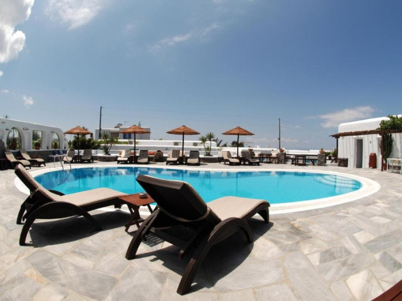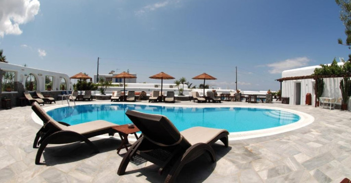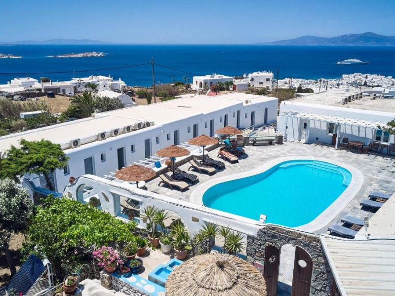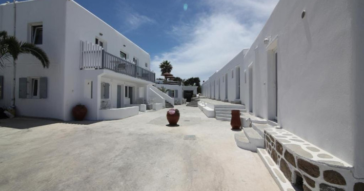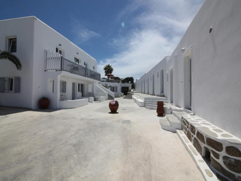 Sofia Village is a small, comfortable hotel, built with special care, offering a pleasant stay and answering all the expectations of a traveler in the Cyclades. The hotel is built on the outskirts of Mykonos town, in the area known as the Fine Arts Schools (400m from the town). Guests may relax in the lovely garden that surrounds the building, other available amenities are a sunny room with veranda, television, ac, safety box, mini fridge and private bathroom. The family atmosphere of Sofia Village and the traditional Mykonian hospitality are bound to leave an enduring impession and pleasant memories.