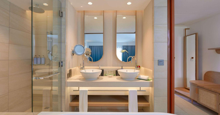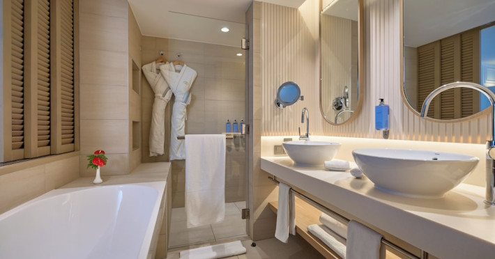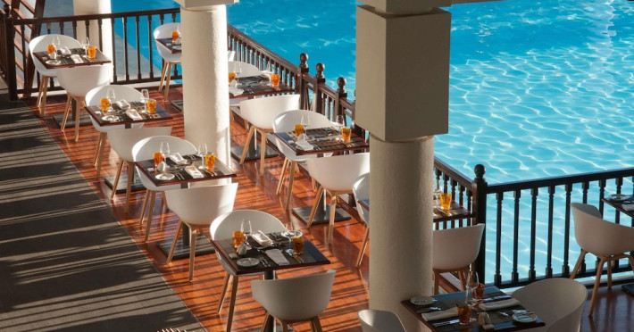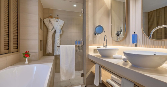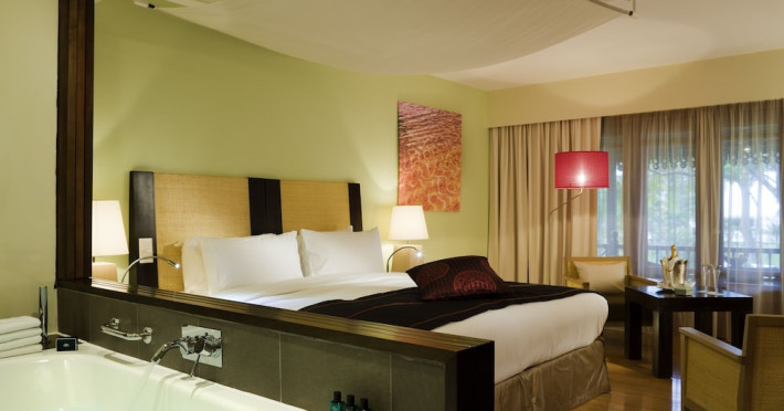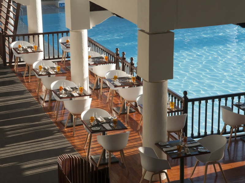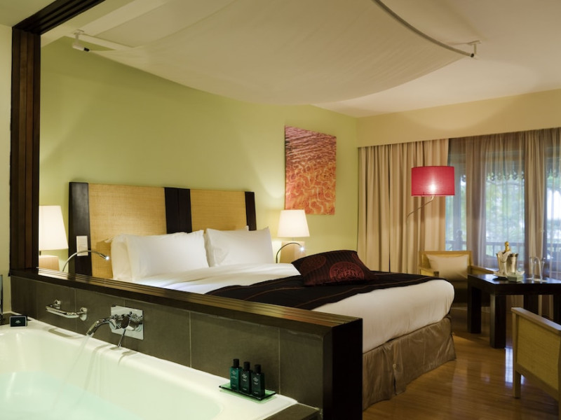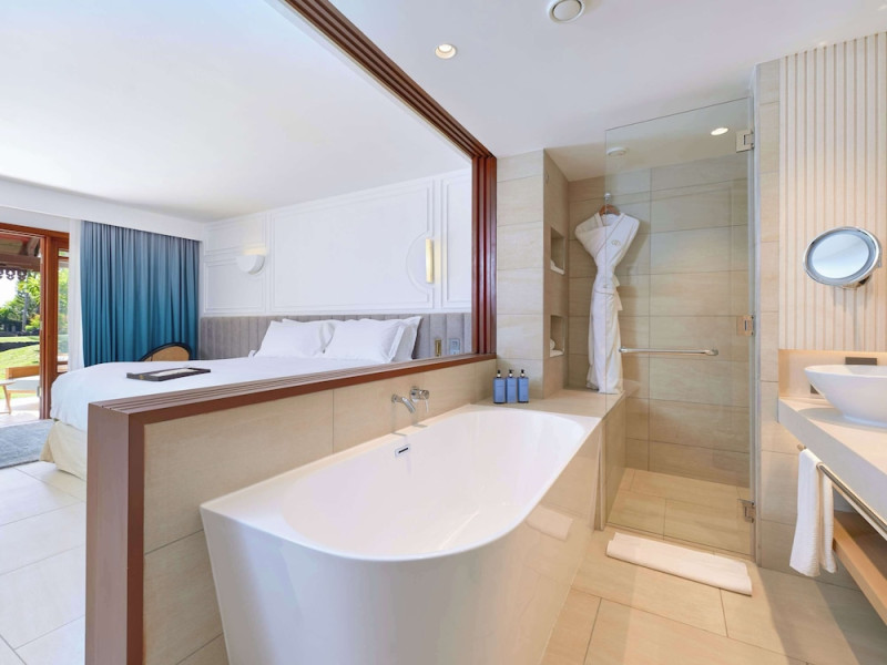 Sofitel Mauritius L'Imperial Resort & Spa, located in Flic-en-Flac (Wolmar), offers a luxurious stay near Tamarin Bay and Wolmar Beach. This 5-star hotel features 191 air-conditioned rooms with minibars, LCD televisions, private furnished balconies or patios, and private bathrooms with separate bathtubs and showers, deep soaking tubs, and designer toiletries. Enjoy complimentary Wi-Fi and satellite programming. The resort boasts a full-service spa offering massages, body treatments, and facials; a private beach; outdoor tennis courts; and an outdoor pool. Dining options include five restaurants, a coffee shop/cafe, and 24-hour room service. Multiple bars are available, including a bar/lounge, beach bar, and poolside bar. A complimentary full breakfast is served daily (times may vary). Amenities include complimentary wired internet access, a business center, express check-in, and free on-site parking. A roundtrip airport shuttle is available for a surcharge. The hotel is approximately 3.3 km from Flic-en-Flac Beach and 7.8 km from Cascavelle Shopping Mall. Note: Renovations are planned from March 10, 2025, to October 15, 2025 (dates subject to change), affecting select guest rooms and one dining venue. Alternative facilities will be available during this period. The resort is nestled in a large tropical garden overlooking the Indian Ocean and features Asian-style architecture. Some rooms offer sea views and private terraces. Nearby attractions include Tamarina Golf Club (approximately 13 km) and Sir Seewoosagur Ramgoolam Intl. Airport (approximately 51 km). The Sofitel Mauritius L Imperial Resort and Spa is a Beach Resort, Business, Child Friendly, Honeymoon, Leisure, Resort, Spa Resort, Tourist hotel. Located in West Coast area. The nightlife/restaurants are located in the hotel.