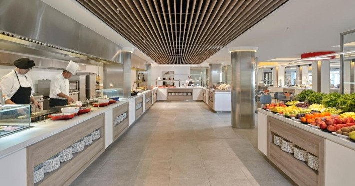 Facilitati hotel: Hotelul dispune de 6 piscine in aer liber pentru adulti, 2 piscine in aer liber pentru copii, 1 piscina incalzita, 2 piscine cu hidromasaj complet echipate. Hotelul dispune de 2 restaurante tip bufet care prezinta show-uri de gatit si un colt de preparate cu specific italienesc, bar la piscina si alte cateva baruri, sezlonguri si umbrele gratuite, centru spa (cu plata), tenis de masa, bowling, teren de tenis (contra cost), sala de jocuri, programe de divertisment si animatie pe timpul zilei si seara, miniclub, spectacole cu muzica live, internet, magazine.