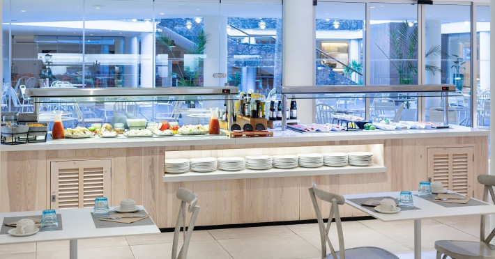 Hotelul dispune de un restaurant, bar la piscina (deschis intre orele 12:00 si 16:00) si bar in hol