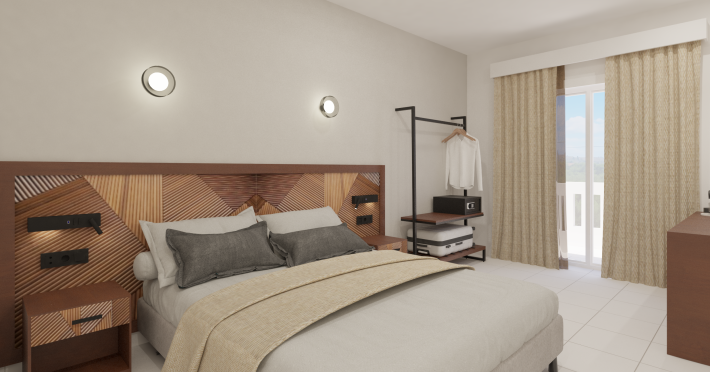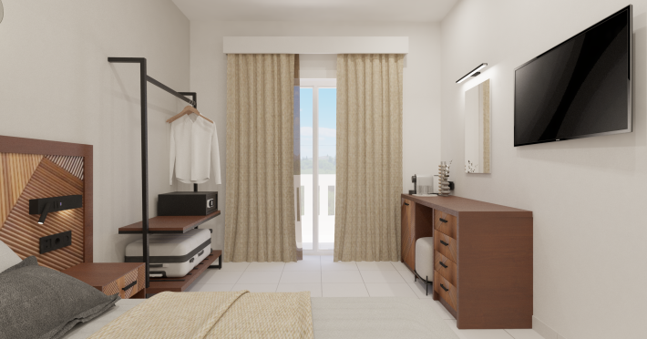 The hotel features 46 rooms, all designed for comfort and style, with daily cleaning and towel service. Linen is changed every other day. Room Types: 30 Double/Twin Rooms – Sleeps up to 2 adults (twin or double beds), 6 Superior Triple Rooms – Sleeps 3 adults (twin + single bed or double bed + sofa bed), 10 Junior Suites (maisonettes) – Sleeps up to 4 adults (twin beds + single beds or double bed + sofa bed).