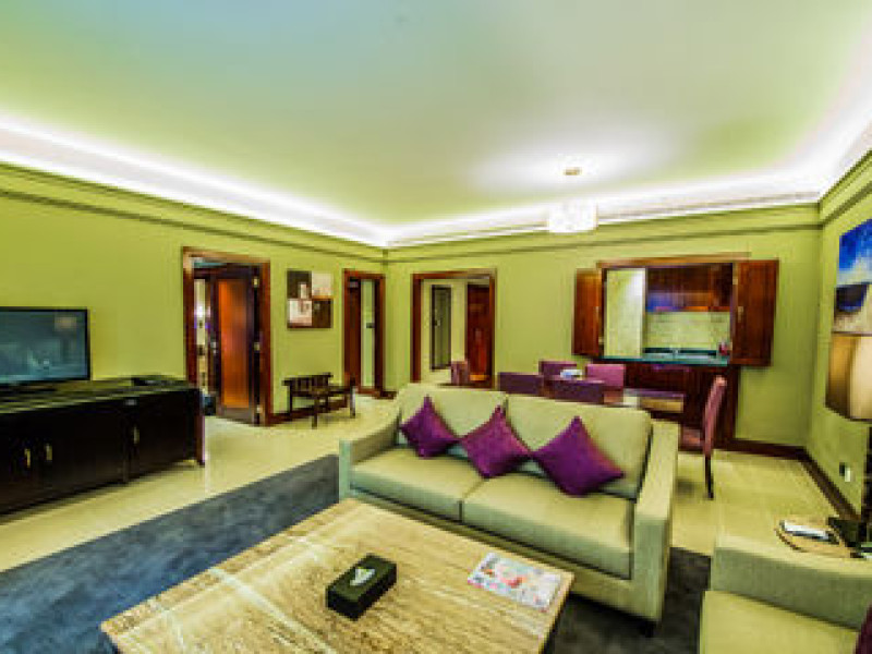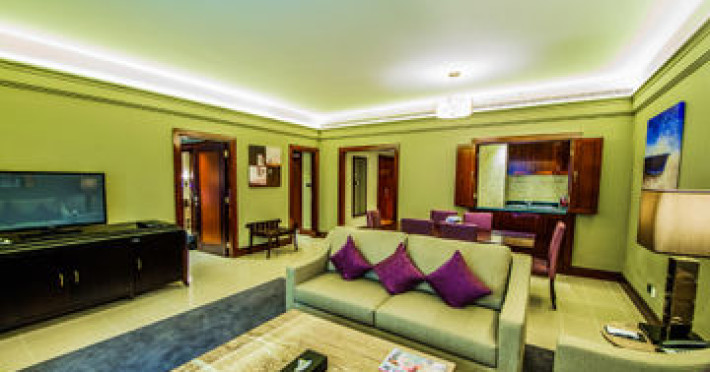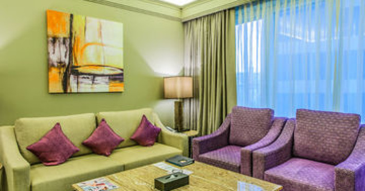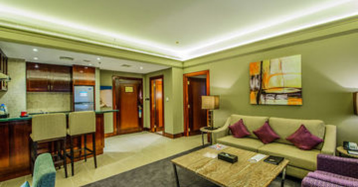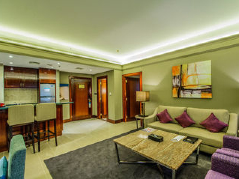 In Dubai (Deira). With a stay at Somewhere Hotel Apartment, youll be centrally located in Dubai, within a 10-minute drive of Gold Souk and Dubai World Trade Centre. This spa hotel is 7.1 mi (11.5 km) from Dubai Mall and 7.4 mi (11.9 km) from Burj Khalifa. Make yourself at home in one of the 106 individually furnished guestrooms, featuring kitchenettes with full-sized refrigerators/freezers and stovetops. 32-inch LED televisions with premium TV channels provide entertainment, while complimentary wireless Internet access keeps you connected. Bathrooms with shower/tub combinations feature deep soaking bathtubs and complimentary toiletries. Conveniences include phones, as well as safes and desks. Grab lunch at Nay Restaurant, a restaurant that specializes in Middle Eastern cuisine. Dining is also available at the coffee shop/cafe, and room service (during limited hours) is provided. Buffet breakfasts are available daily from 6:30 AM to 10:30 AM for a fee. Relax at the full-service spa, where you can enjoy massages. Youre sure to appreciate the recreational amenities, including an outdoor pool, a sauna, and a fitness center. Additional features at this hotel include complimentary wireless Internet access, concierge services, and babysitting (surcharge).