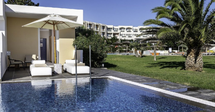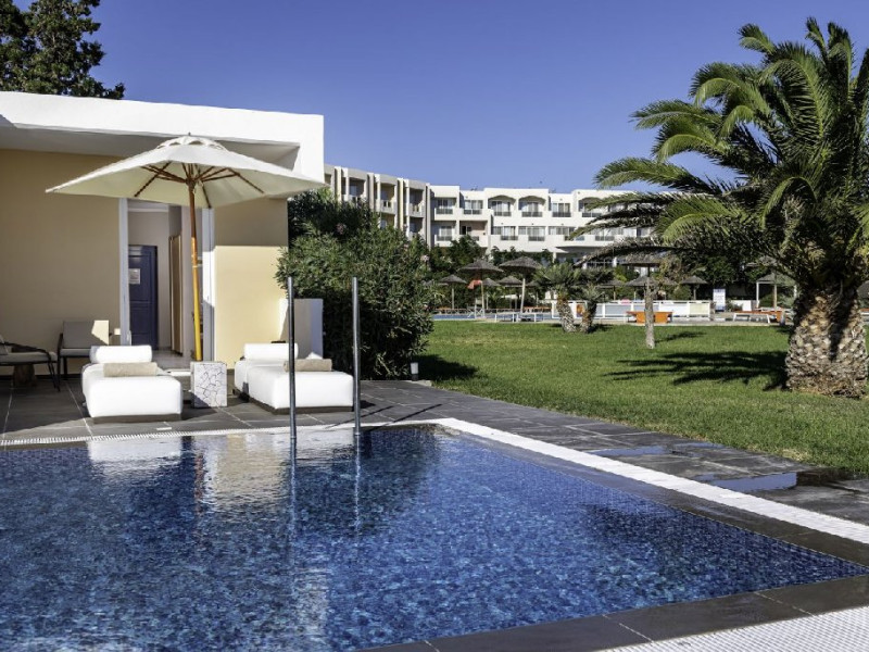 Descriere: Sovereign Beach Hotel este un complex amplasat intr-o zona linistita, chiar pe plaja, in apropierea satului Kardamena, pe insula Kos. Hotelul ofera o atmosfera relaxanta, de tip resort, fiind inconjurat de gradini bine intretinute, cu alei pietruite, copaci si vegetatie mediteraneana. Complexul este format din cladirea principala si bungalow-uri, creand un ambient prietenos, potrivit atat pentru cupluri, cat si pentru familii. Mediul aerisit, facilitatile variate si accesul direct la plaja contribuie la un sejur confortabil si placut. Localizare: Sovereign Beach Hotel este situat pe plaja, intr-o zona linistita, la aproximativ 3 km de centrul statiunii Kardamena, unde se gasesc magazine, restaurante, cafenele si optiuni de divertisment. Aeroportul International Hippocrates din Kos se afla la aproximativ 10 km, iar orasul Kos si portul principal al insulei la aproximativ 30 km. Dotari camera: Hotelul pune la dispozitie camere si bungalow-uri confortabile, dotate cu aer conditionat, Wi-Fi, televizor, telefon, minibar, seif (contra cost) si facilitati pentru prepararea cafelei sau ceaiului. Baia este prevazuta cu dus sau cada, uscator de par si articole de toaleta. Toate unitatile de cazare dispun de balcon sau terasa, cu vedere spre gradina, piscina sau mare. Facilitati hotel: Complexul dispune de piscine exterioare pentru adulti, piscina pentru copii, sezlonguri si umbrele gratuite la piscina si pe plaja, gradini amenajate si zone de relaxare. Oaspetii au acces la restaurant principal, bar principal, taverna si pool bar. Hotelul ofera facilitati pentru copii, inclusiv loc de joaca, precum si programe de animatie si divertisment pentru toate varstele, cu spectacole, seri tematice si activitati desfasurate in amfiteatrul in aer liber. Zona de wellness & spa include piscina interioara, sauna, baie de aburi, zona de relaxare si diverse tratamente si masaje (contra cost). Pentru activitati sportive, hotelul pune la dispozitie sala de fitness, teren de tenis, mini-teren de fotbal, tenis de masa, volei pe plaja, darts, polo pe apa si alte activitati recreative. Sporturile nautice sunt disponibile pe plaja prin furnizori externi (contra cost). Site web: https://www.sovereignbeachhotel.com/ Nota informativa: Pentru anumite facilitati din hotel sau din camera, hotelierul poate solicita taxe suplimentare. In momentul sosirii la hotel solicitati receptionerului sa va informeze cu exactitate asupra lor. Taxa turistica obligatorie se plateste la receptie.