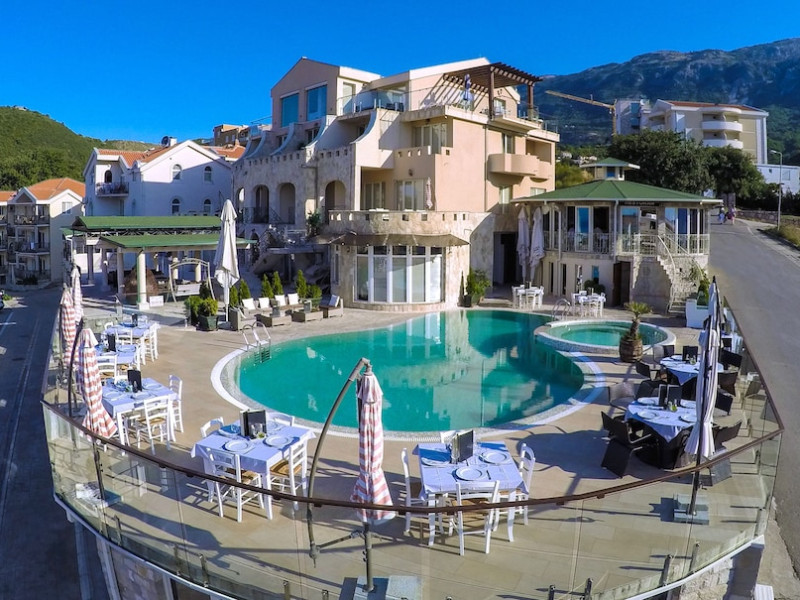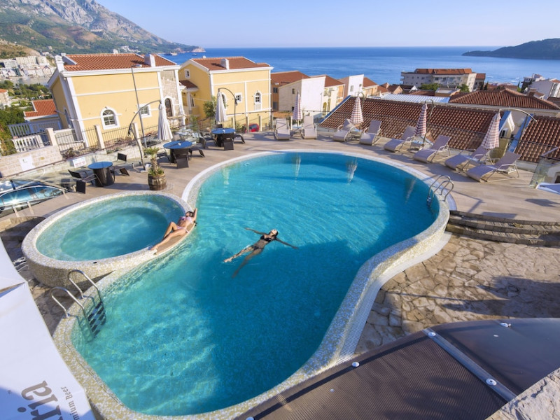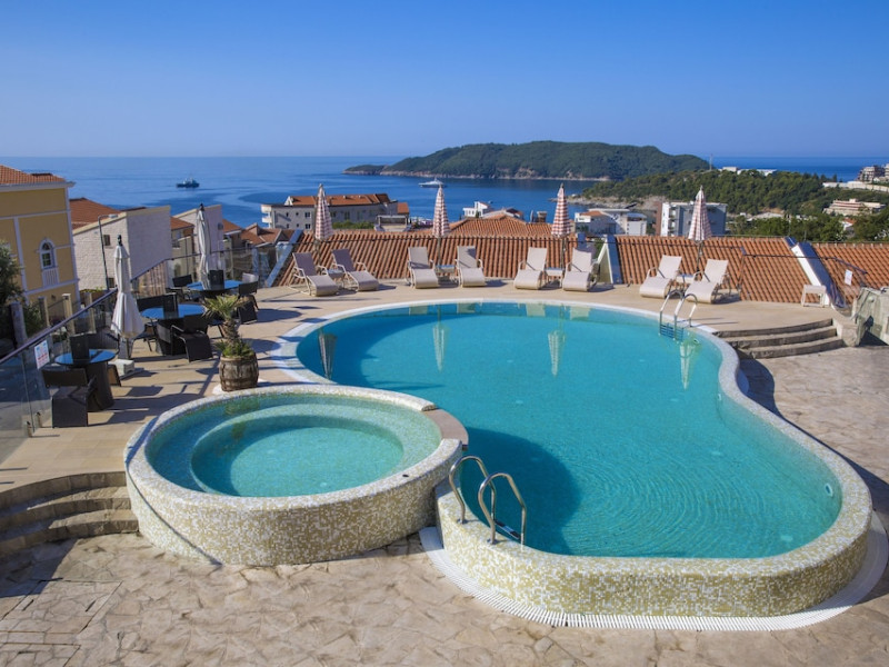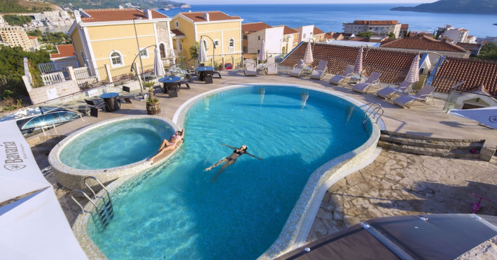 Located in the suburbs of Bečići, Spa Resort Becici is a 2-minute drive from Becici Beach and 5 minutes from Kamenovo Beach. This 4-star aparthotel offers studios and apartments with sea-view terraces. Guests can enjoy 2 outdoor swimming pools, a sauna, and complimentary wireless internet access. The property features barbecue grills, a restaurant serving Mediterranean cuisine, a coffee shop/cafe, and a bar/lounge and poolside bar. The spa and wellness area offers massages and health treatments for an extra charge. Each air-conditioned unit includes a flat-screen TV, a dining area, and a kitchen equipped with a full-sized refrigerator/freezer, oven, and stovetop. Complimentary wired internet access, dry cleaning/laundry services, and luggage storage are available. Conference space is available for events. A roundtrip airport shuttle is provided for a surcharge (available 24 hours), and free self parking is available onsite. Breakfast is available daily for a fee. The beach is 600 metres away and a bus stop with connections to Budva is 900 metres away. The Spa Resort Becici is a hotel.
